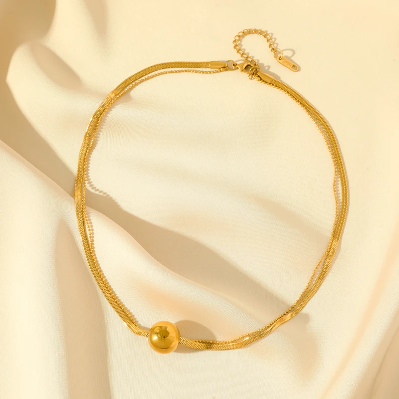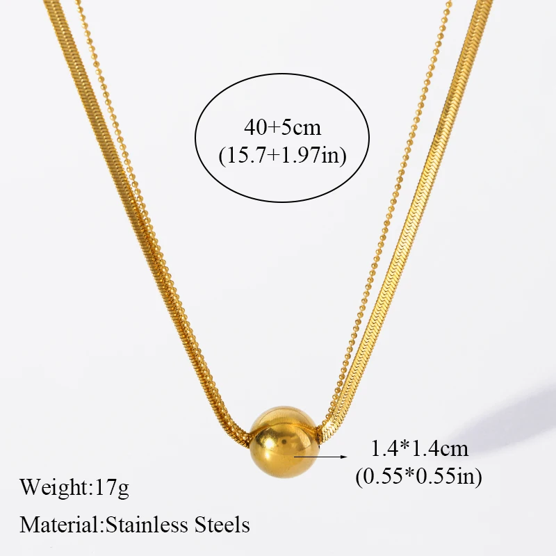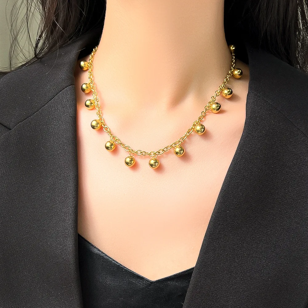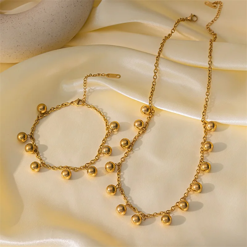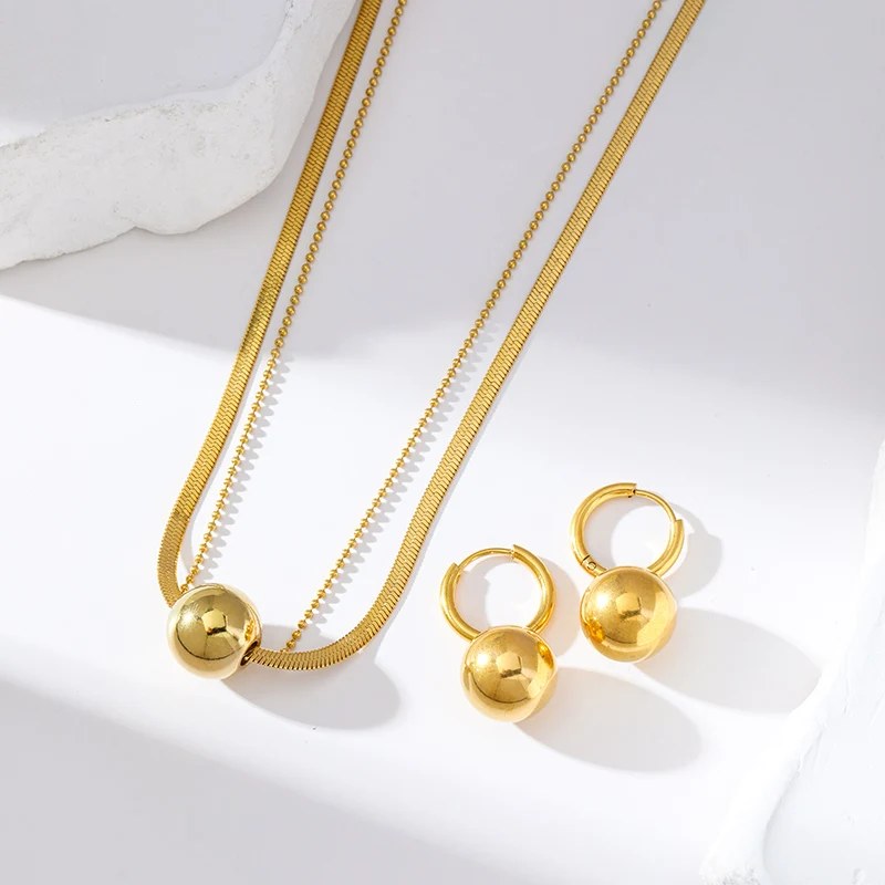 GANEMLY 316L Stainless Steel Metal Bead Ball Necklace Earrings Set For Women New Trendy Gold Color Waterproof Jewelry Lady Gift