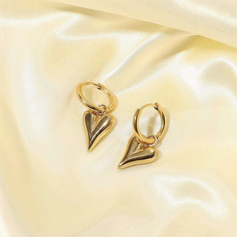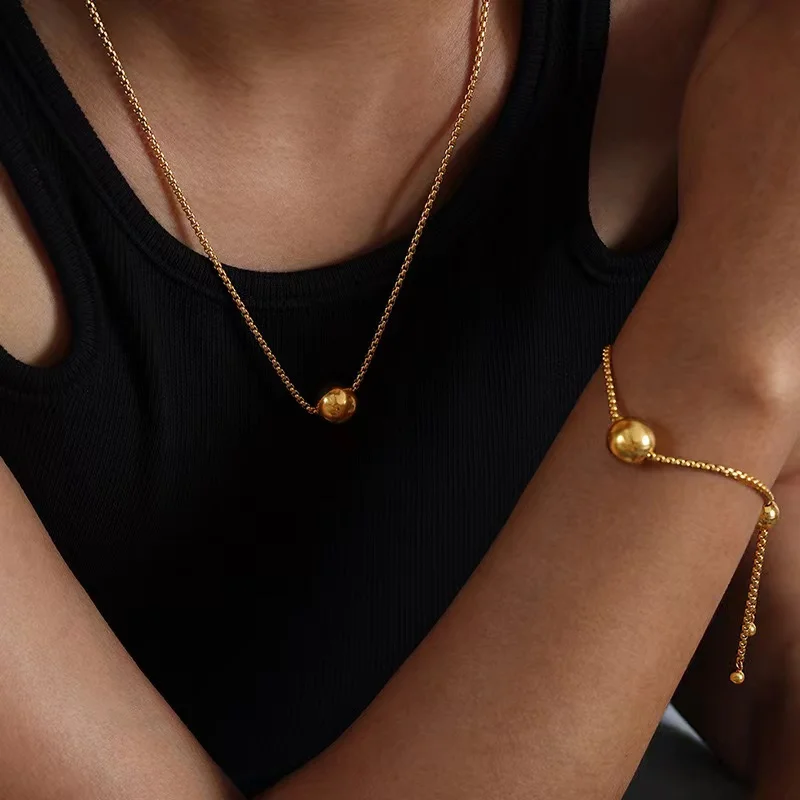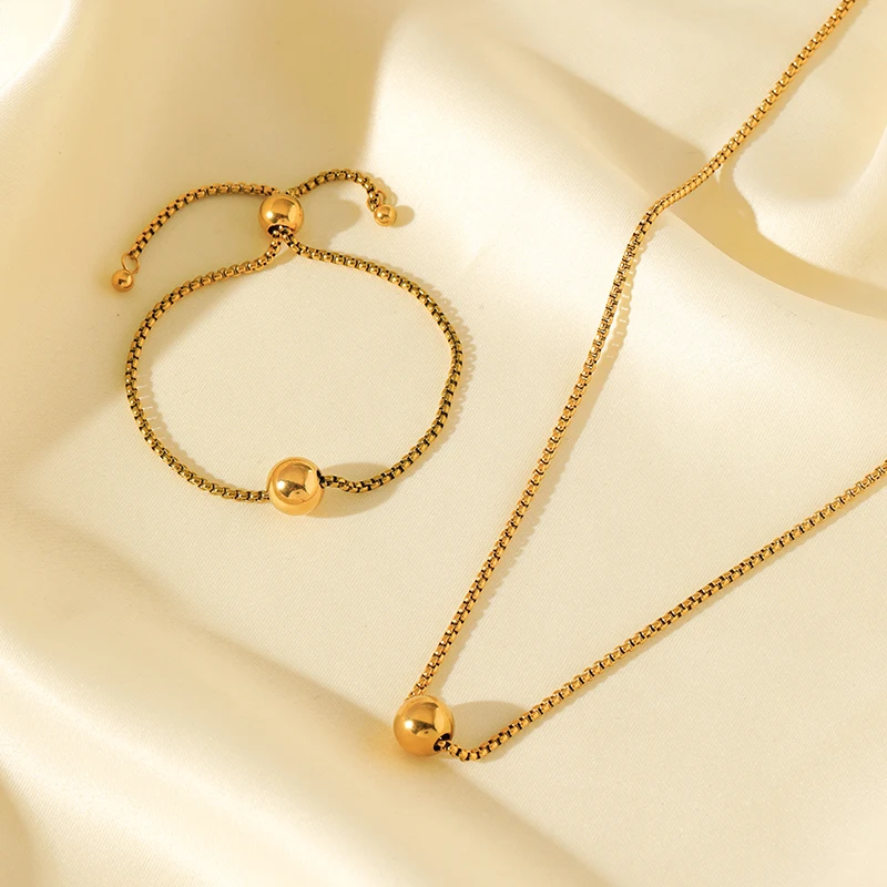 GANEMLY 316L Stainless Steel Metal Bead Heart Necklace Earrings Bracelet Set For Women Trendy 18K Gold Plated Waterproof Jewelry