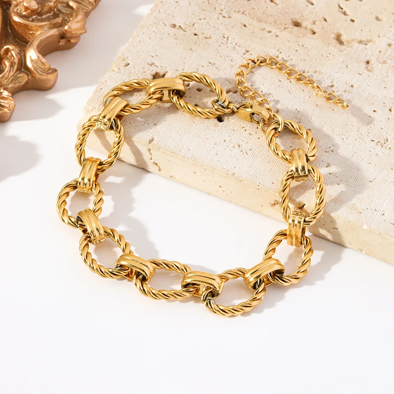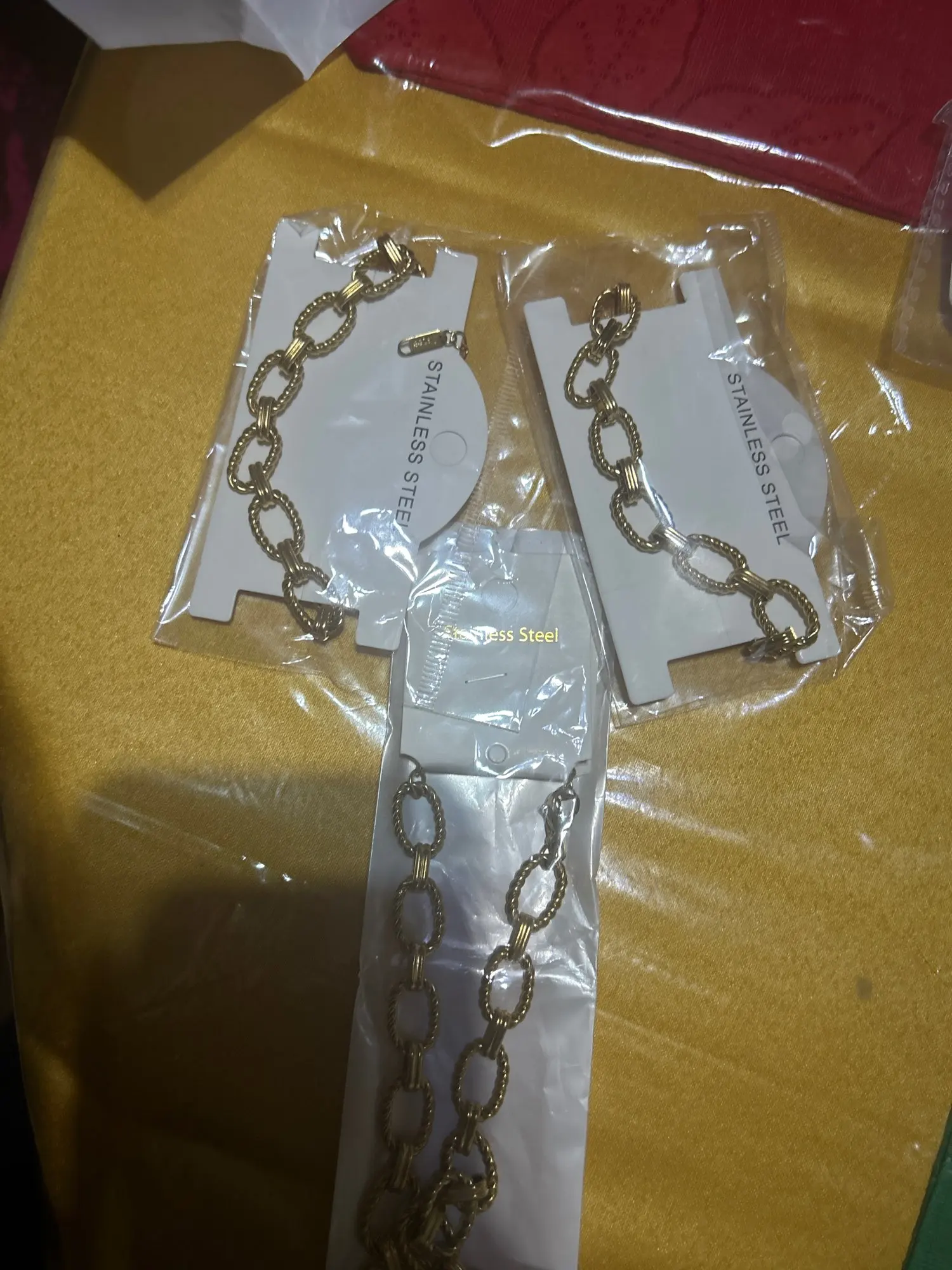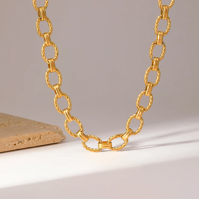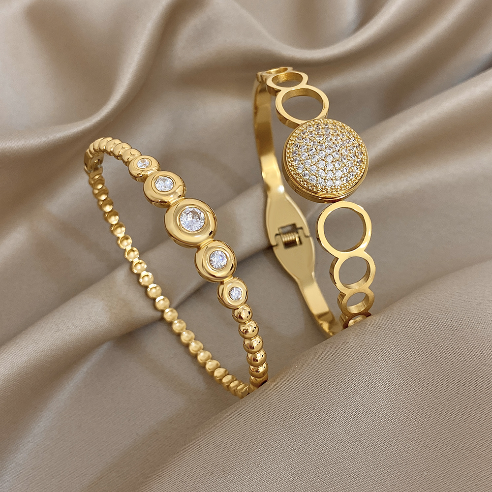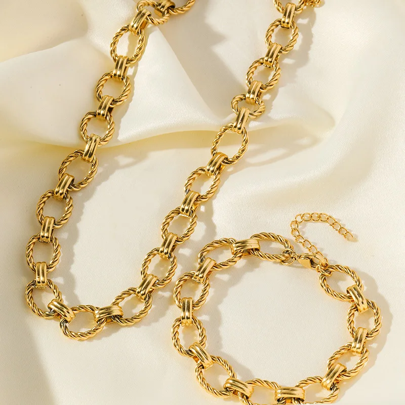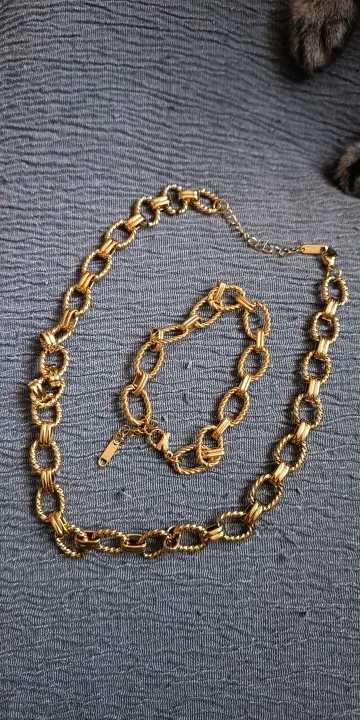 Very modern bracelet and necklace set in gold-colored stainless steel with excellent quality-to-price ratio.