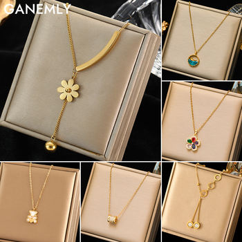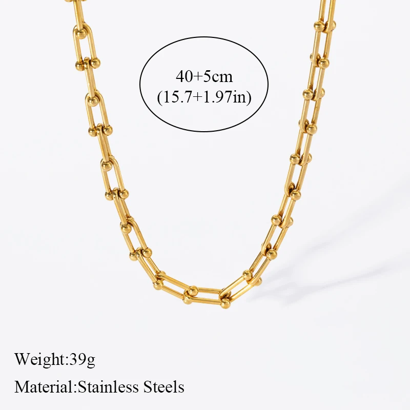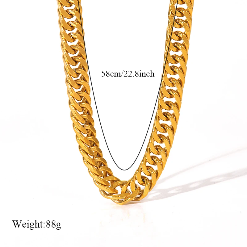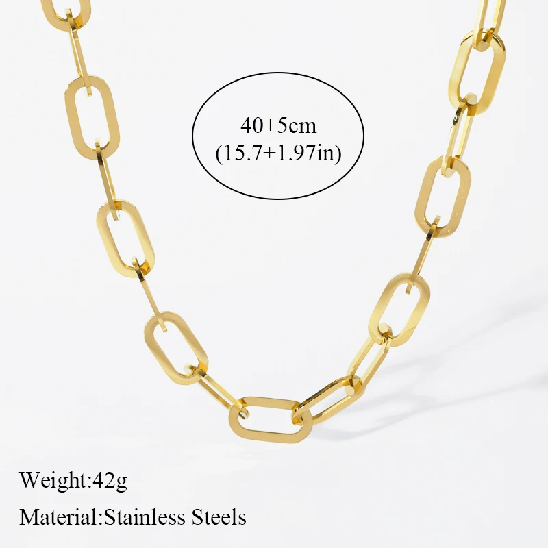 GANEMLY 316L Stainless Steel Metal Cuban Chain Necklace For Women Hip Hop Punk Waterproof 18K Gold Plated Neck Chain Jewelry
