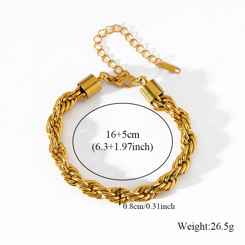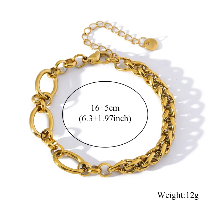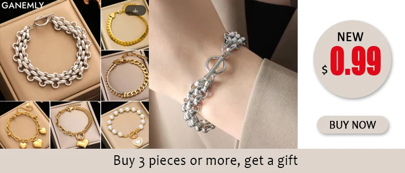 GANEMLY 316L Stainless Steel Metal Fashion Chain Statement Bracelet Bangle 18K Gold Plated Waterproof Jewelry Bijoux Femme