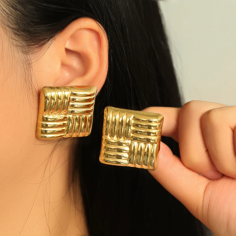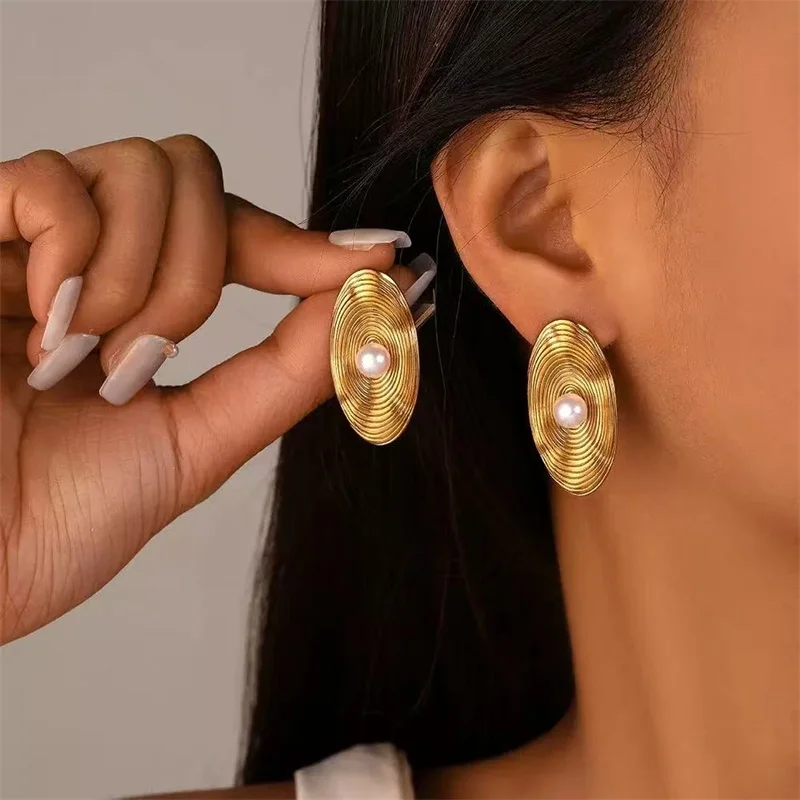 GANEMLY 316L Stainless Steel Metal Gold Color Geometric Heart Drop Earrings For Women Fashion New Earring Waterproof Jewelry