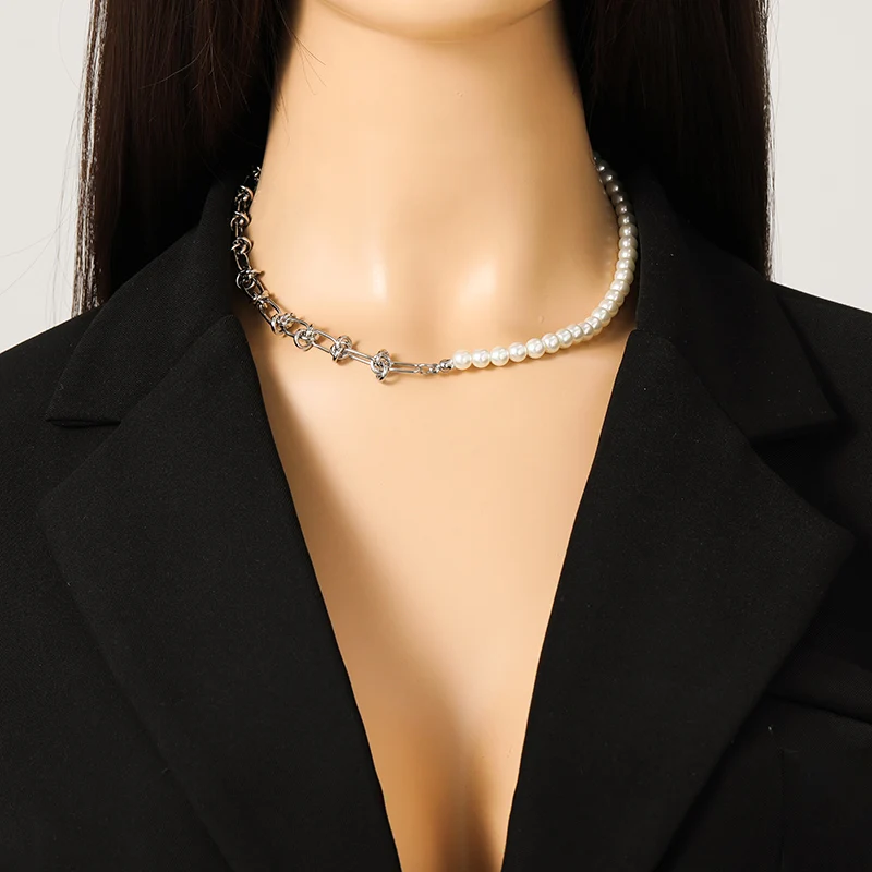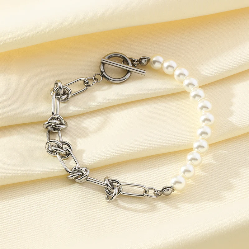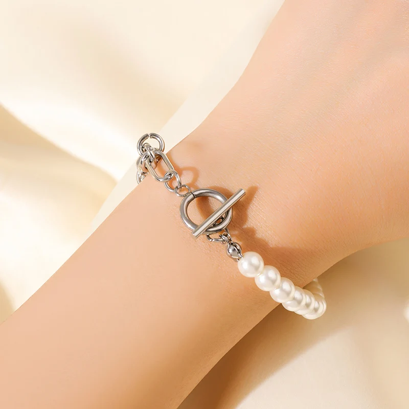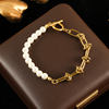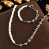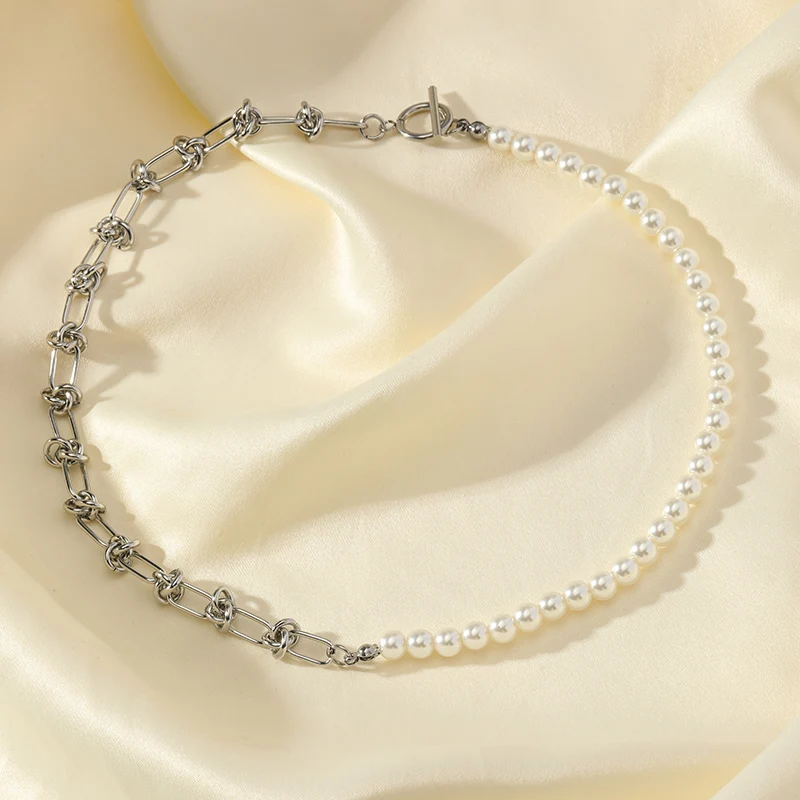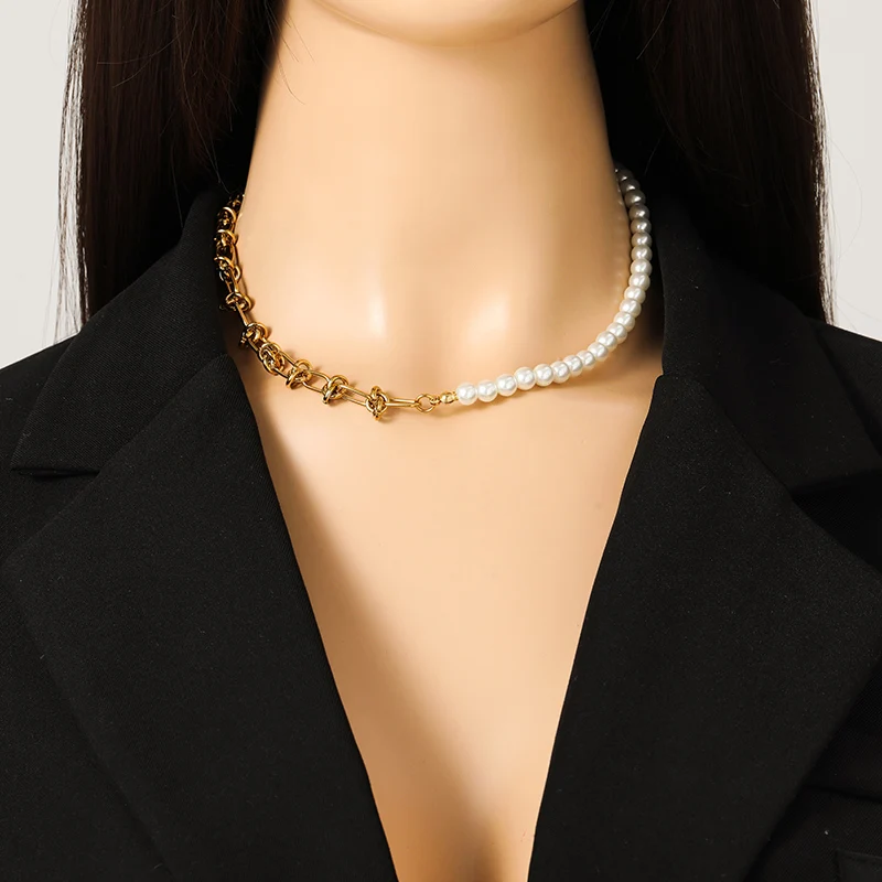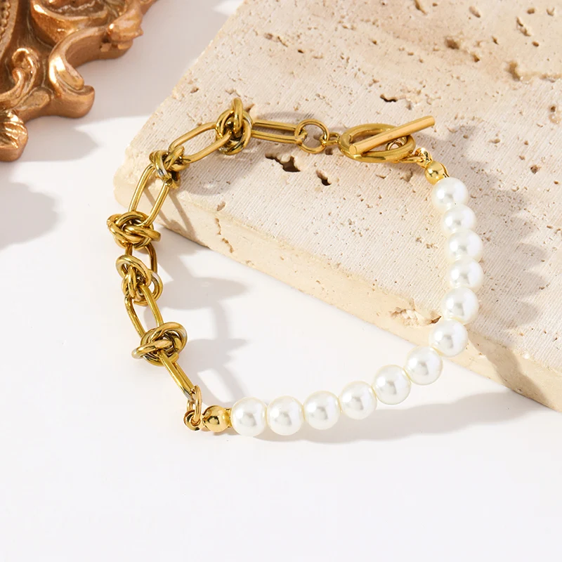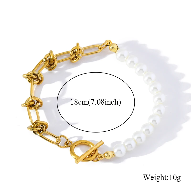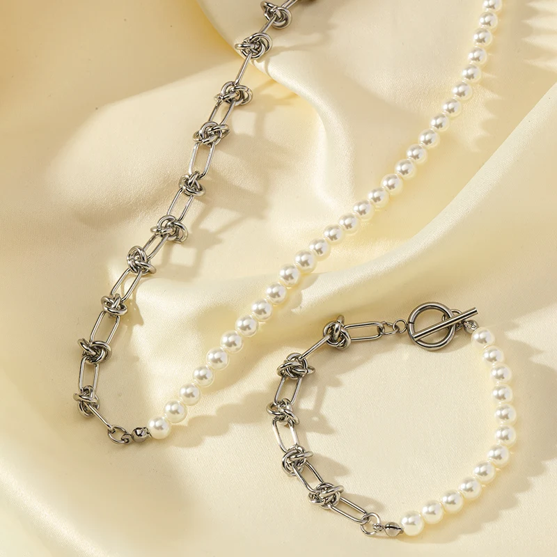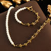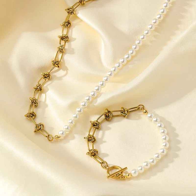 GANEMLY 316L Stainless Steel Metal Gold Color Pearls Chain Necklace Bracelet Set For Women Trendy Chains Waterproof Jewelry New