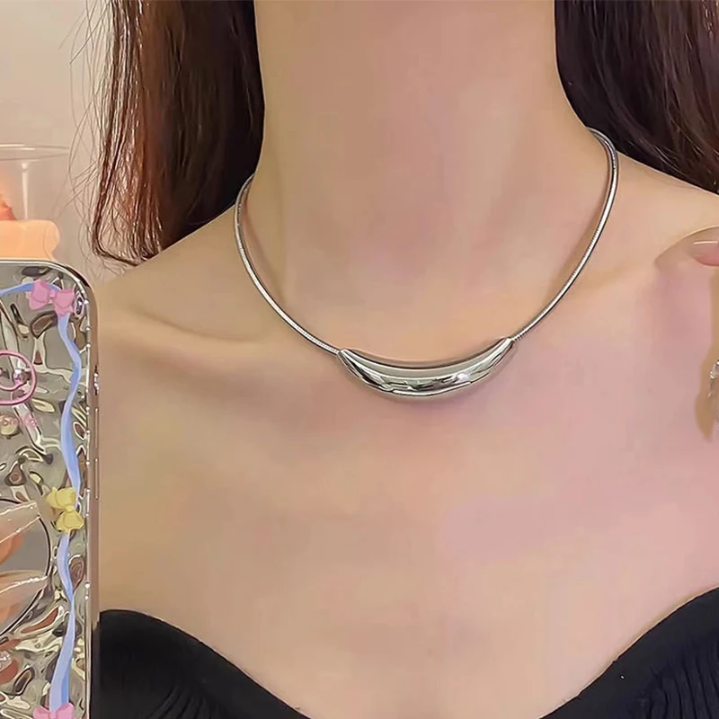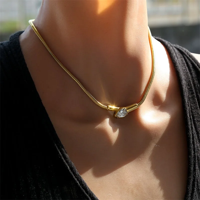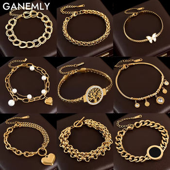 GANEMLY 316L Stainless Steel Metal Gold Silver Color Chain Necklace For Women Fashion Neck Chain Waterproof Jewelry Lady Gift