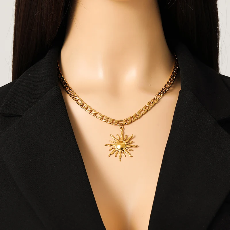 GANEMLY 316l Stainless Steel Metal Sun Pendant Necklace For Women Summer Chic Waterproof 18K Gold Color Neck Chain Jewelry Gift