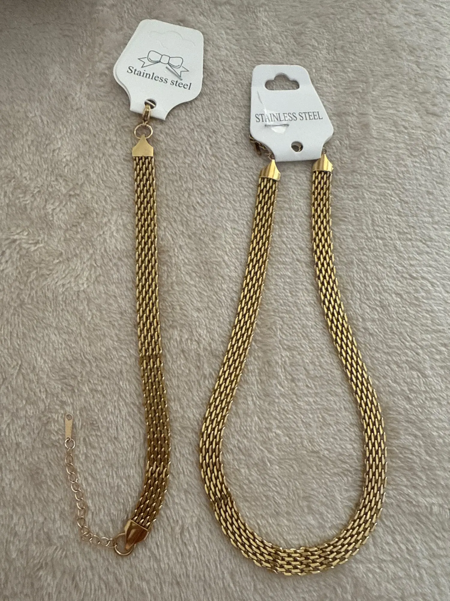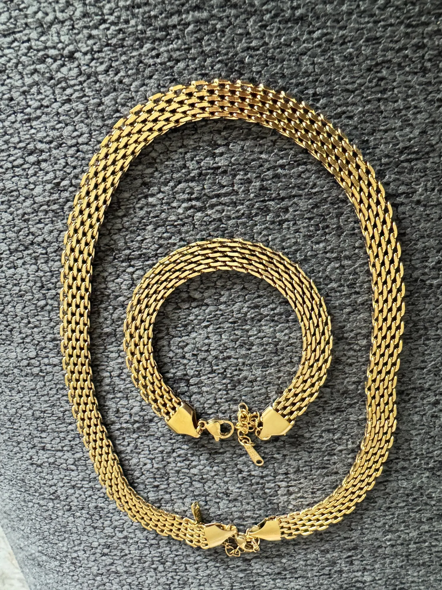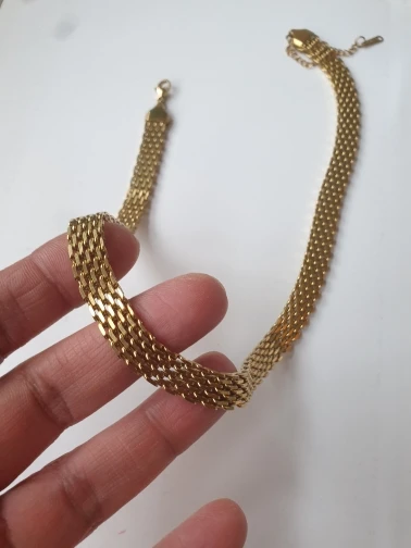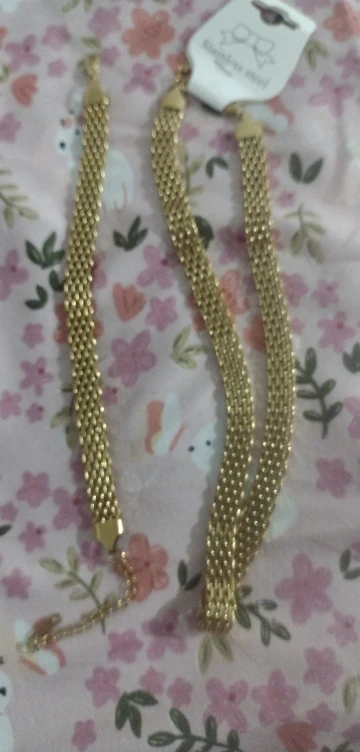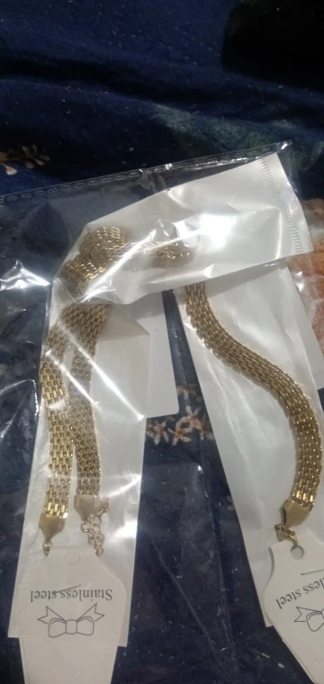 It looks good in appearance, I hope it lasts because usually gold-colored jewelry looks ugly on me. I thought they were thicker but sometimes we don't see the measurements and it arrived very quickly, thank you.