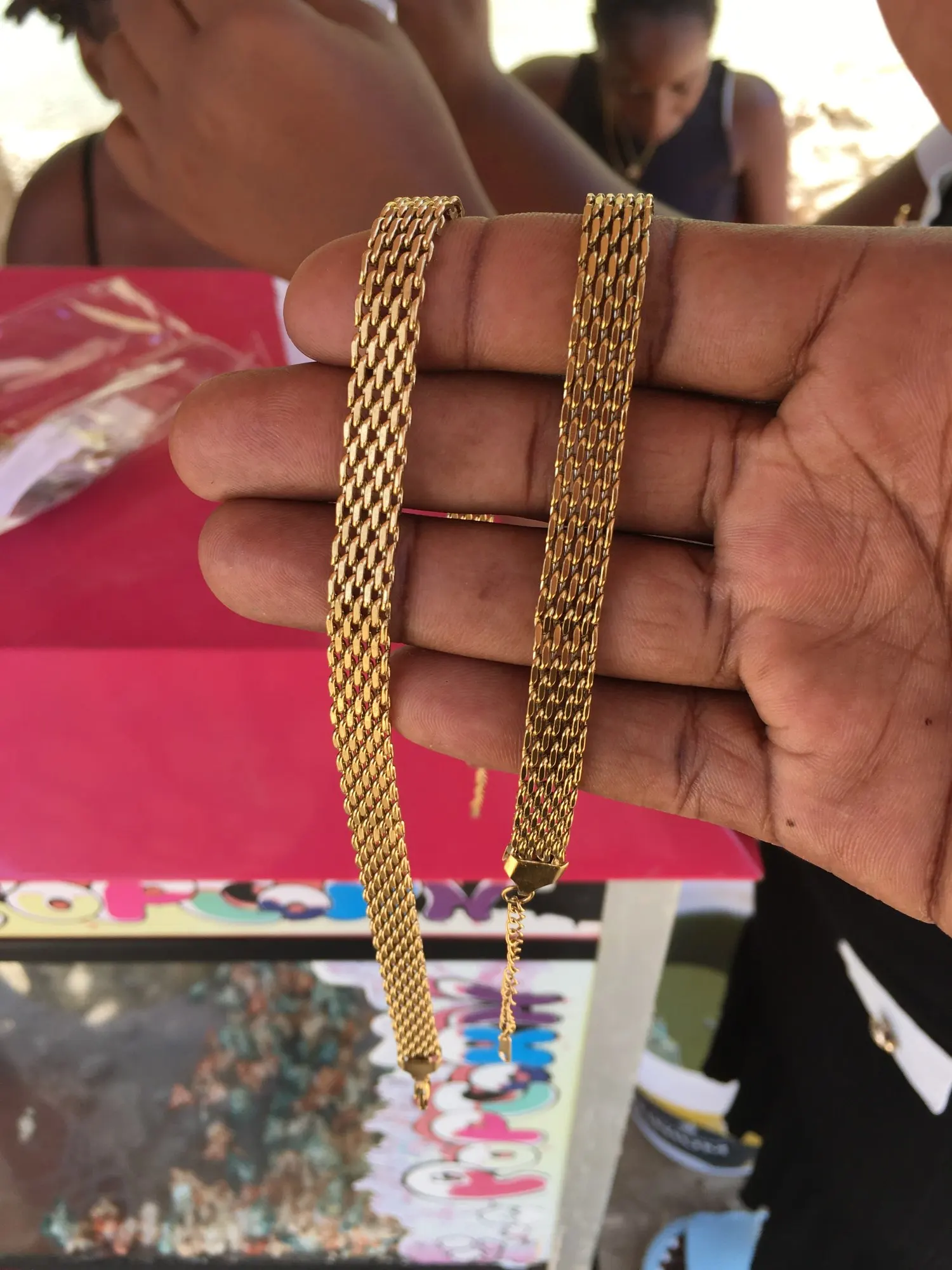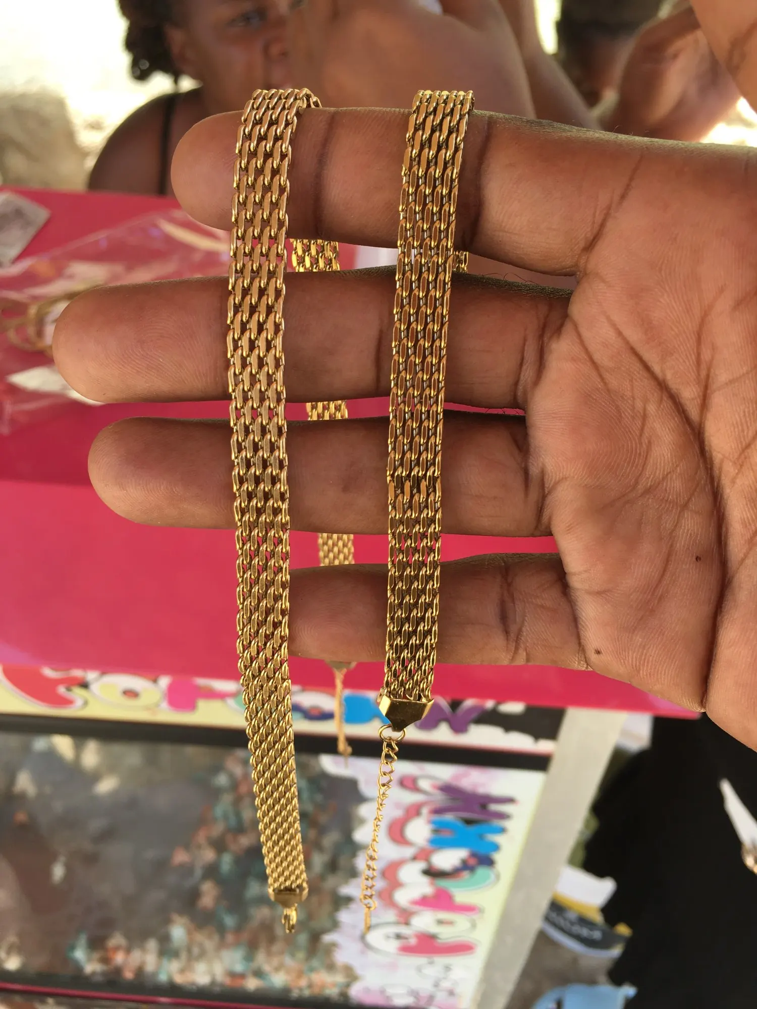 a gold-colored bracelet.
