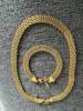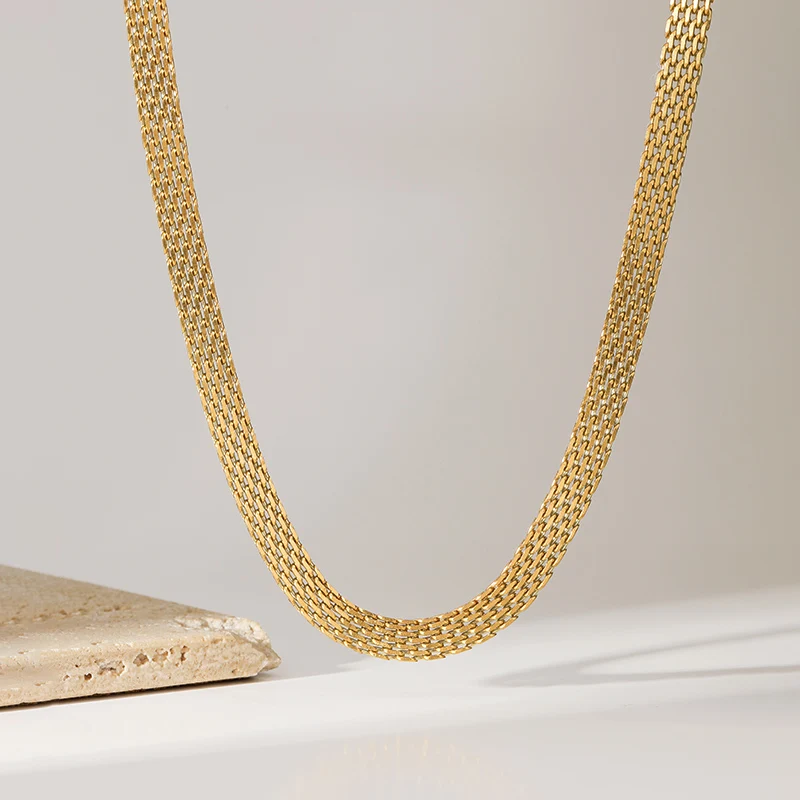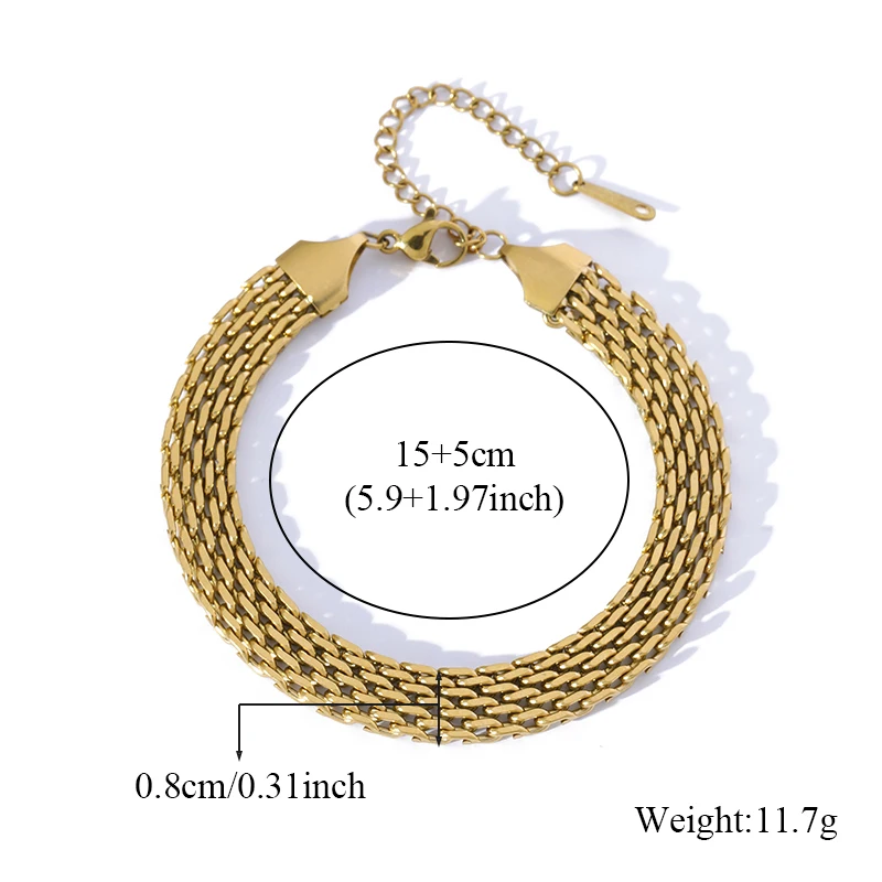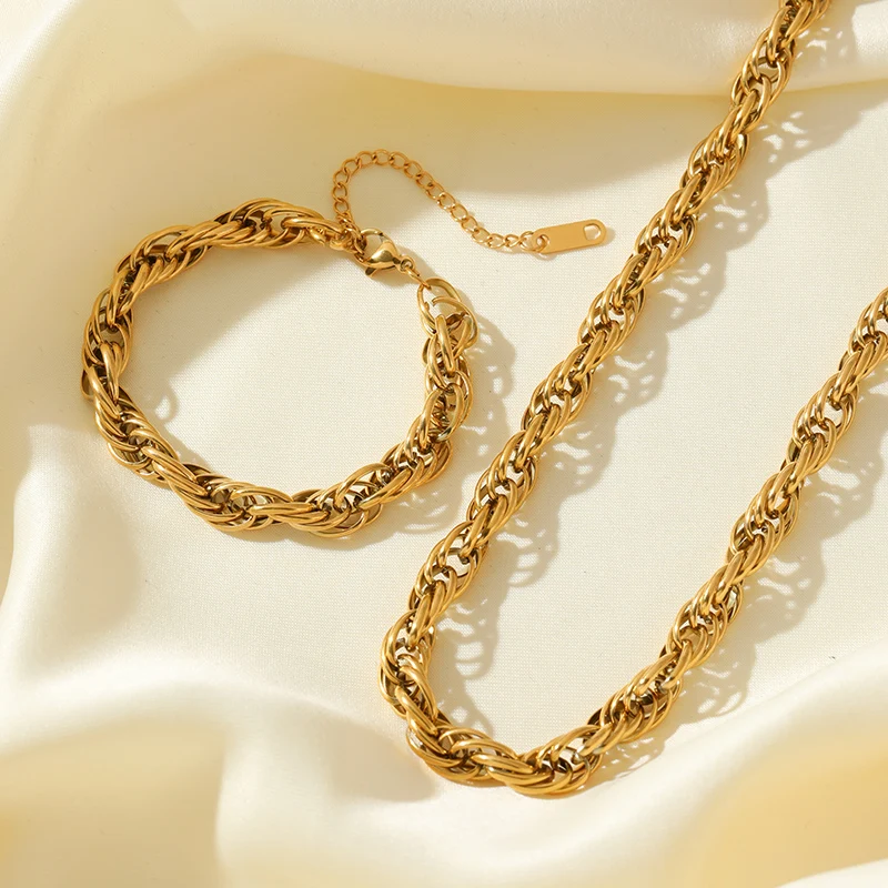 GANEMLY 316L Stainless Steel Metal Wide Chain Necklace Bracelets Waterproof Jewelry Set Gold Color Chain Charm Jewelry Set Gift