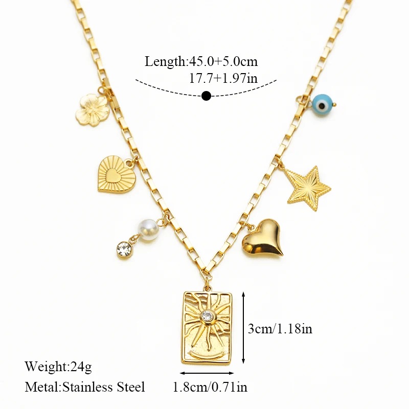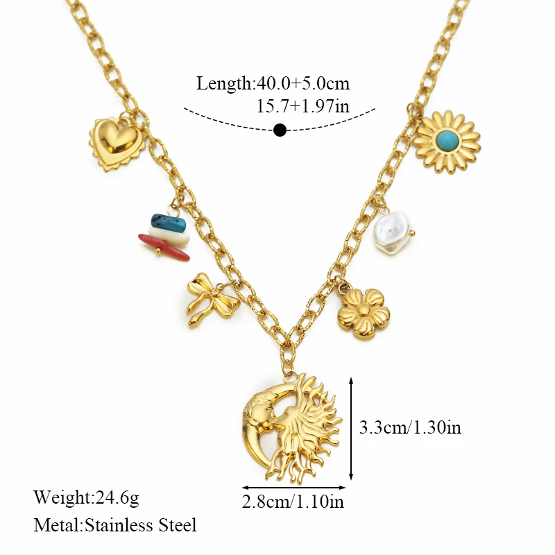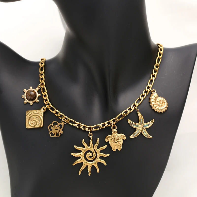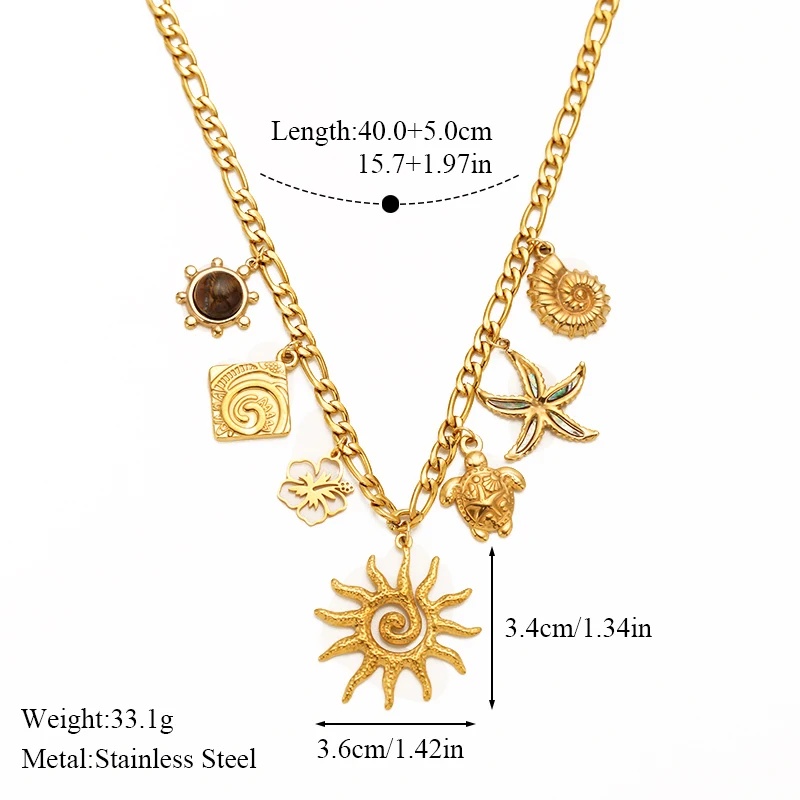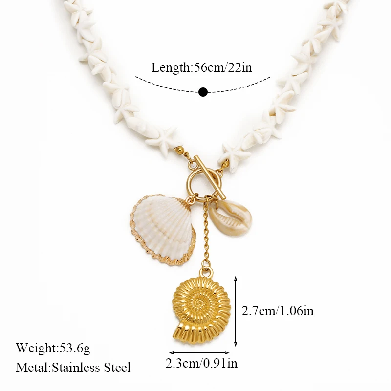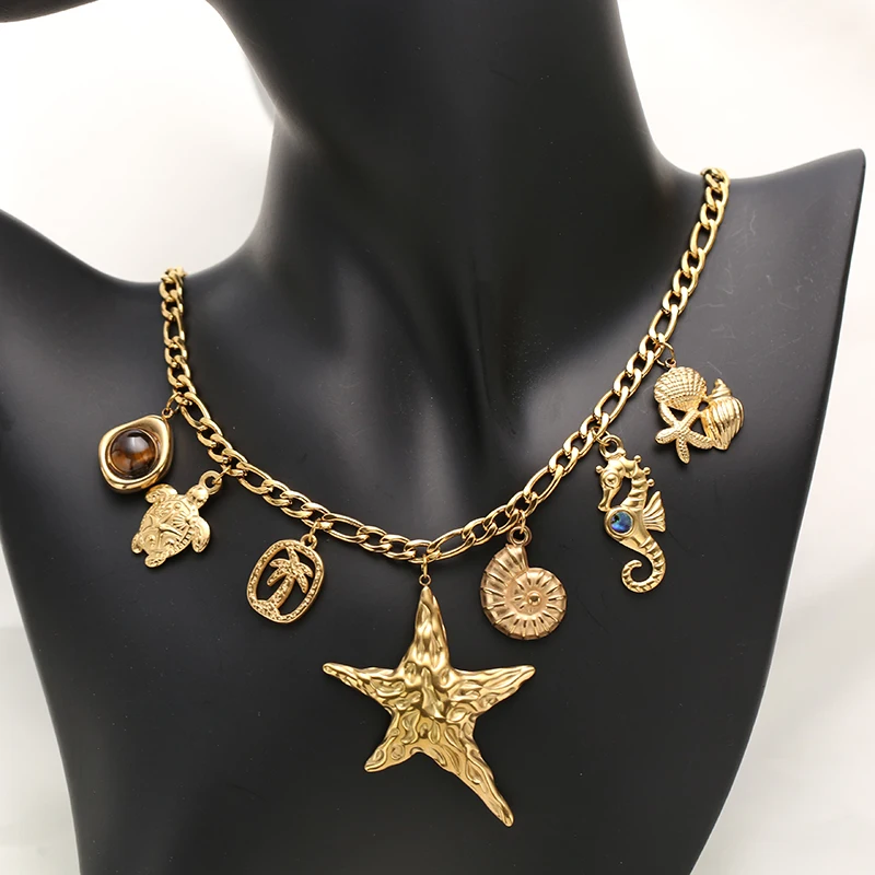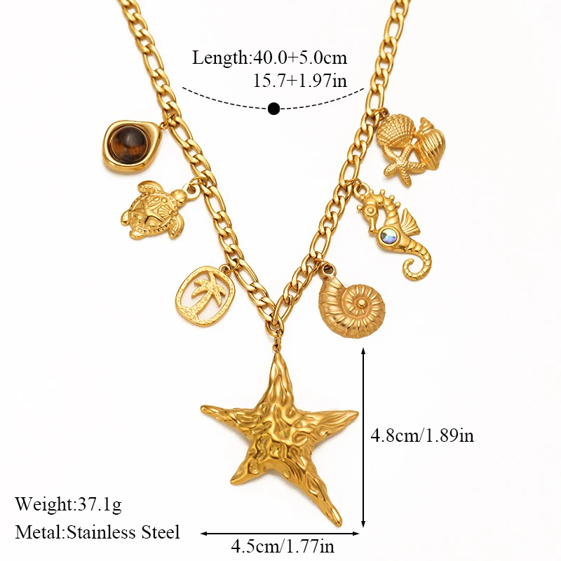GANEMLY 316L Stainless Steel Ocean Style Starfish Shell Pendant Necklace 18K PVD Plated Waterproof Holiday Fashion Jewelry Gift