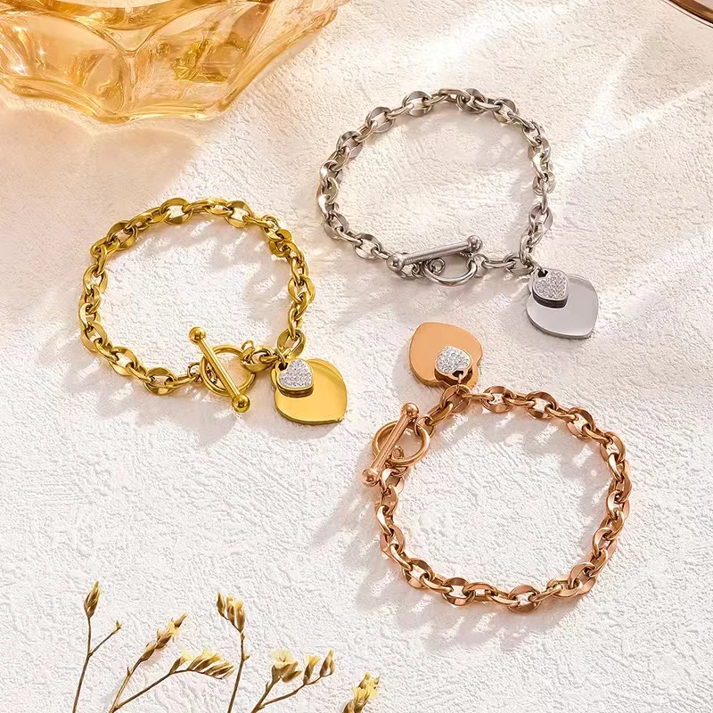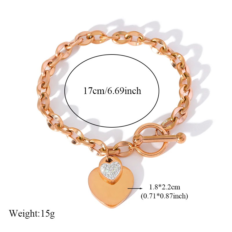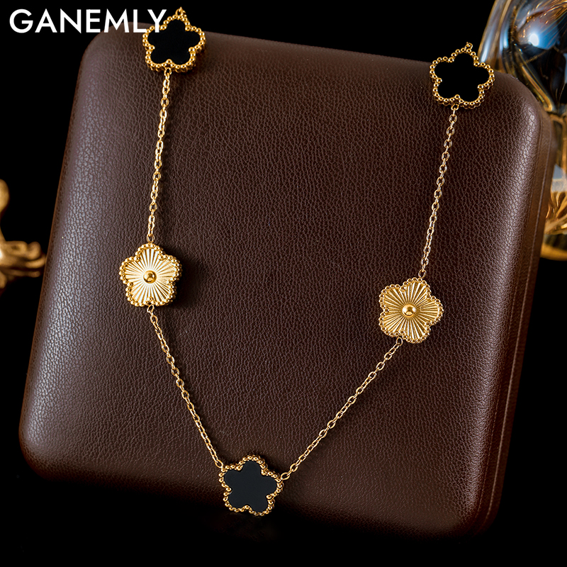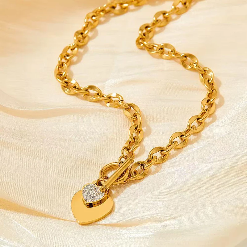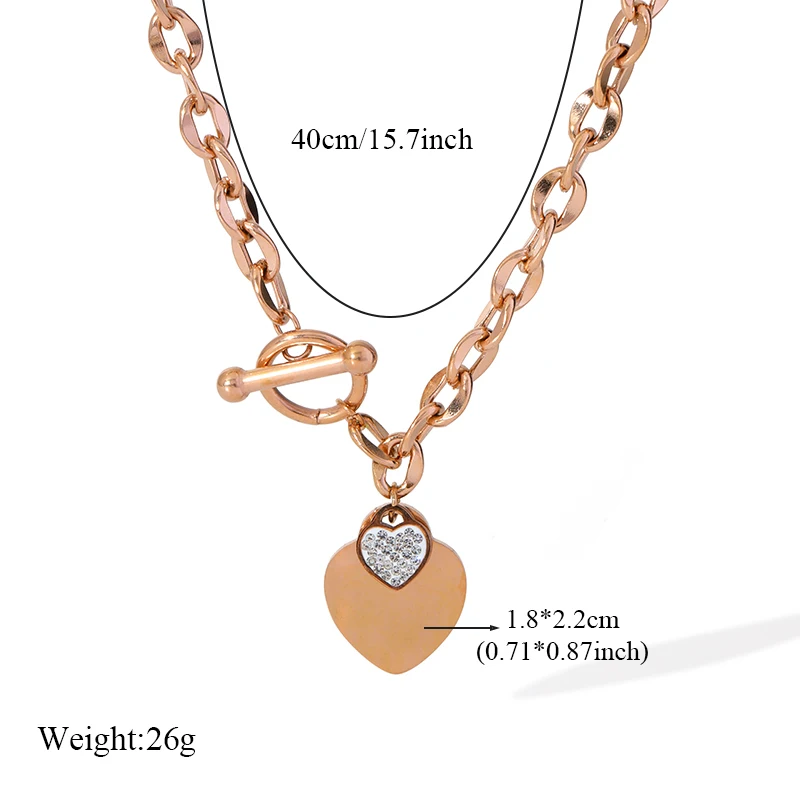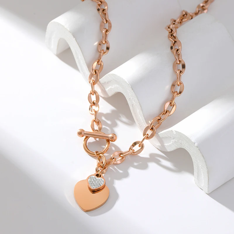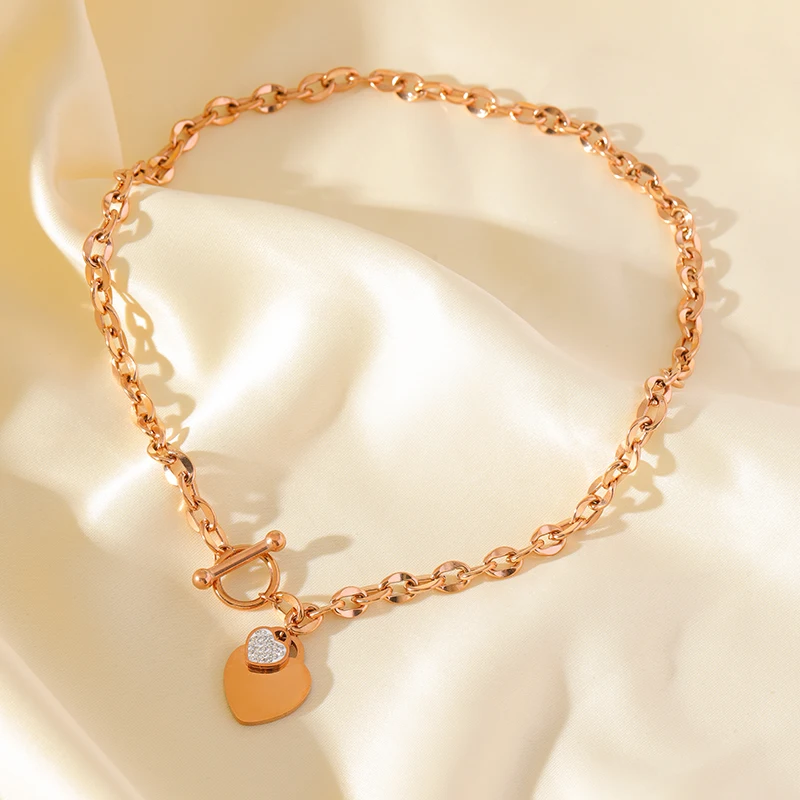 GANEMLY 316L Stainless Steel Rose Gold Color Heart Pendant For Women Fashion Simple Clavicle Neck Chain Waterproof Jewelry Gift