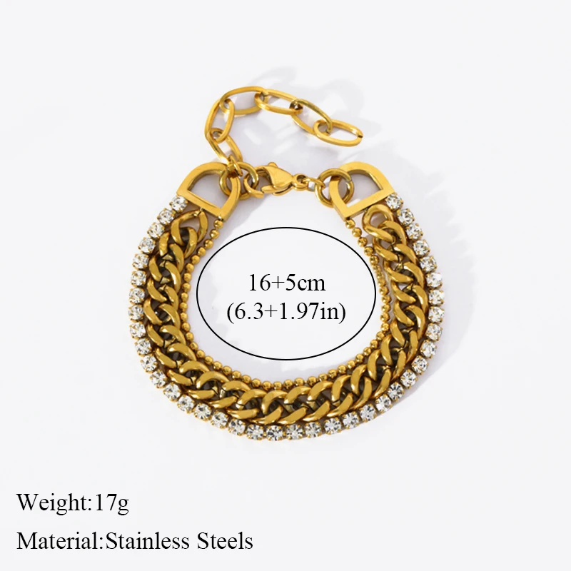 Absolutely beautiful bracelet! ✨ It looks elegant and luxurious, just like high-end jewelry. The chain is solid and comfortable to wear, and the zircon stones sparkle beautifully. High-quality stainless steel, no discoloration and skin-friendly. Perfect for everyday use and special occasions. Highly recommended! 💛 💎