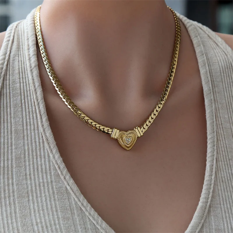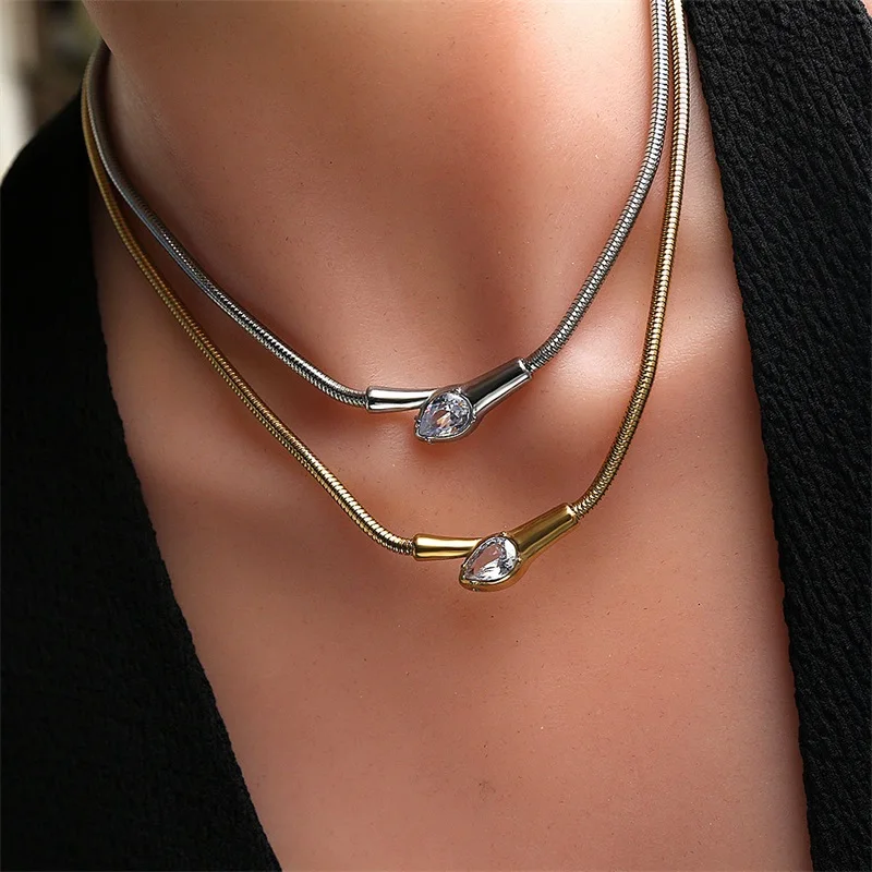 GANEMLY 316L Stainless Steel Sparkling Zirconia Necklace Trendy Gold Silver Color Neck Chain Collar Waterproof Jewelry For Women