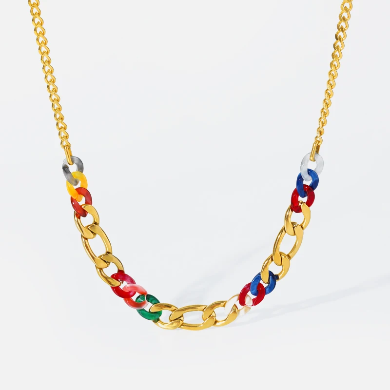 GANEMLY 316L Stainless Steel Thick Chain Necklace For Women Fashion Neck Chain 18K Gold-Plated Waterproof Jewelry Gift Collar