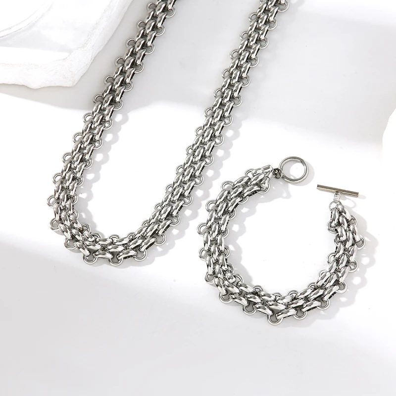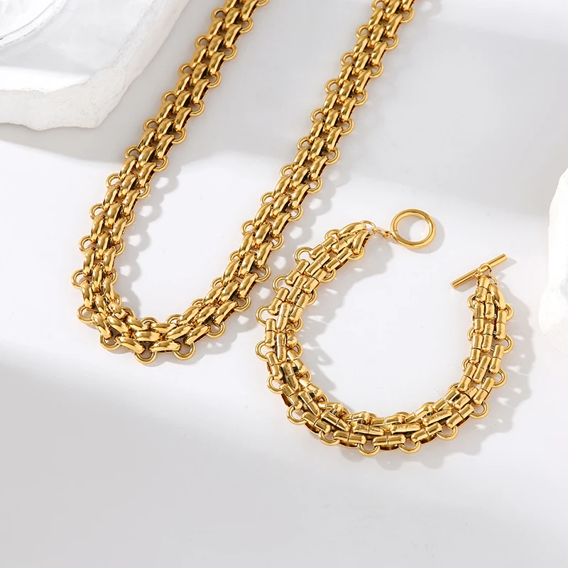 GANEMLY 316L Stainless Steel Thick Cuban Chain Necklace Bracelet Set For Women Men New Punk Waterproof Jewelry Set Gift Bijoux