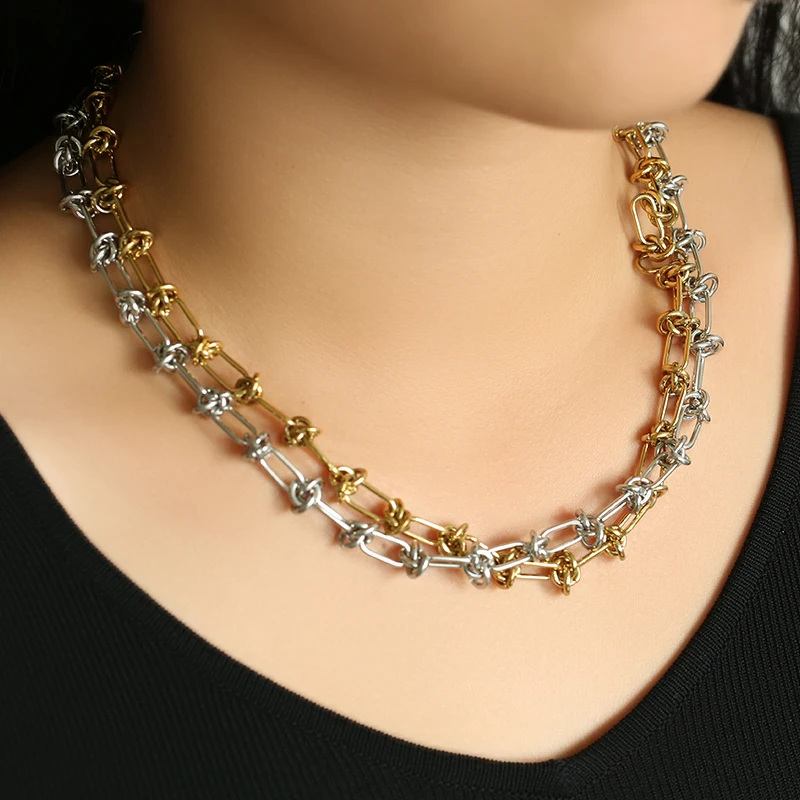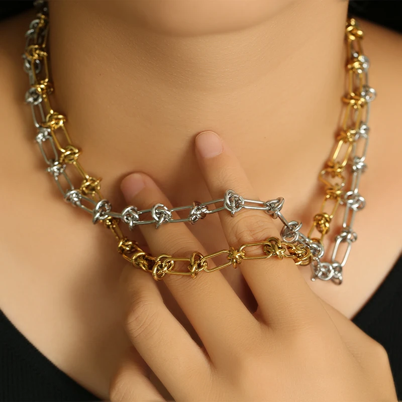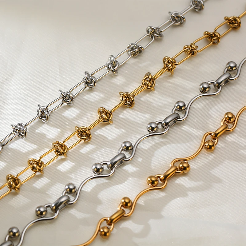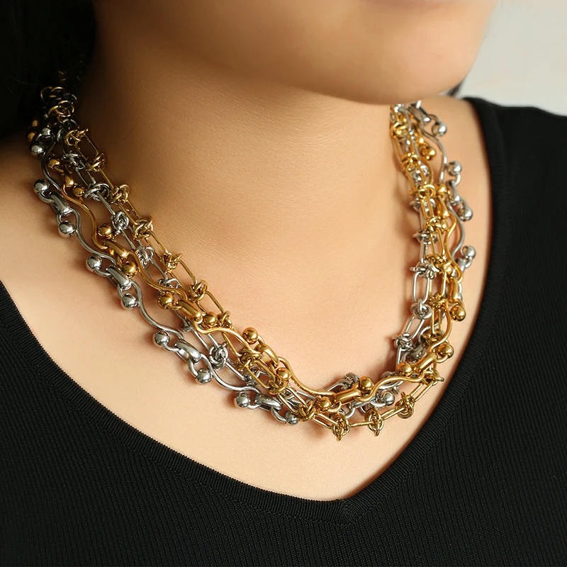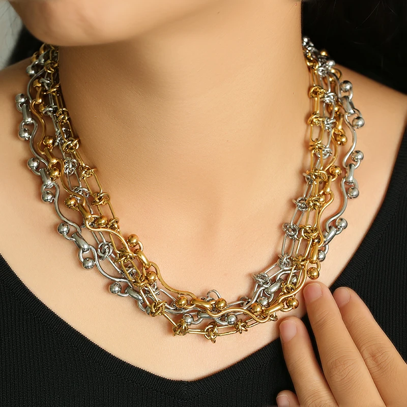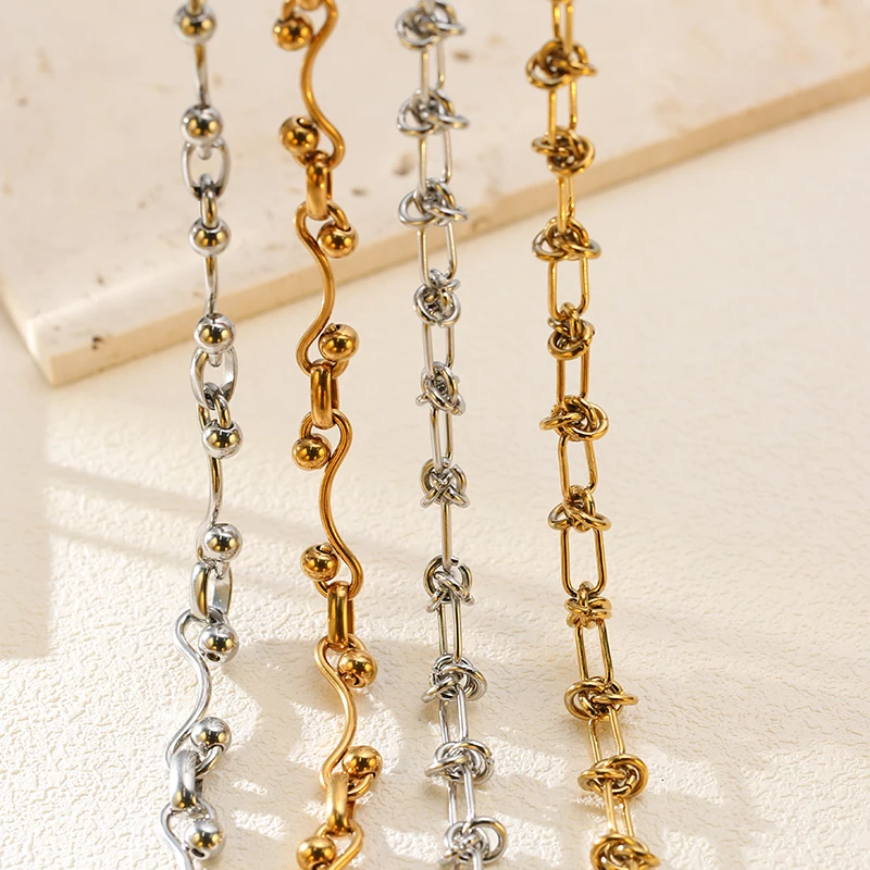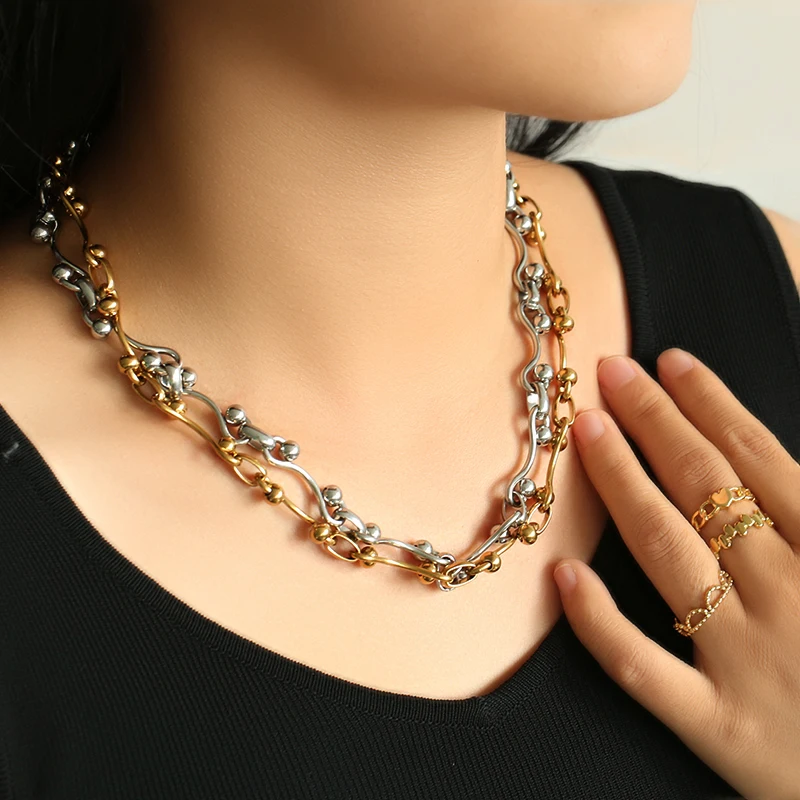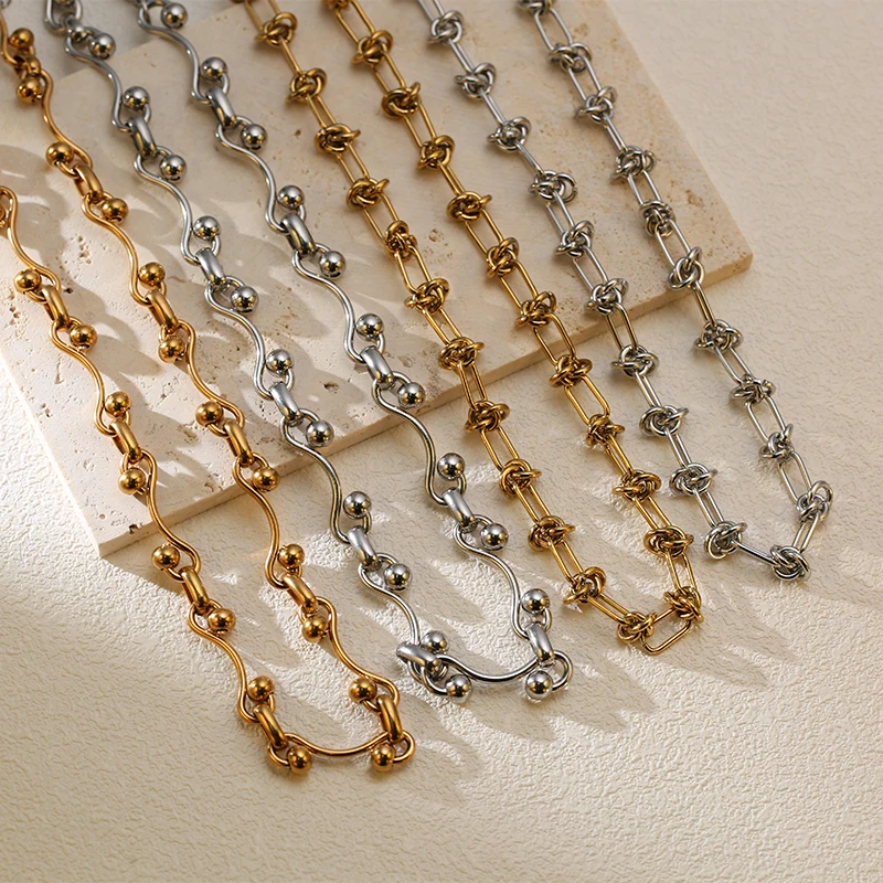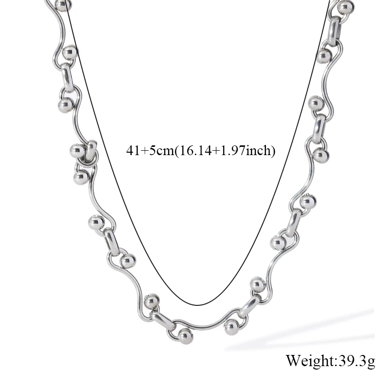 GANEMLY 316L Stainless Steel Waterproof Beads Chain Necklace For Women Neck Chain Collar Fashion Handmade Jewelry Style Bijoux