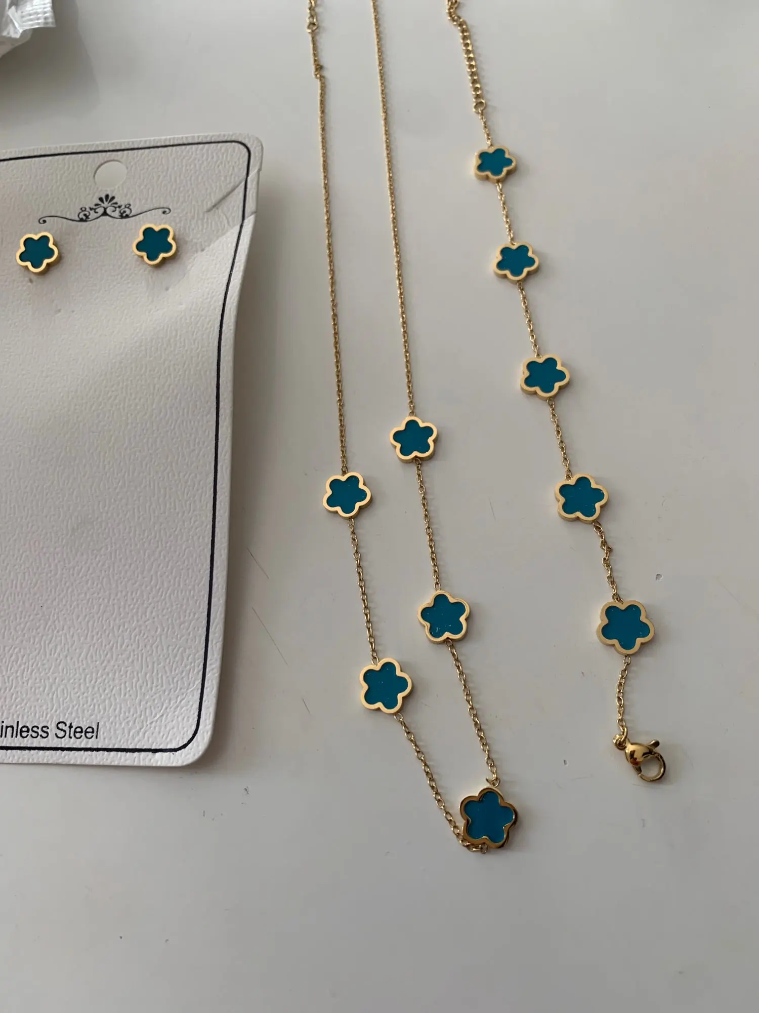 I cannot speak of the quality as i have not worn these enough times. So far they seem ok. Nothing is rubbing off. I did not need the earring but there was no option without. The bracelet super nice and stays ok however the flowers on the neckless constantly flip inside out which is enjoying. So one should think about it before they purchase.