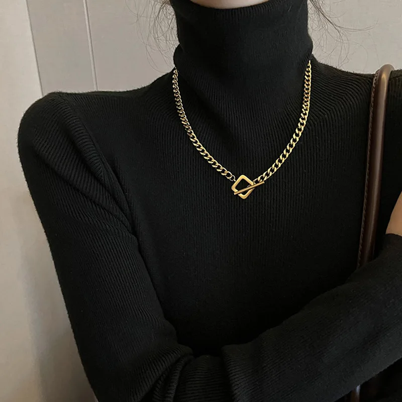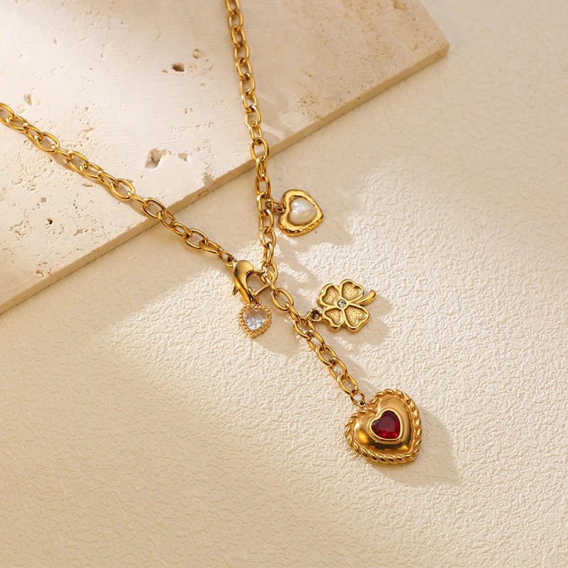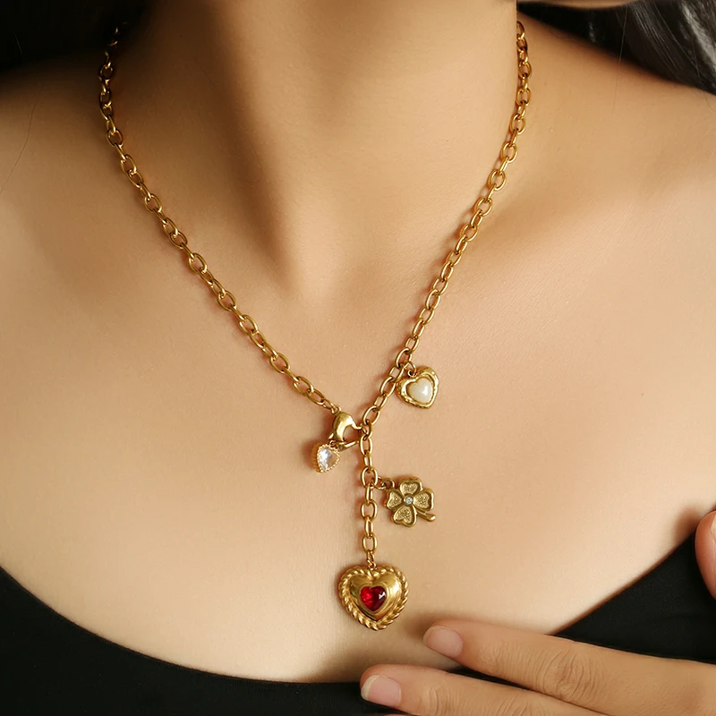 GANEMLY Stainless Steel Heart-Shaped Sparkling Rhinestones Necklace Trendy Neck Chain Choker Collar Waterproof Jewelry For Women