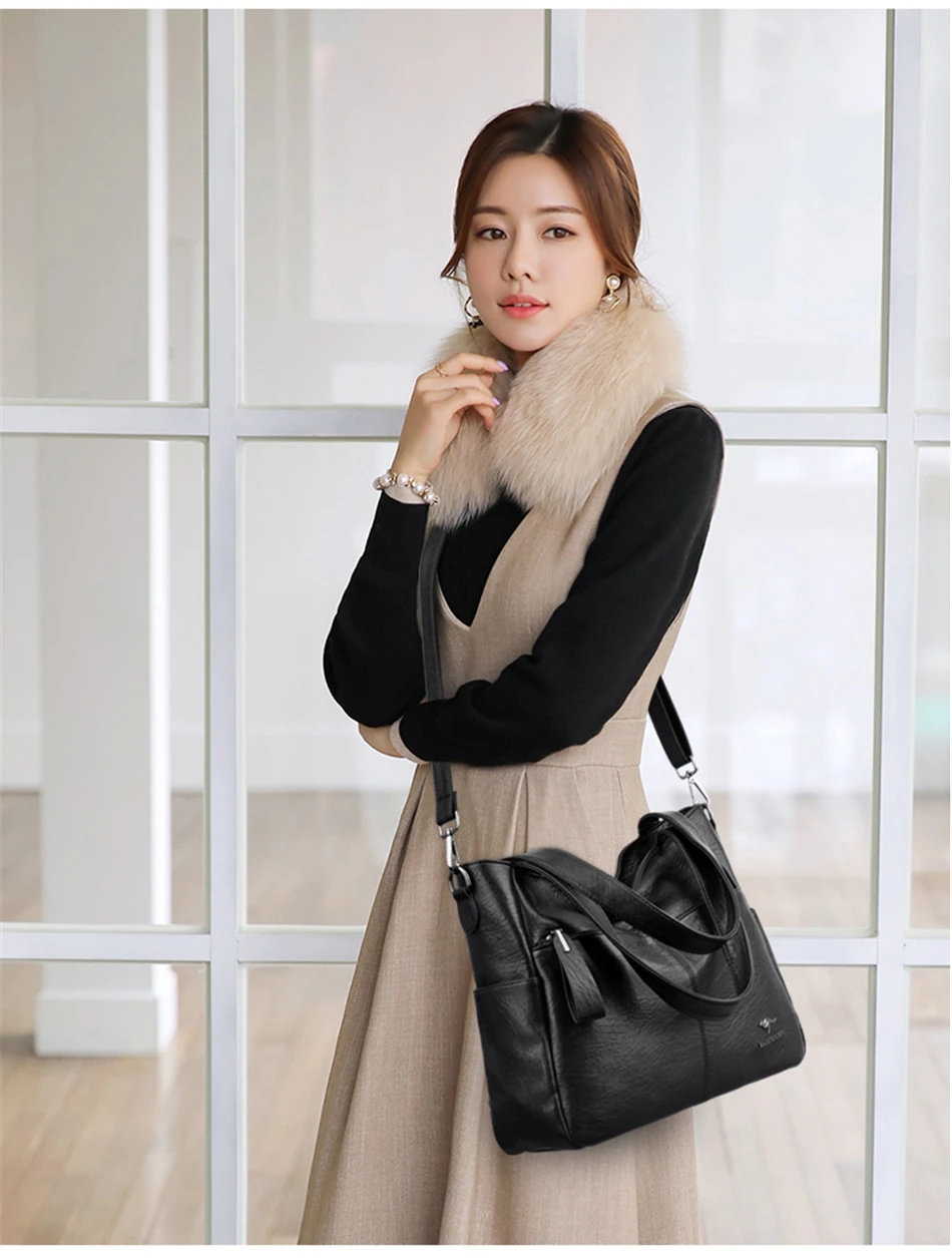Genuine Brand Soft Leather Top-handle Bags Female Handbags Women Shoulder Crossbody Totes Messanger Bag Large Capacity Big Sac