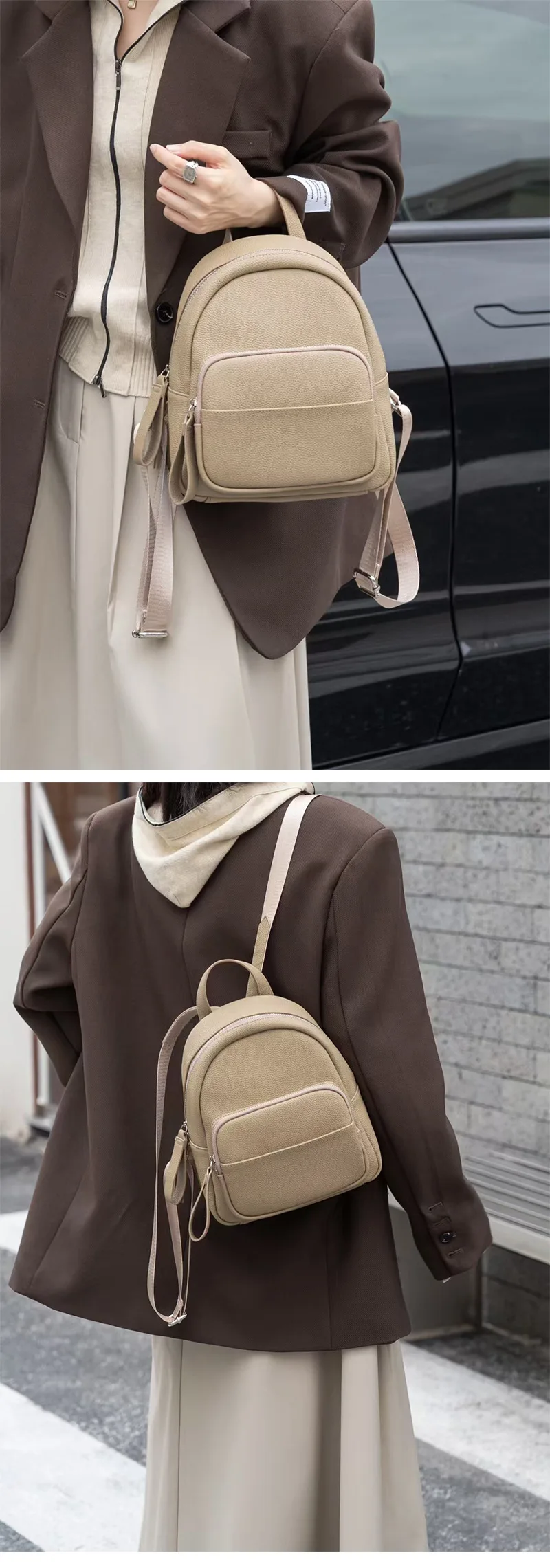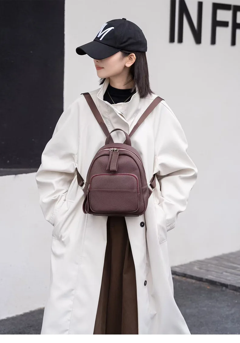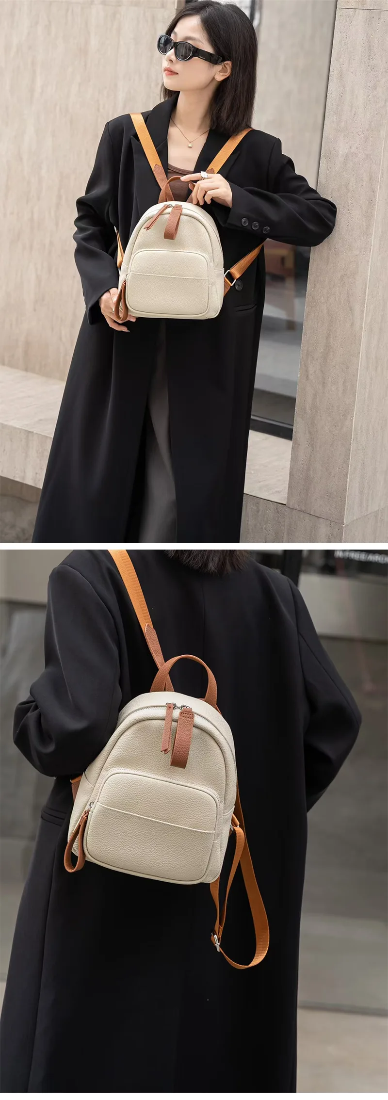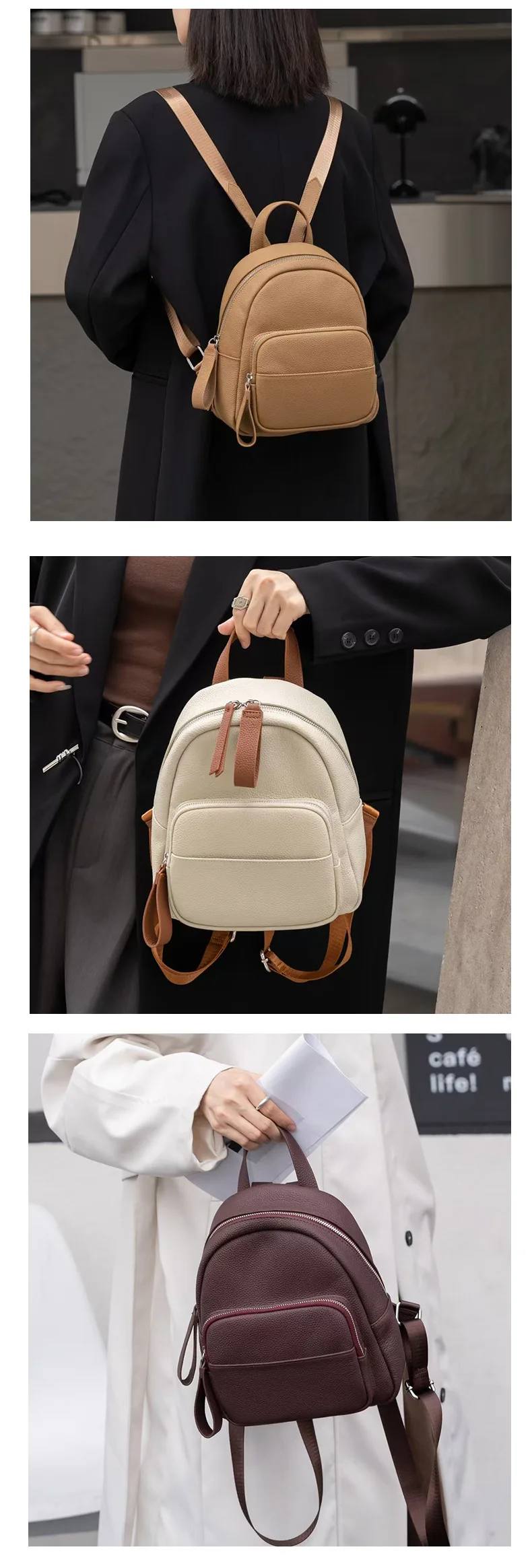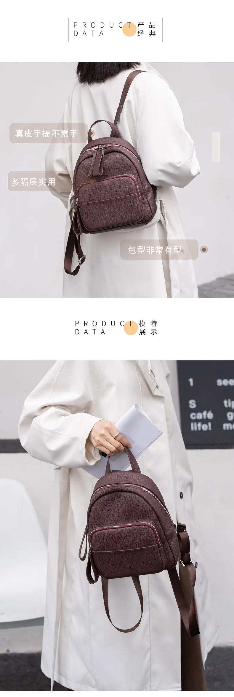 Genuine Leather Cowhide Women Backpack Shoulder Bag Female Simple Commuter Travel Schoolbag Daily Women Backpack Handbag