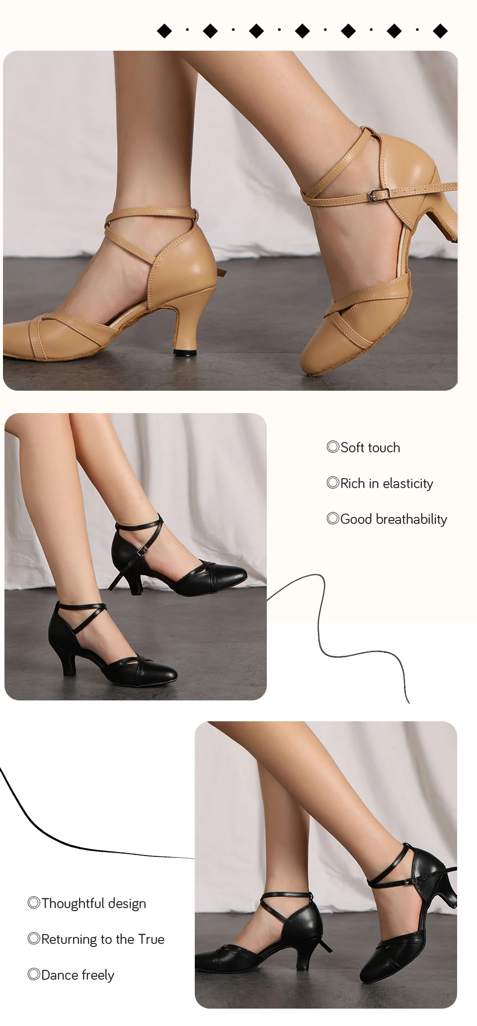 Genuine Leather Soft-sole Modern Dance Shoes Women Latin Dance Shoes Design Sense Ballroom Cha Cha Waltz Dance Performance Shoes