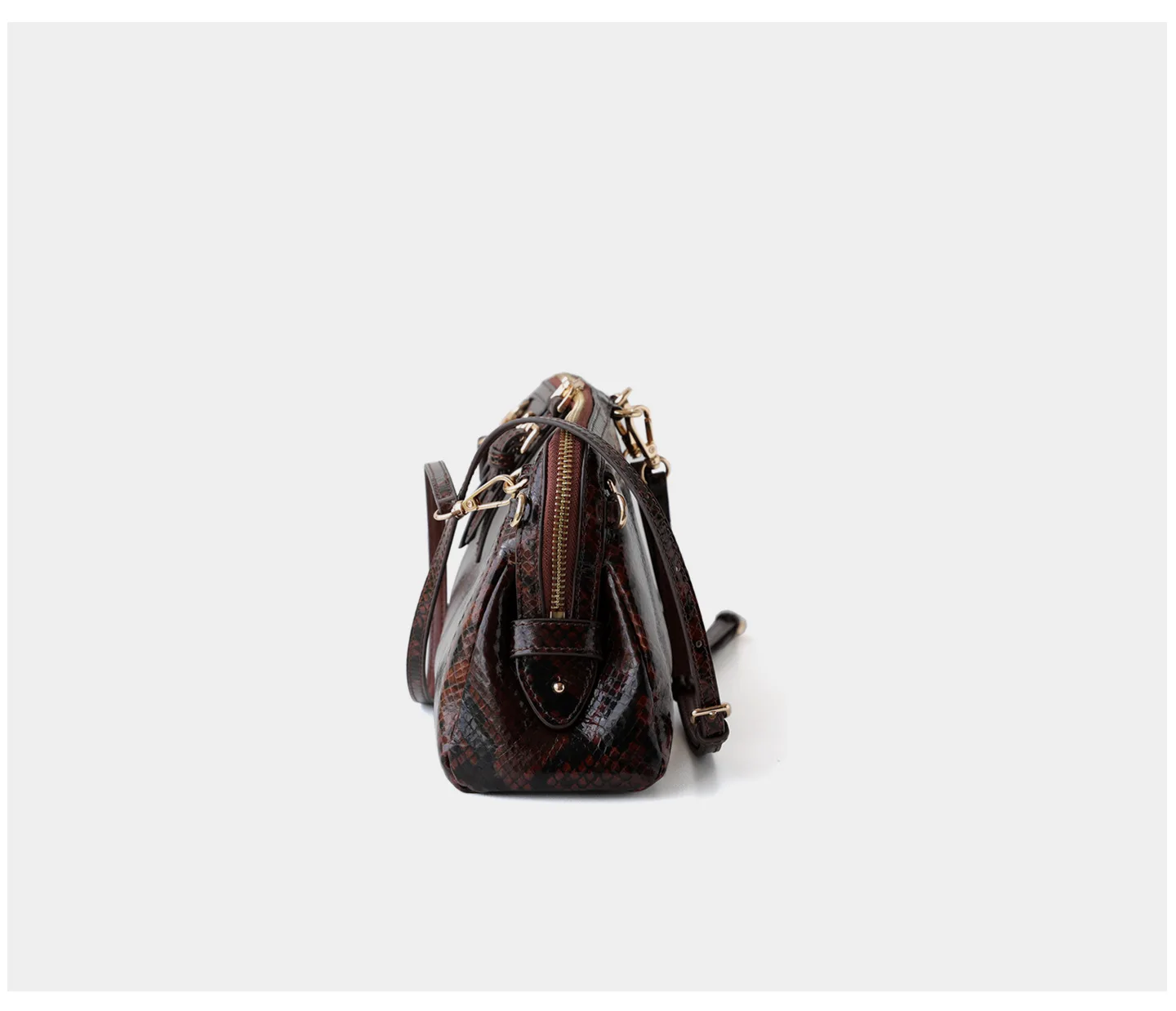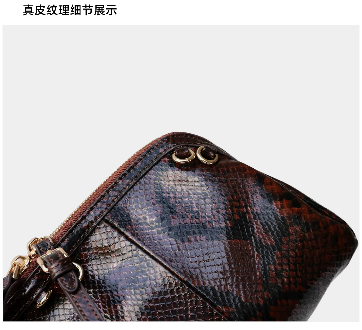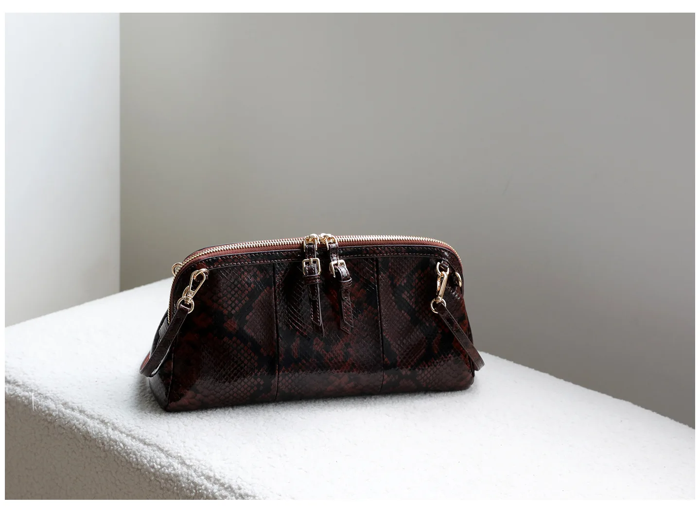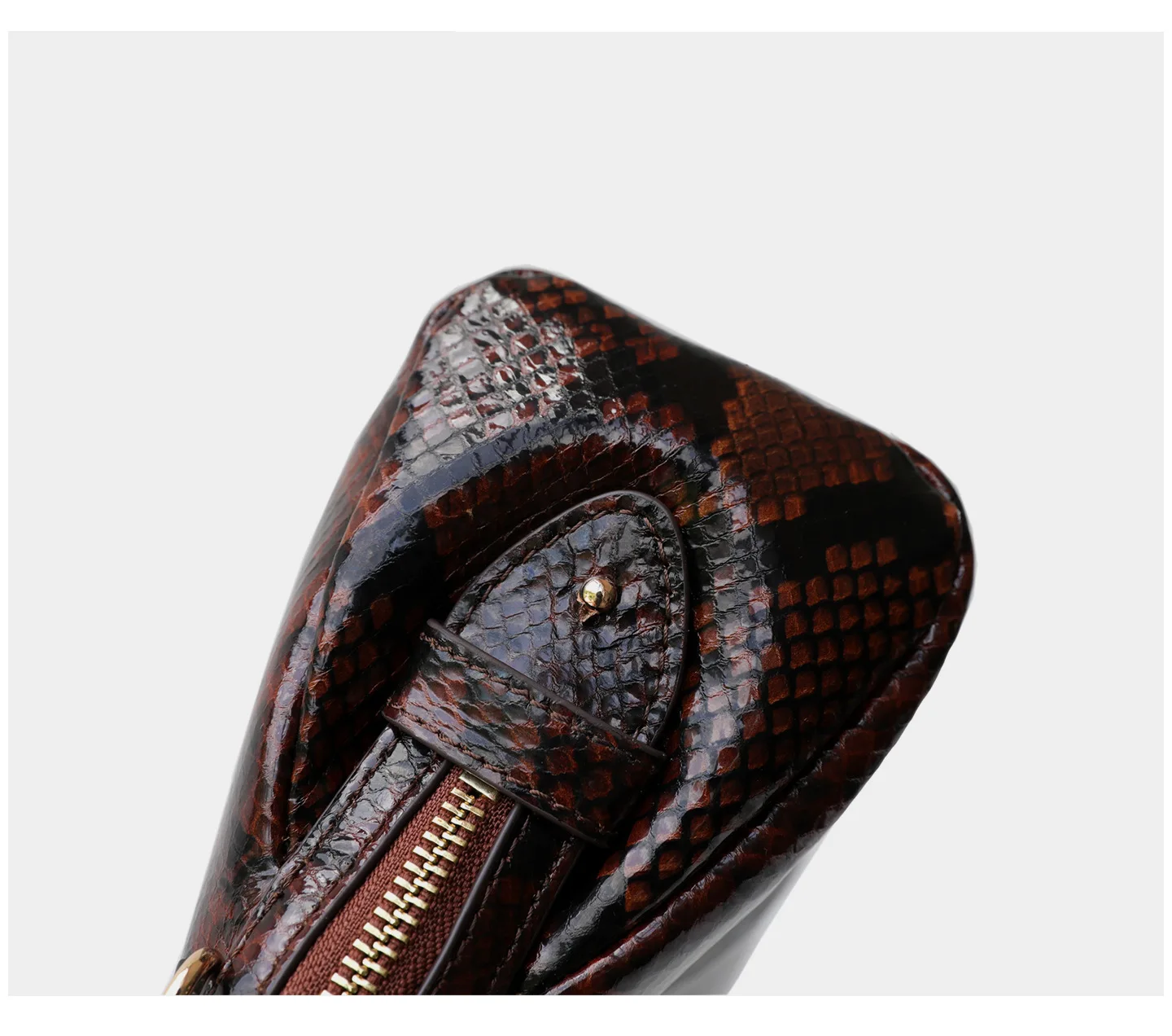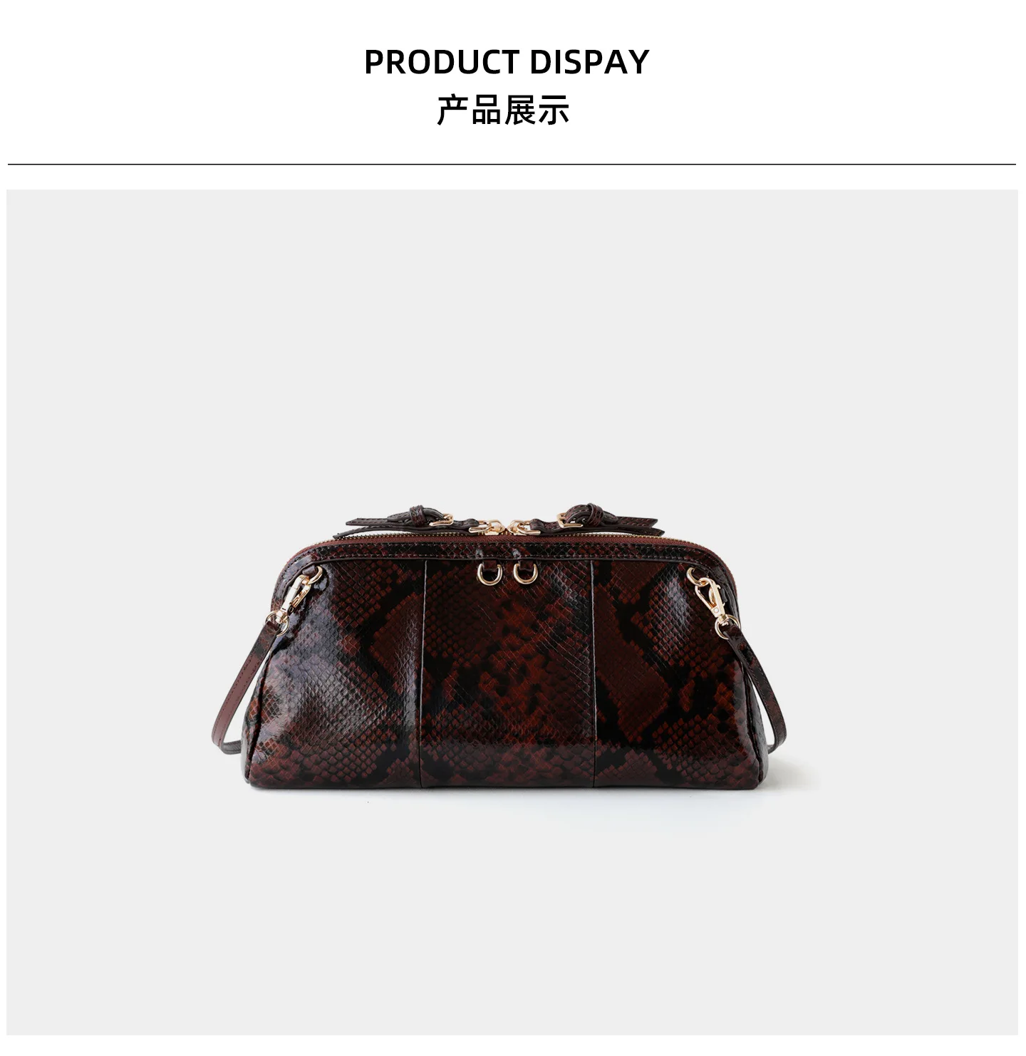 Genuine Leather Top Layer Cowhide Snake Pattern Bags For Women Luxury Designer Handbag Purse New In Vintage Double Shoulder Bag