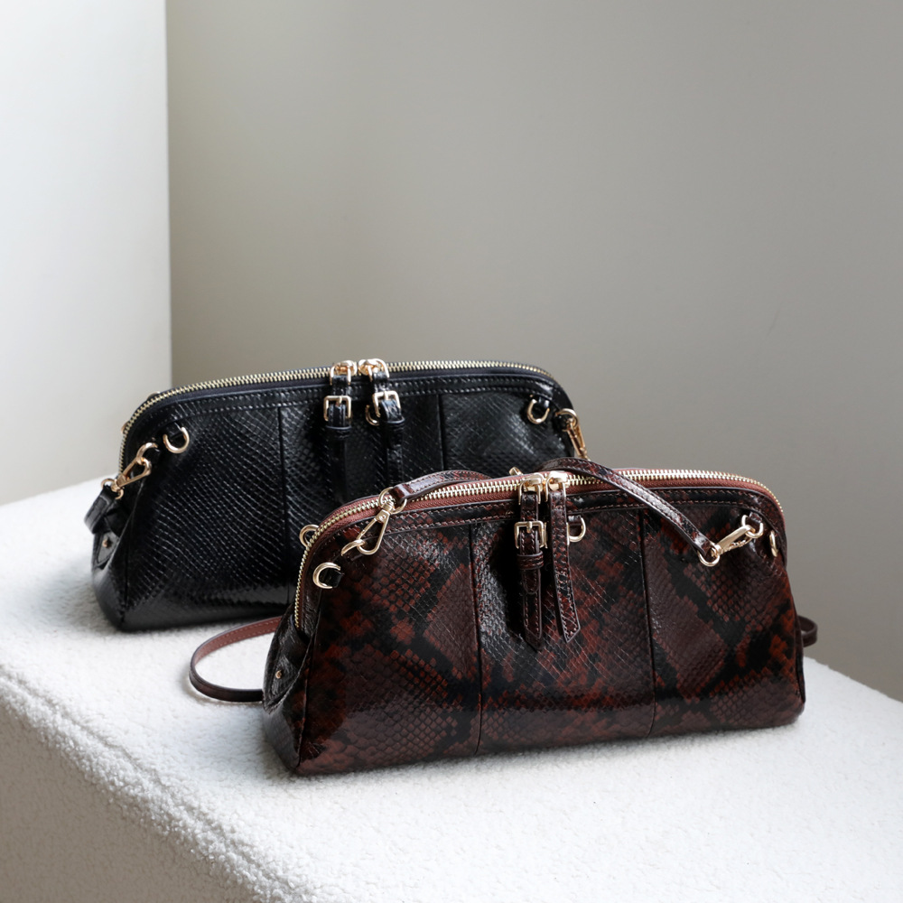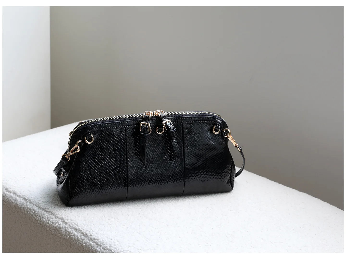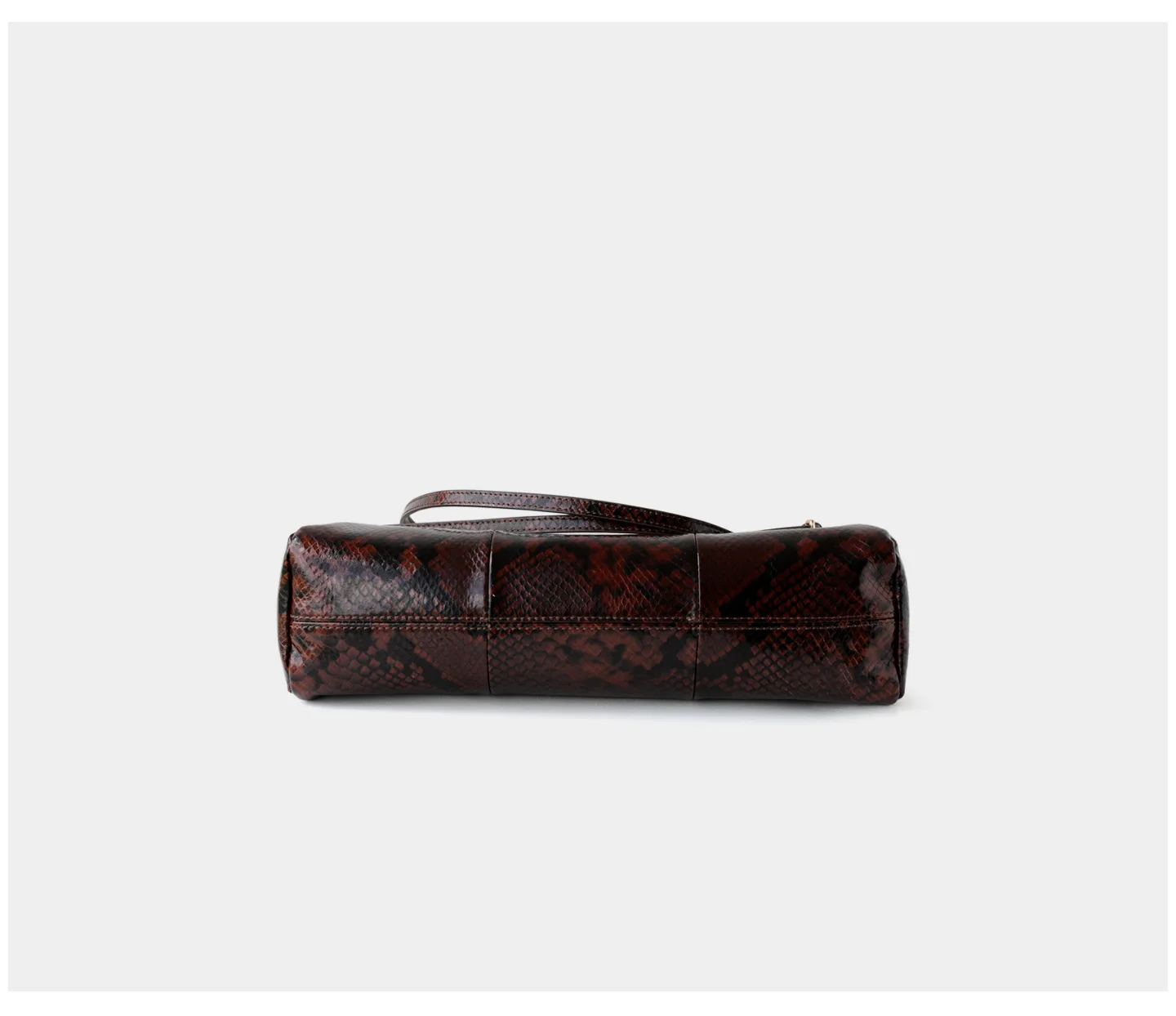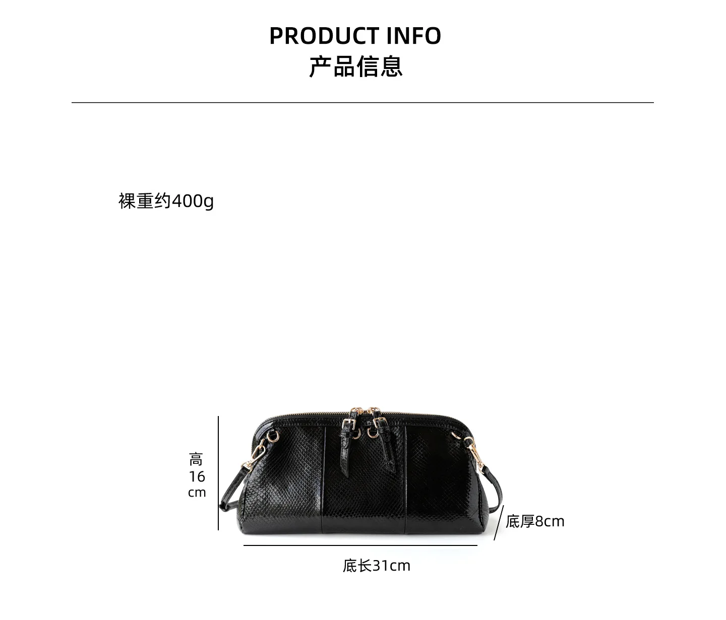 Genuine Leather Top Layer Cowhide Snake Pattern Bags For Women Luxury Designer Handbag Purse New In Vintage Double Shoulder Bag