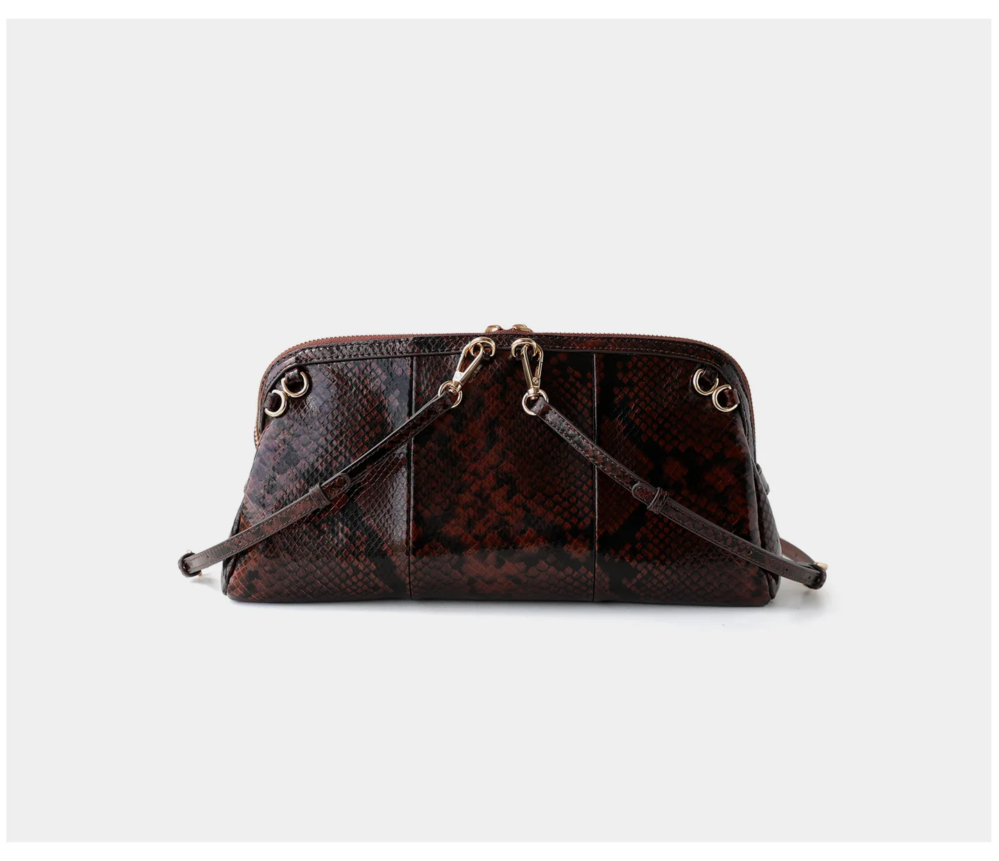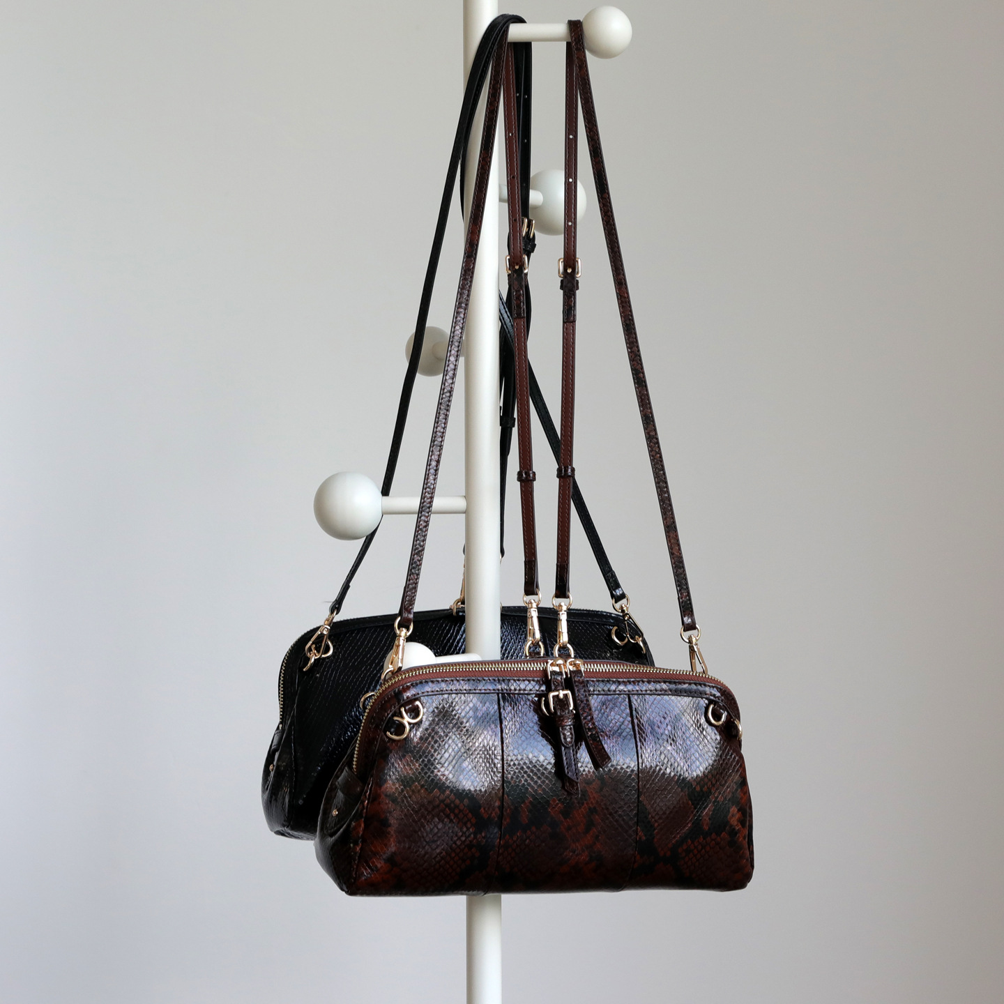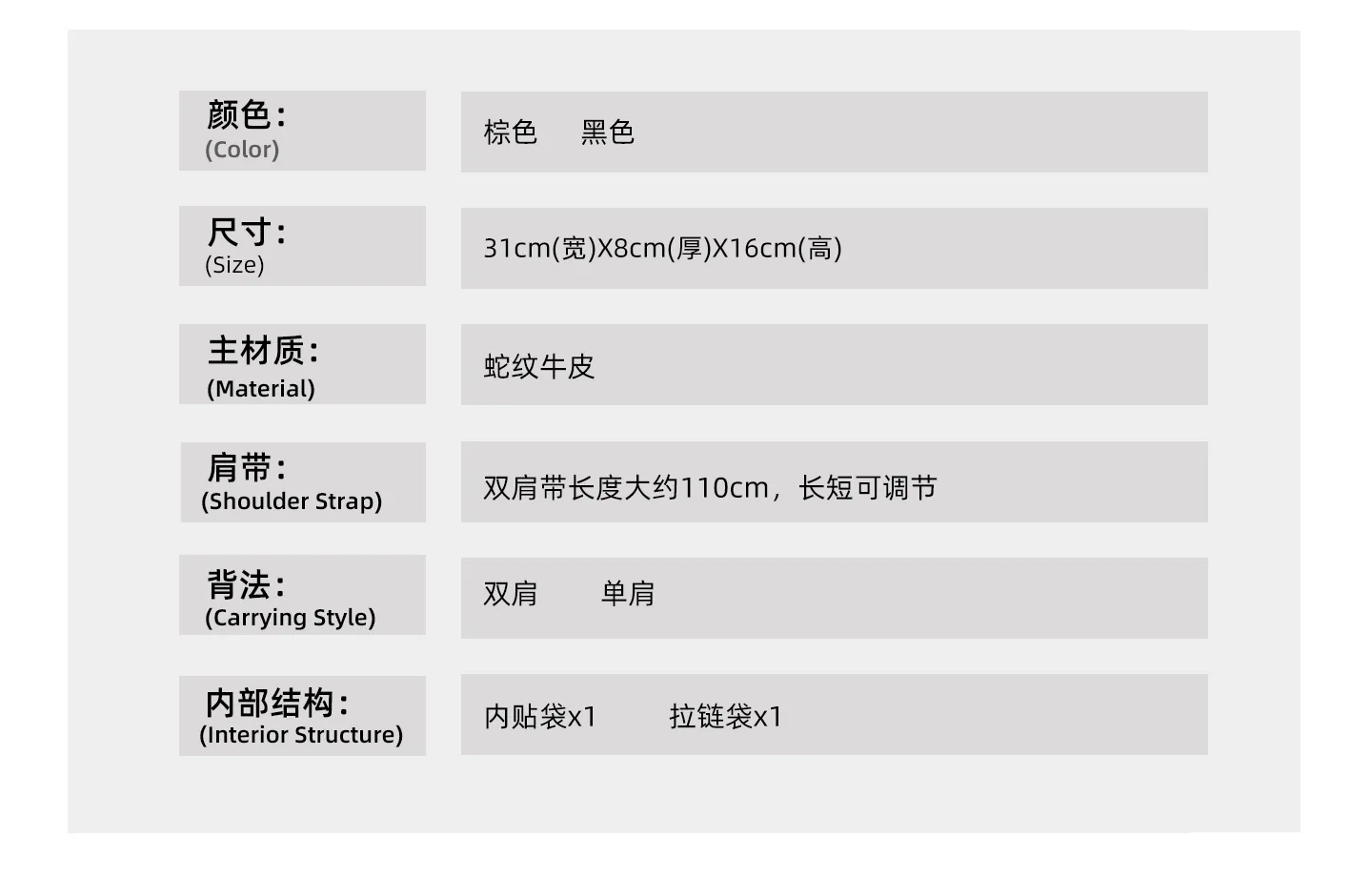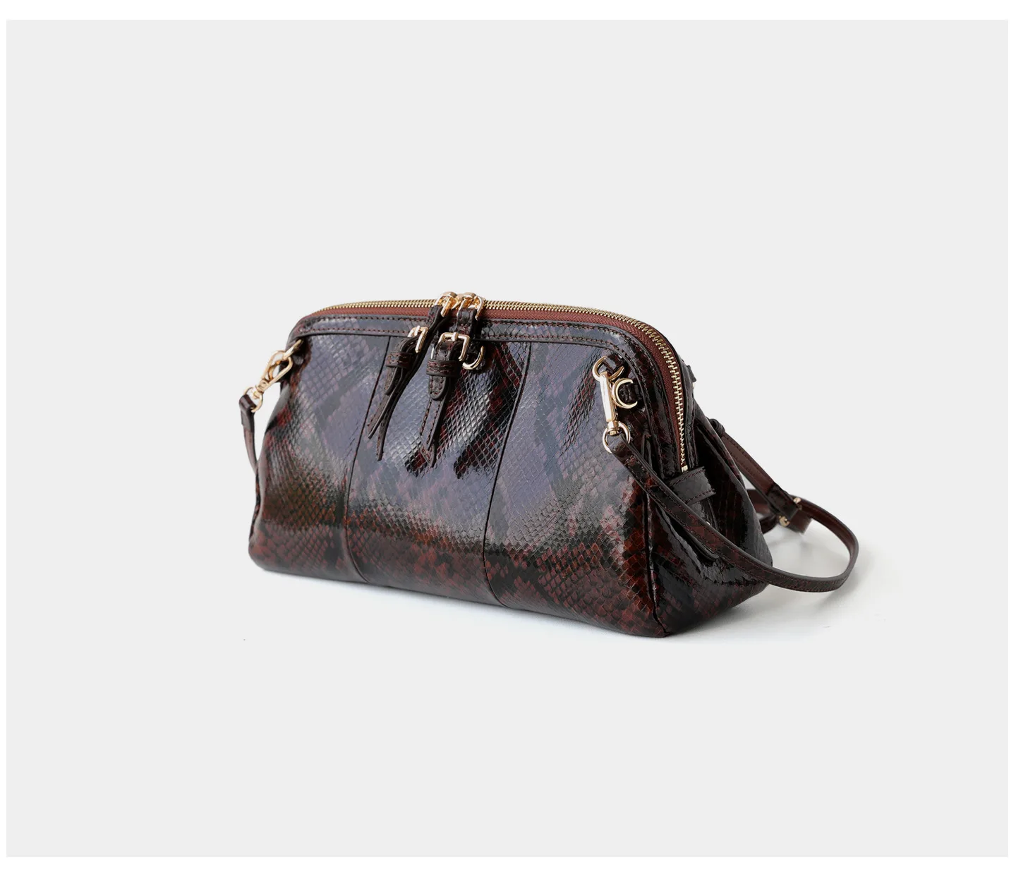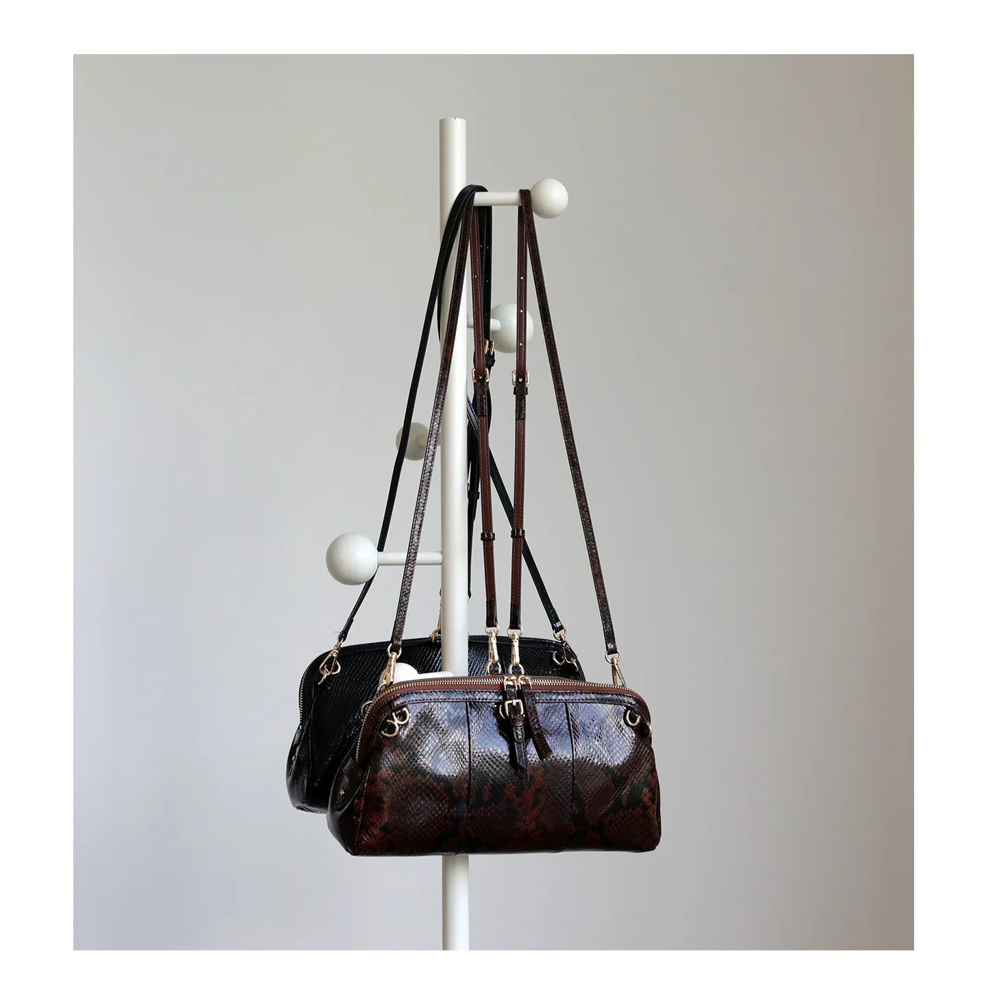 Genuine Leather Top Layer Cowhide Snake Pattern Bags For Women Luxury Designer Handbag Purse New In Vintage Double Shoulder Bag