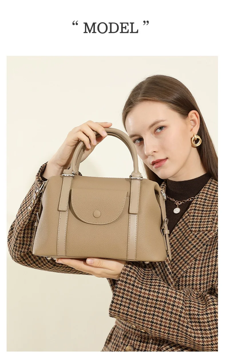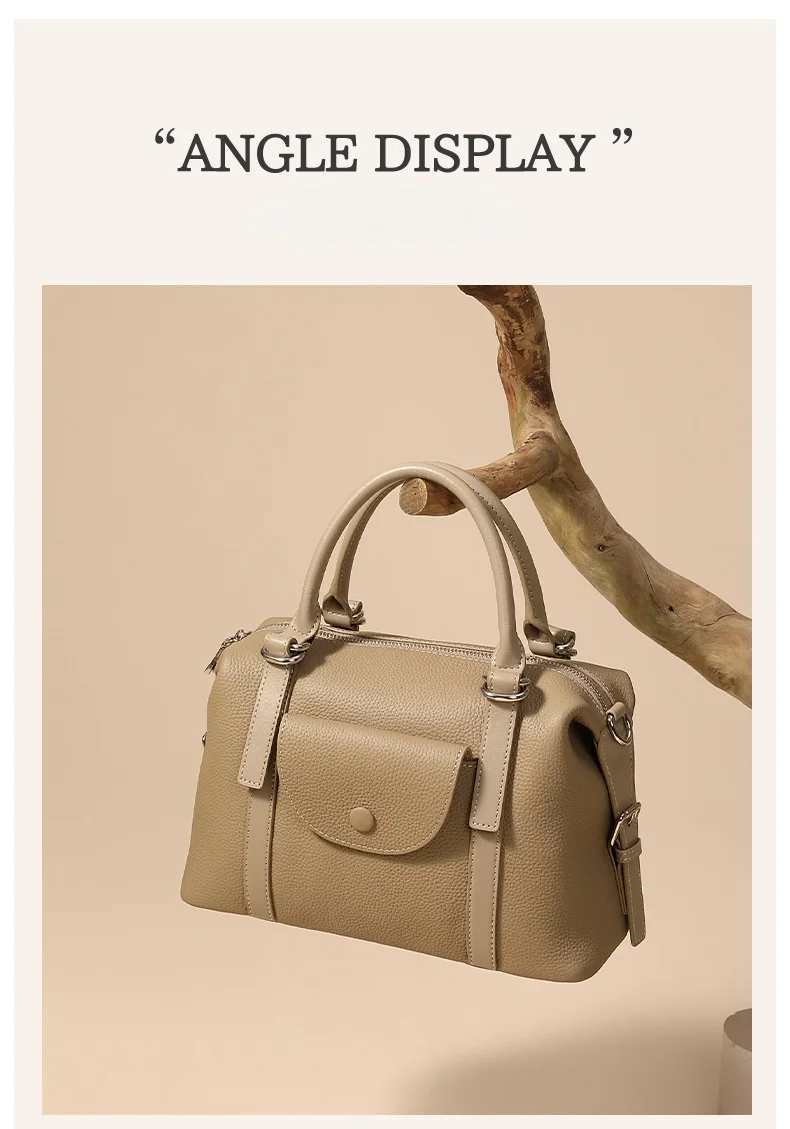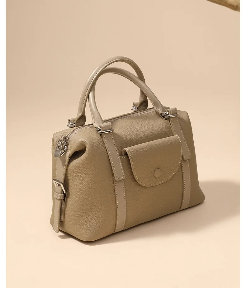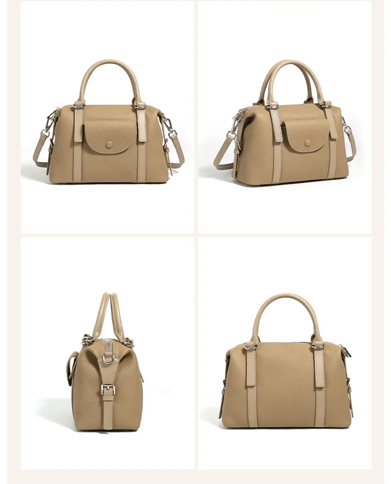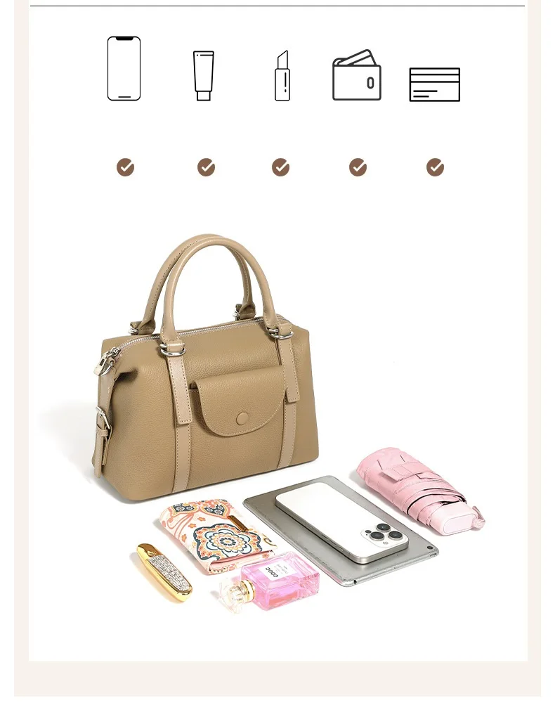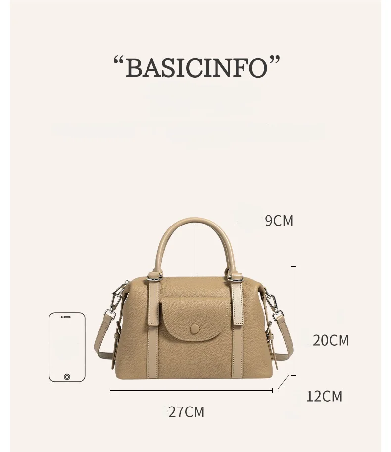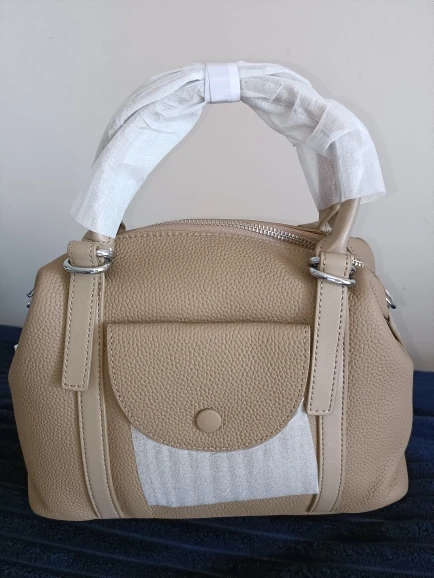 Bag with good finishes and accessories; the leather is soft and the color is beautiful; it has an excellent presentation. It comes with a handle that, although thin, is comfortable. It has an internal pocket and I really feel super comfortable with it. It is sturdy and can hold many things. It is exactly the same as the description or even better. I highly recommend it, I will buy the black one. I give you ⭐ ⭐ ⭐ ⭐ ⭐ . I had doubts, I took a risk and won! !! ! thank you 😊