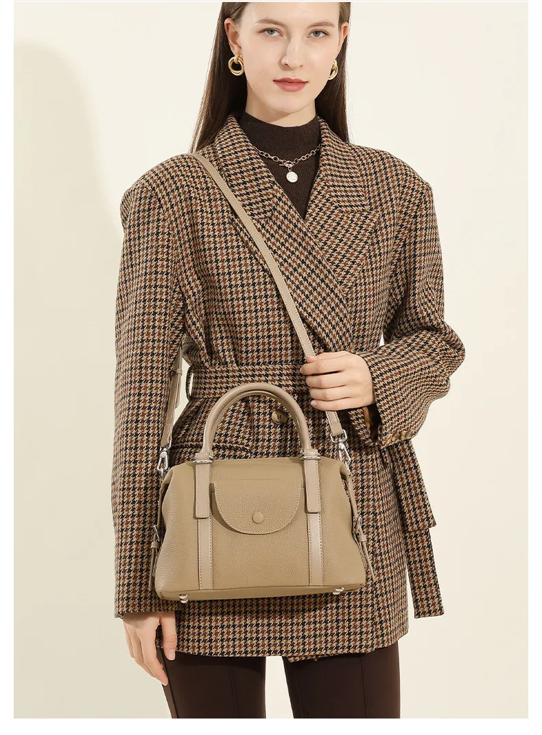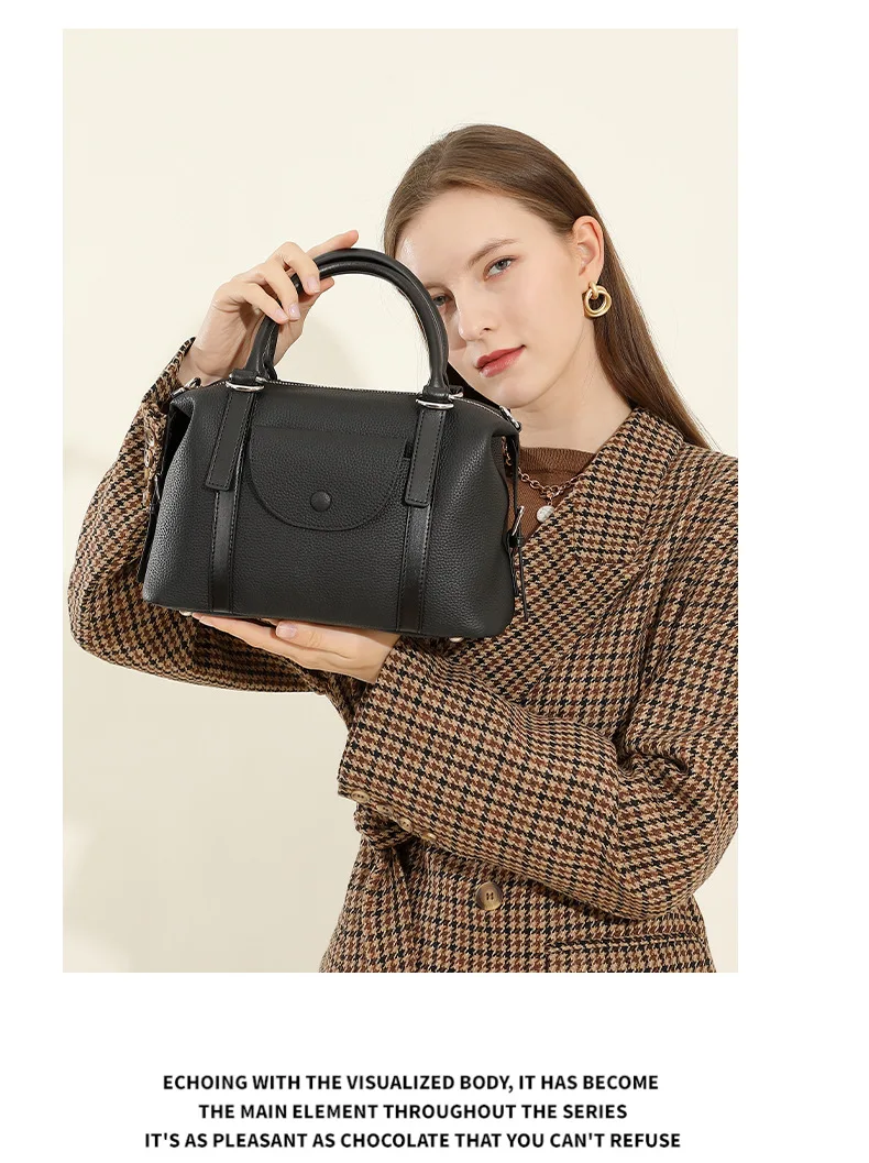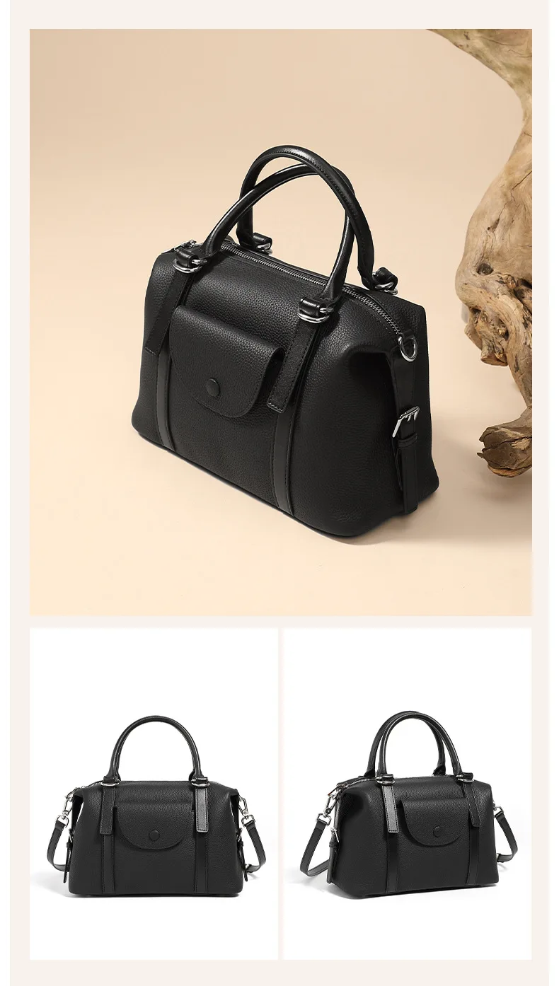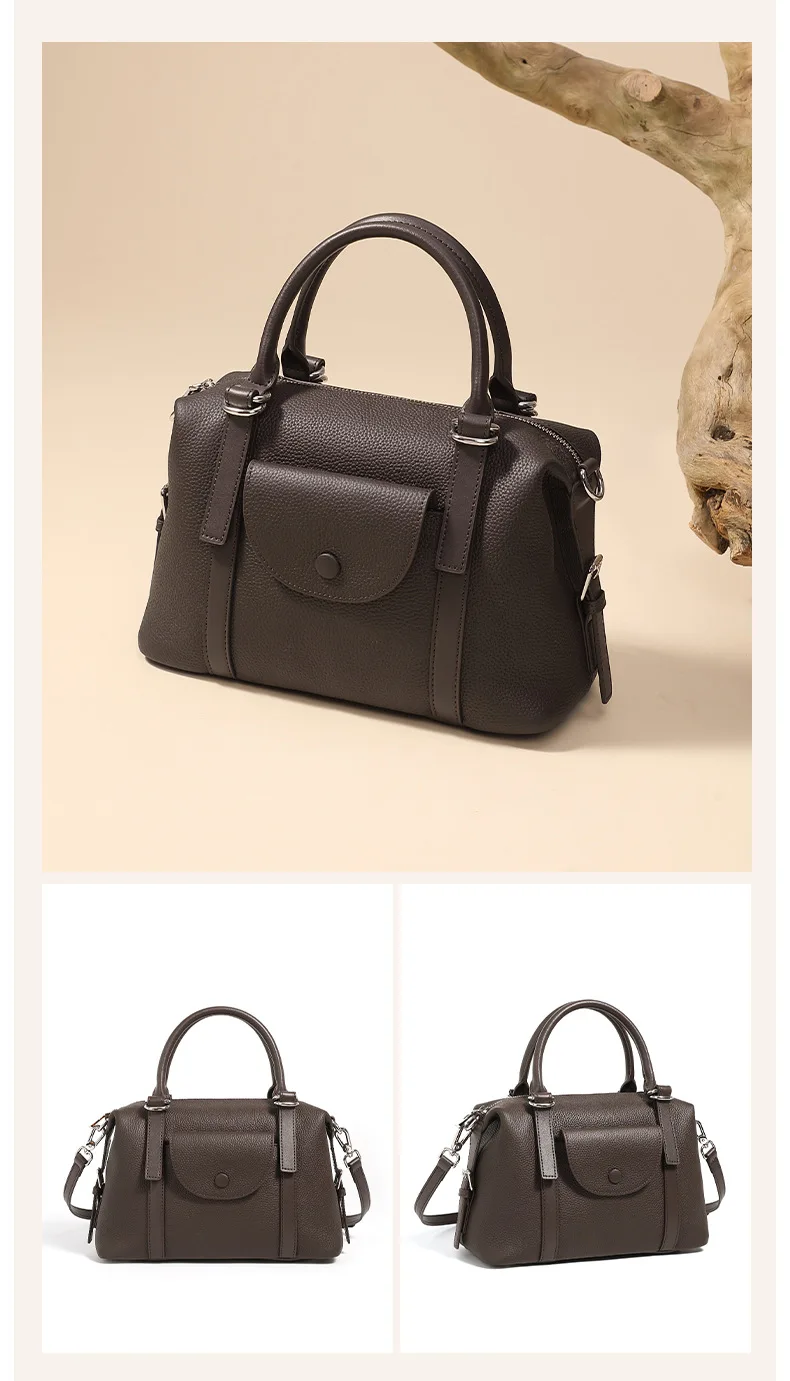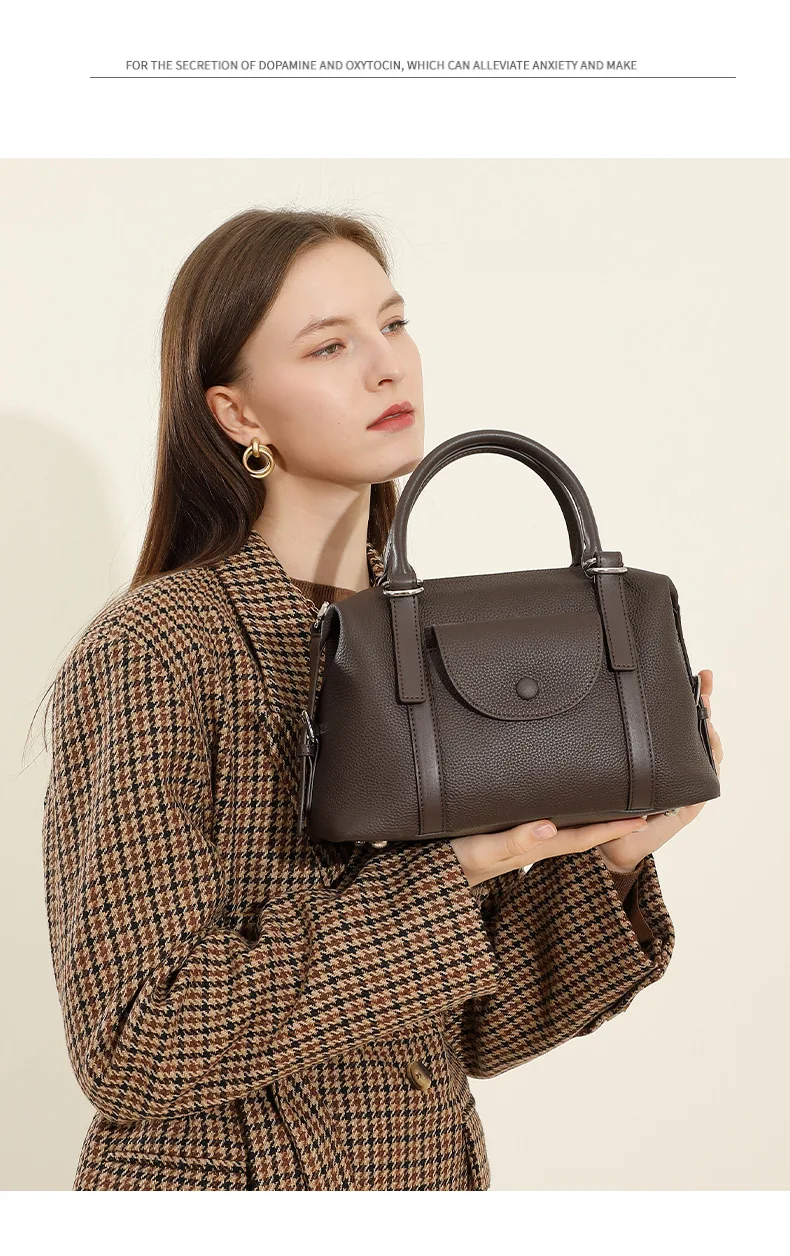 Bag with good finishes and accessories; the leather is soft and the color is beautiful; it has an excellent presentation. It comes with a handle that, although thin, is comfortable. It has an internal pocket and I really feel super comfortable with it. It is sturdy and can hold many things. It is exactly the same as the description or even better. I highly recommend it, I will buy the black one. I give you ⭐ ⭐ ⭐ ⭐ ⭐ . I had doubts, I took a risk and won! !! ! thank you 😊