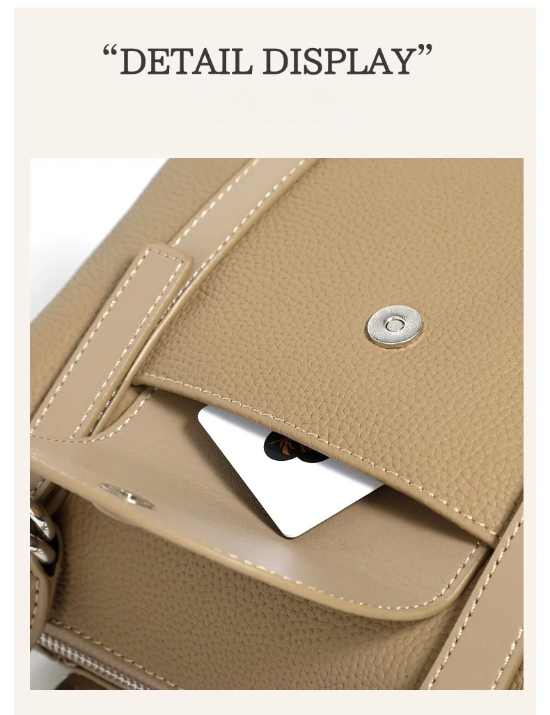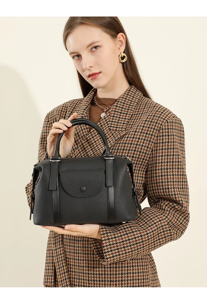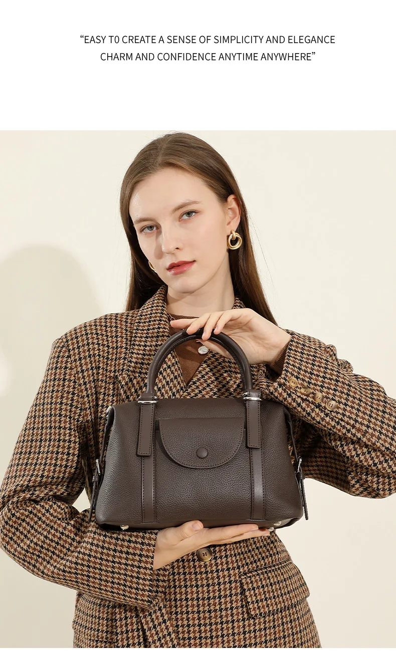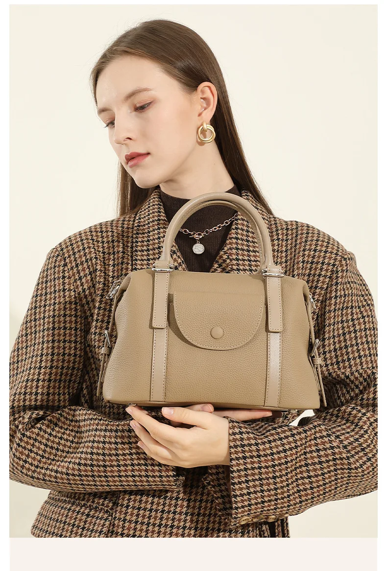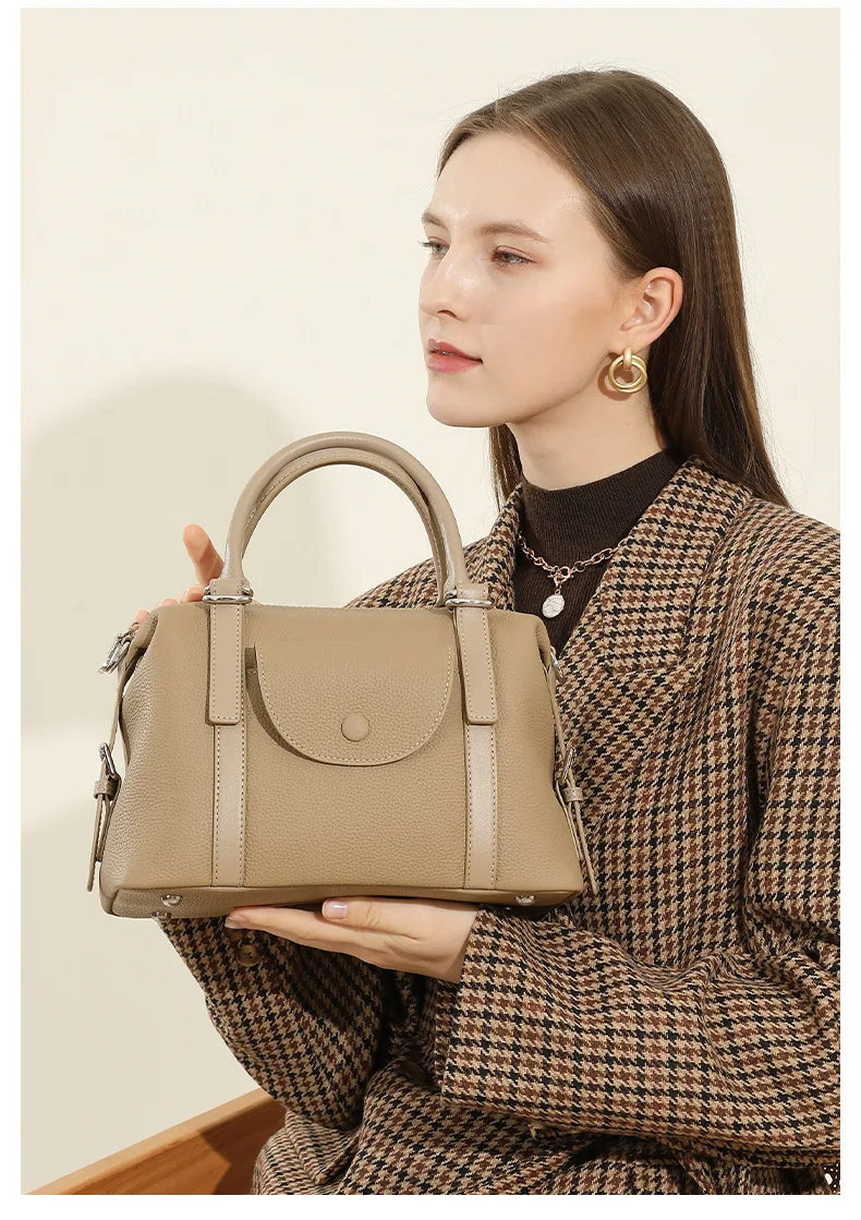 Bag with good finishes and accessories; the leather is soft and the color is beautiful; it has an excellent presentation. It comes with a handle that, although thin, is comfortable. It has an internal pocket and I really feel super comfortable with it. It is sturdy and can hold many things. It is exactly the same as the description or even better. I highly recommend it, I will buy the black one. I give you ⭐ ⭐ ⭐ ⭐ ⭐ . I had doubts, I took a risk and won! !! ! thank you 😊