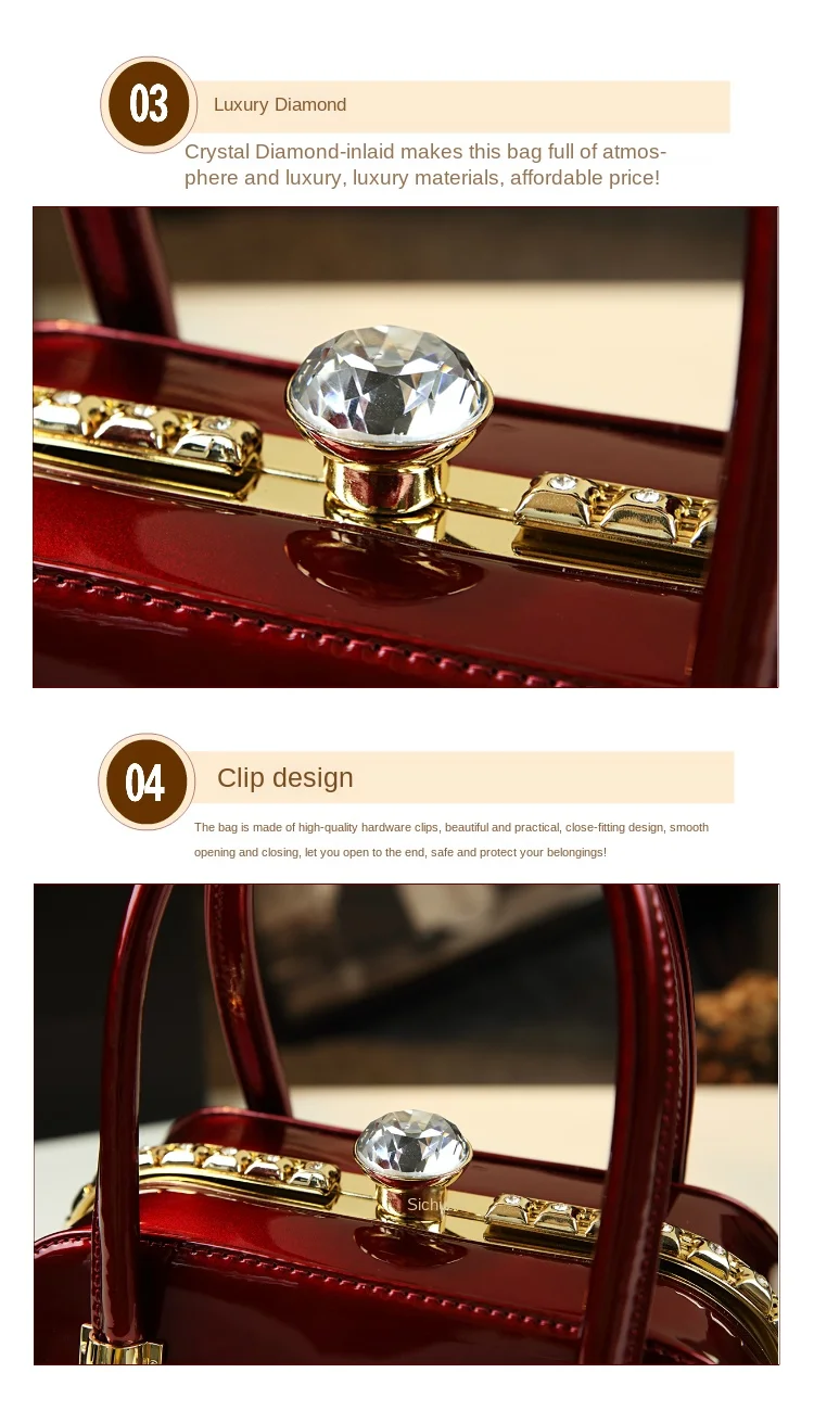 Genuine Leather Women Handbags Small Shoulder Messenger Party Evening Bag 2023 Fashion Diamonds Simple Hard Bride Wedding Bags