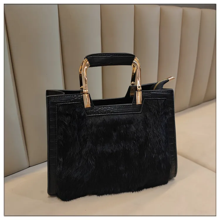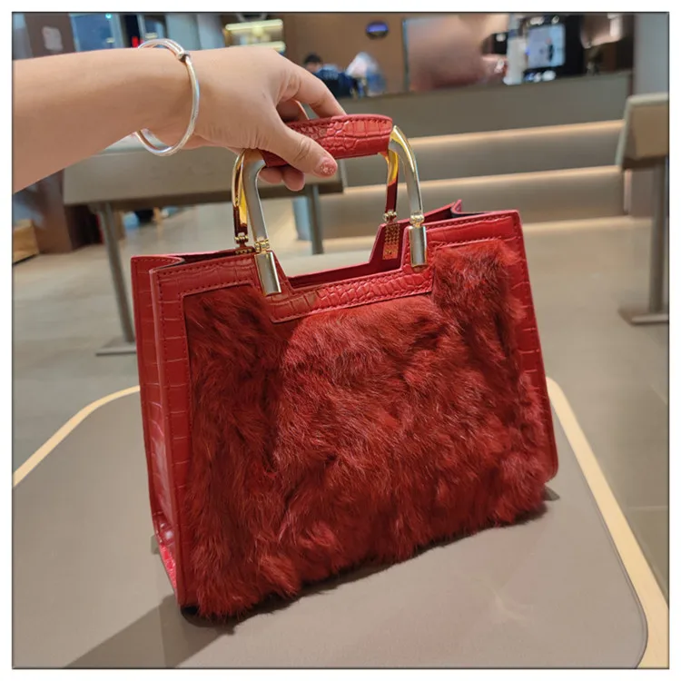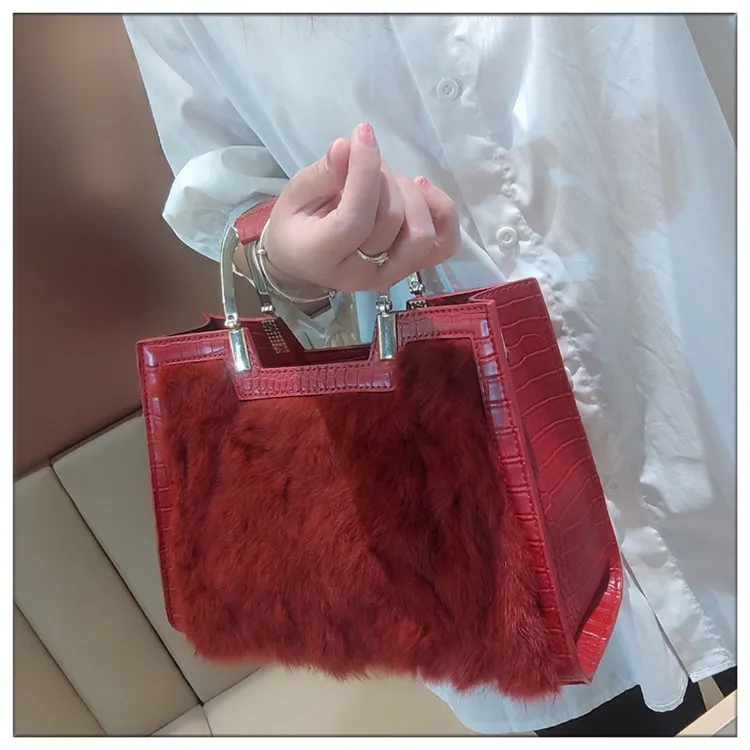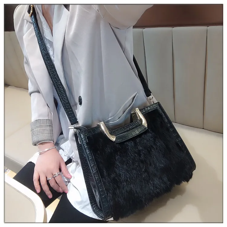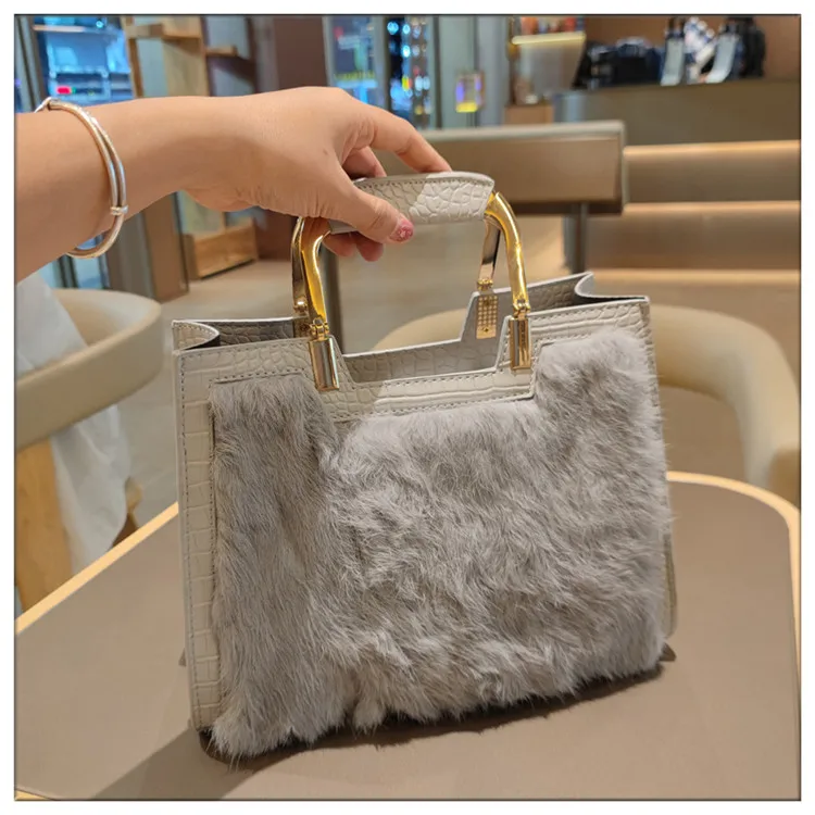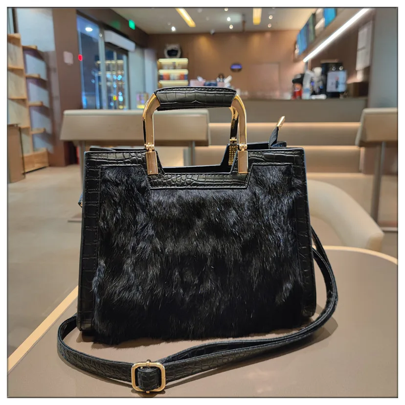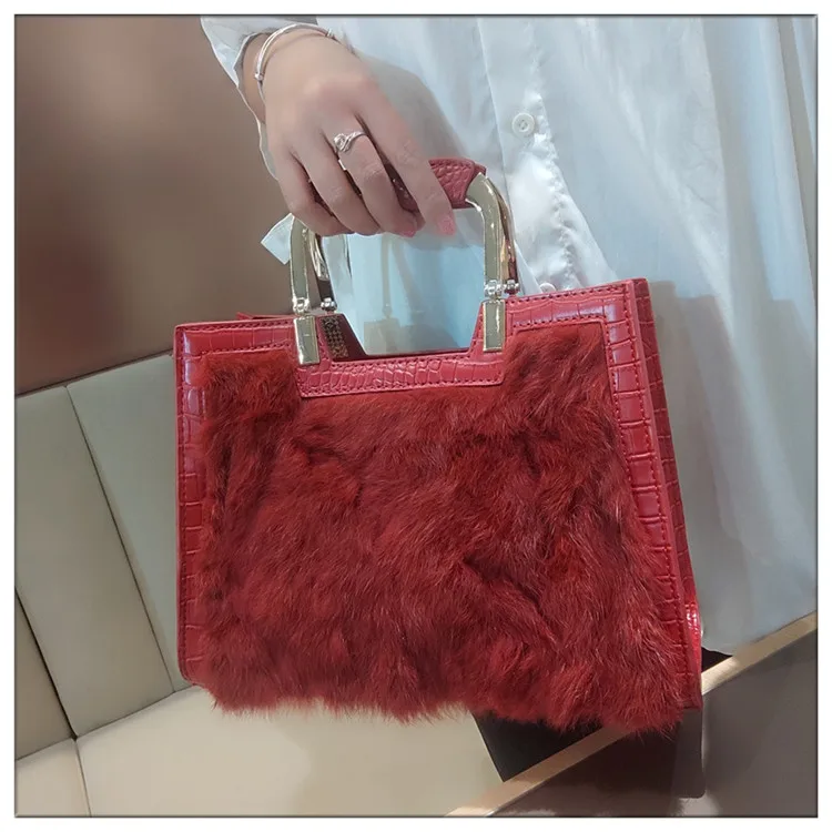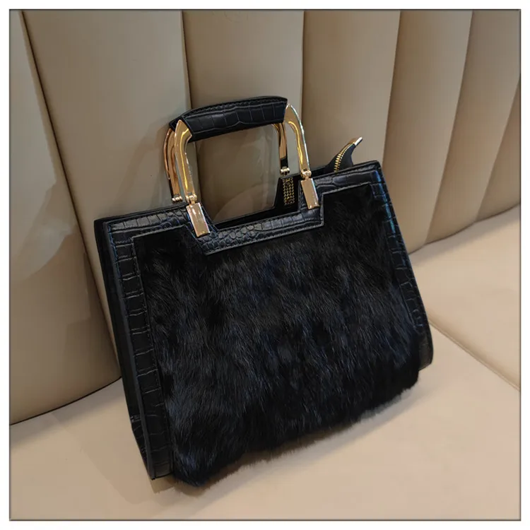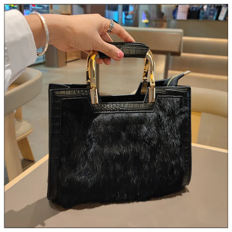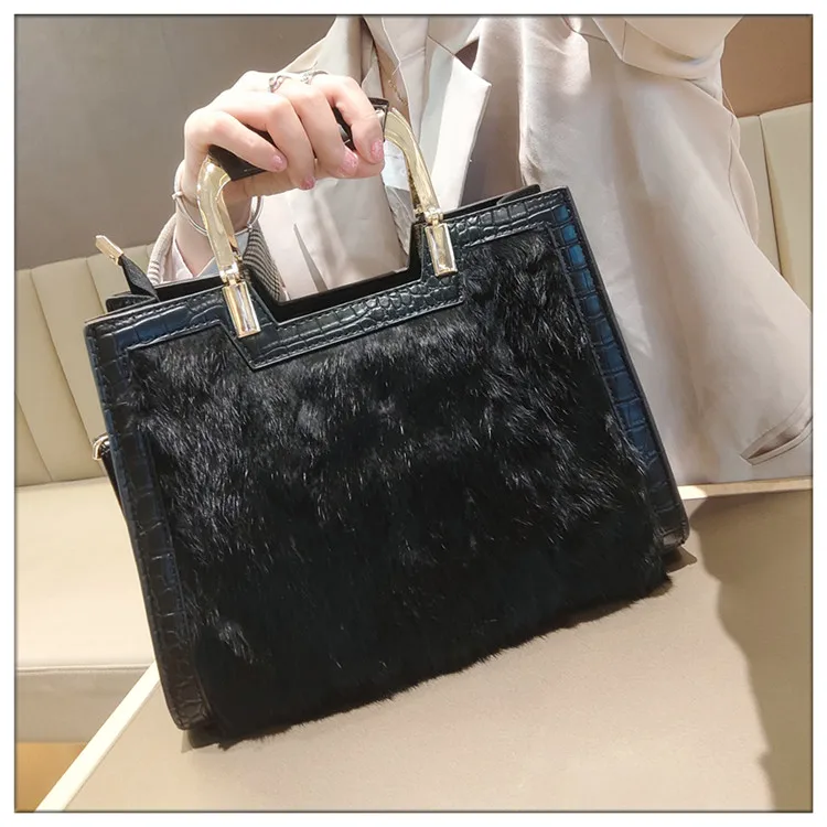 Genuine Leather Women’s Handbag Luxury Fashion Real Rabbit Hair Single Shoulder Messenger Bag Large Capacity Portable Tote Bags