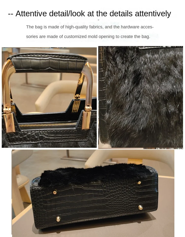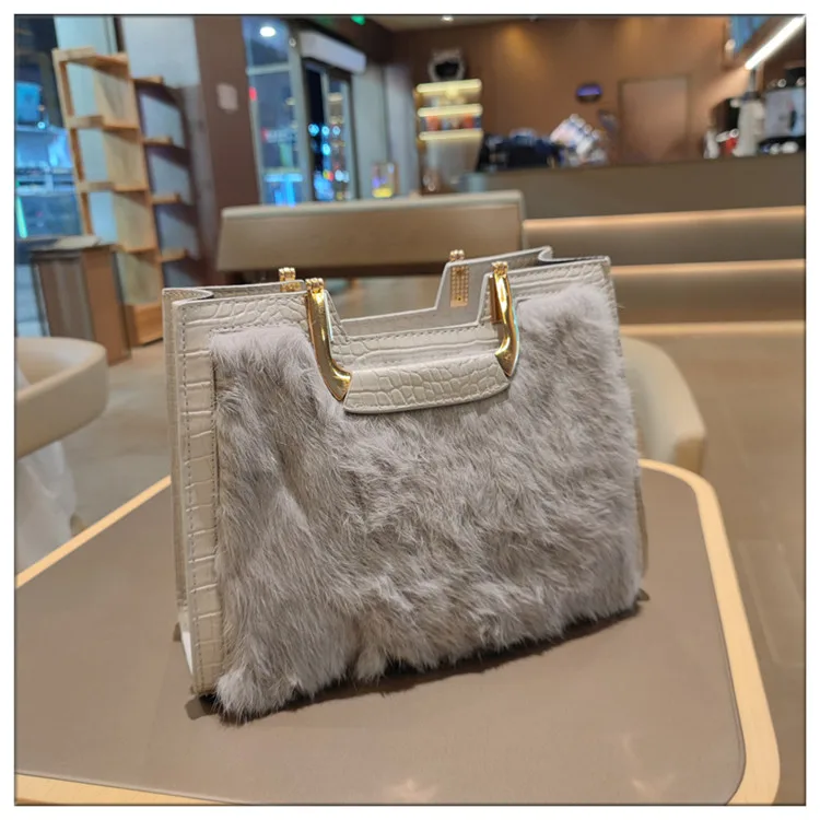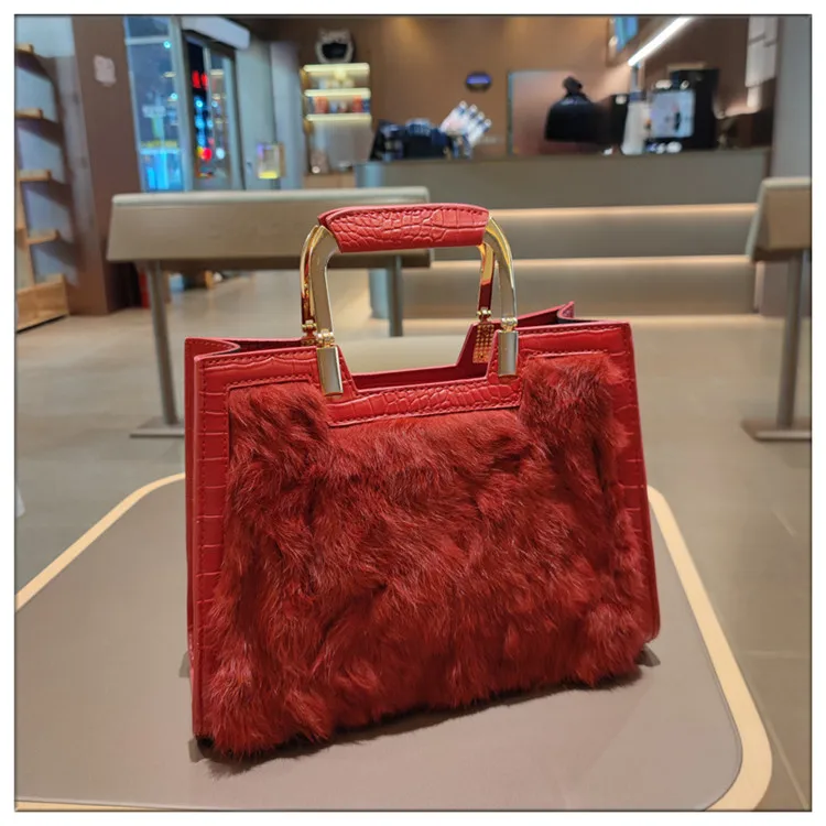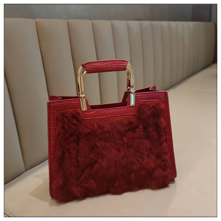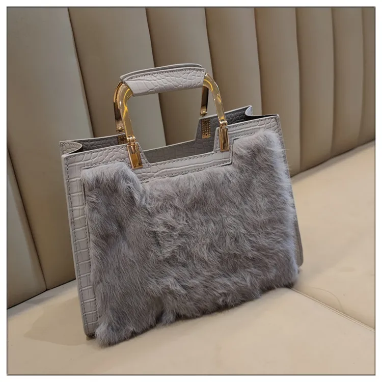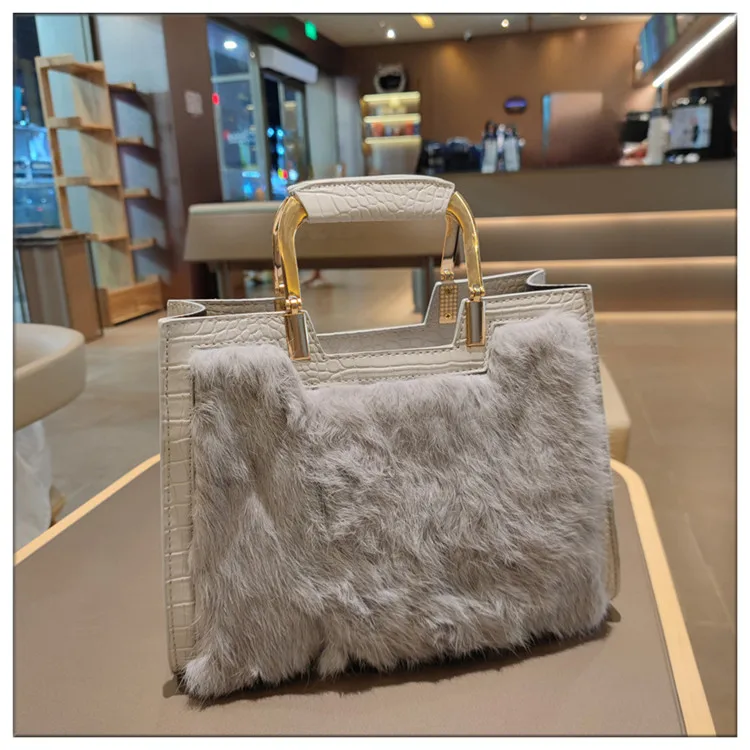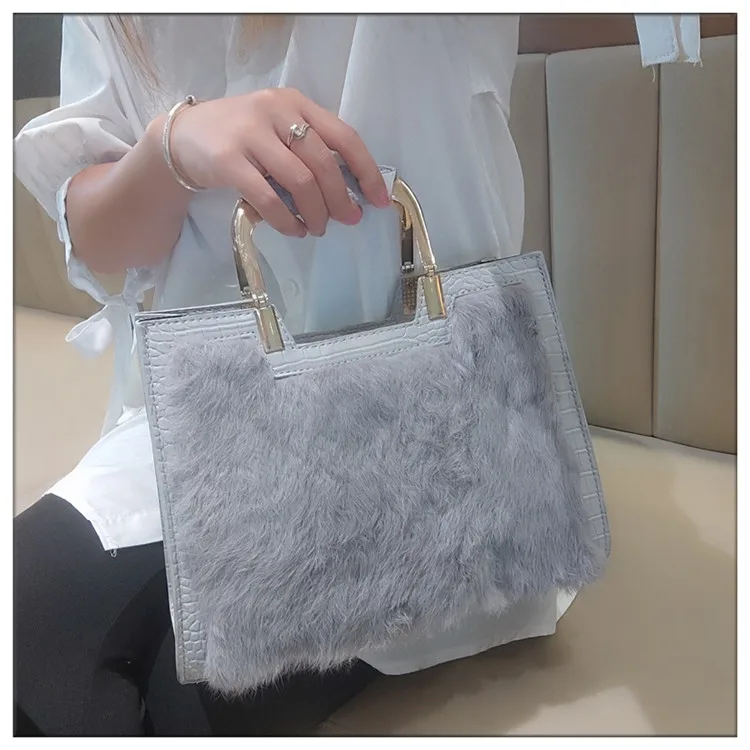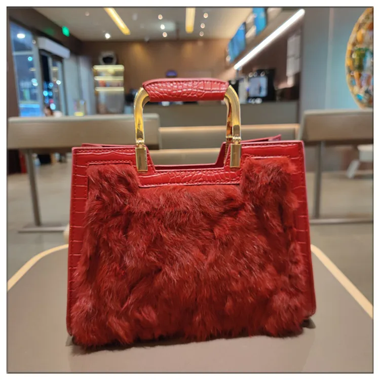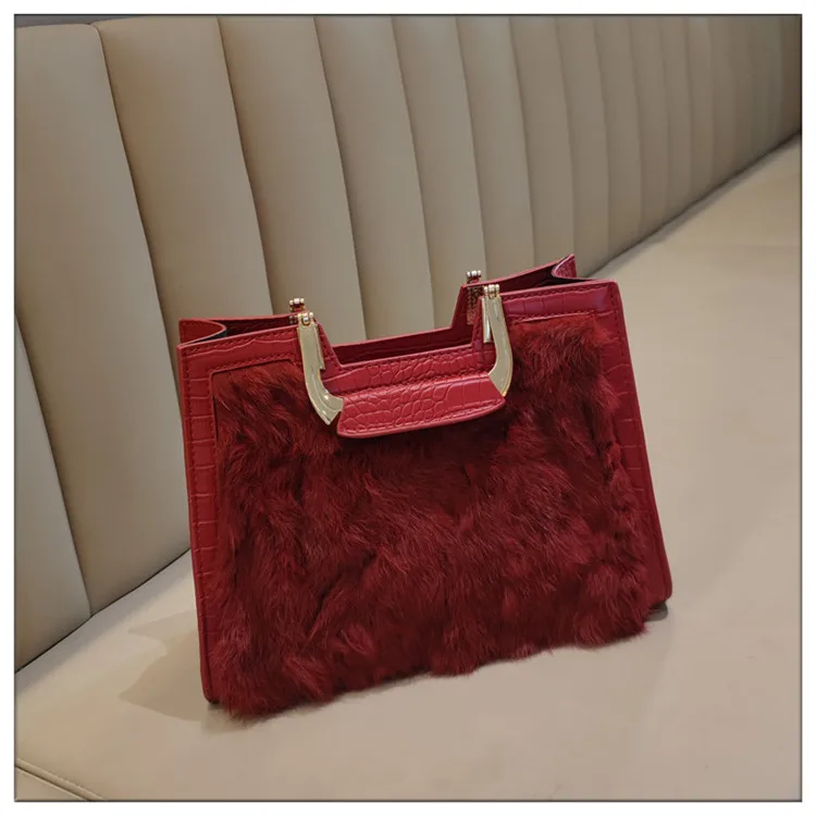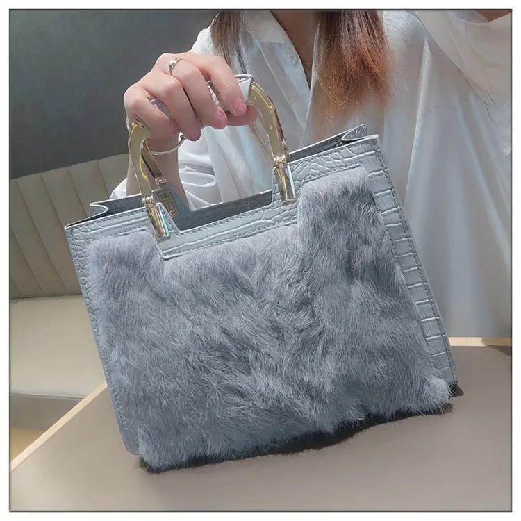 Genuine Leather Women’s Handbag Luxury Fashion Real Rabbit Hair Single Shoulder Messenger Bag Large Capacity Portable Tote Bags
