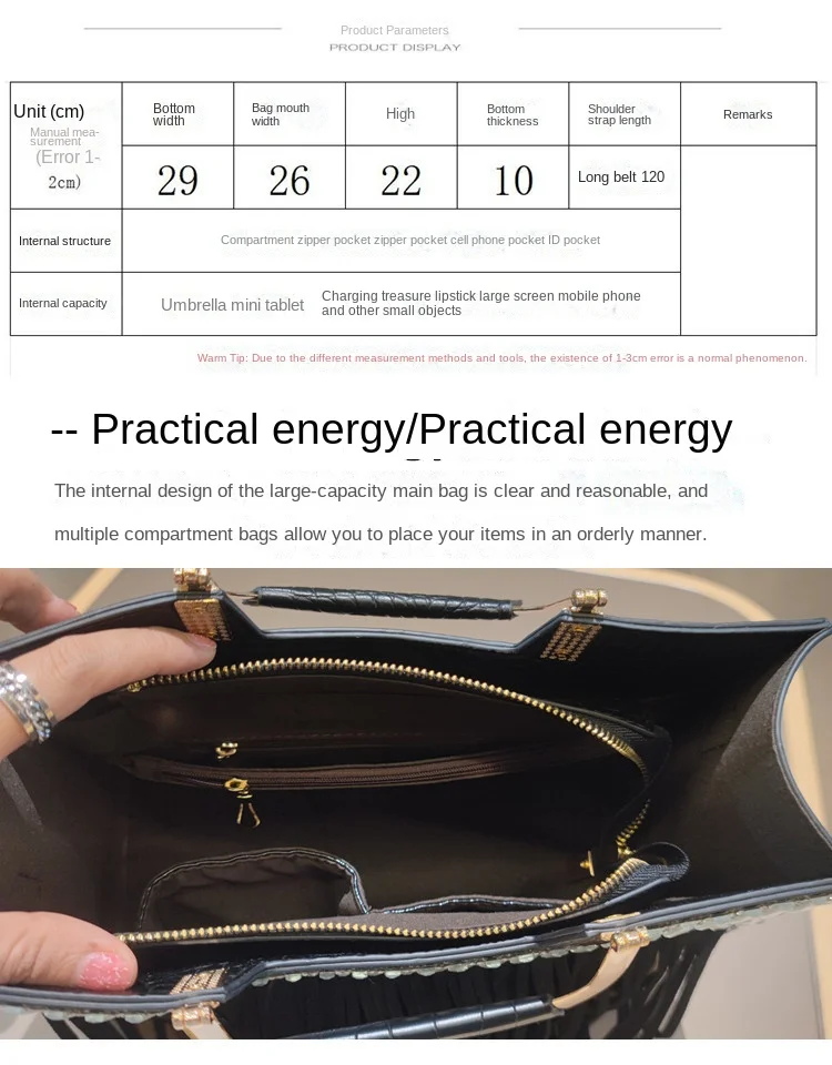Structure: main bag, zipper bag, mobile phone bag