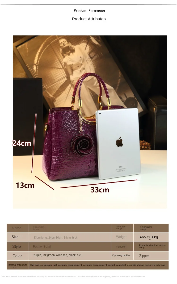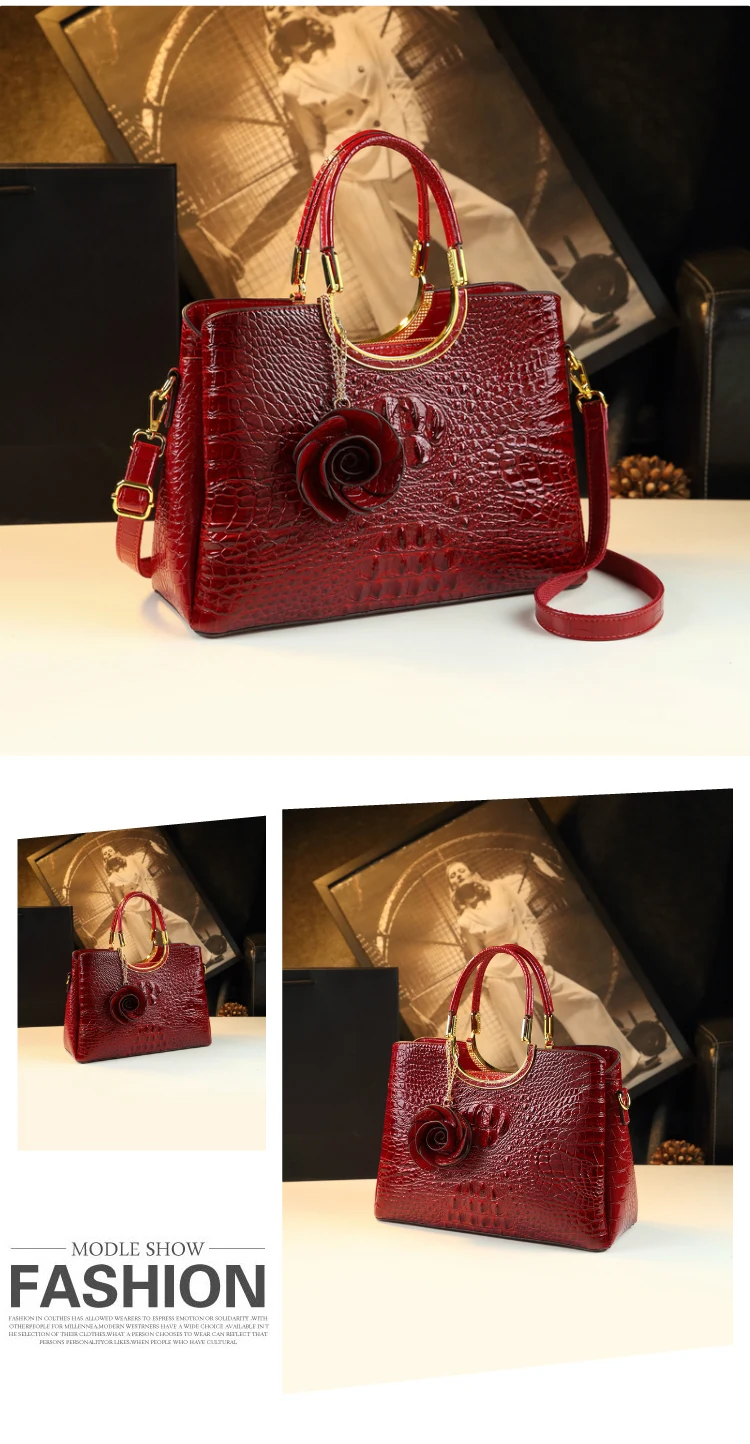 Genuine Leather Women’s Handbags Crocodile Pattern Lady Flower Tassel Shoulder Messenger Bag Fashion Wedding Top Handle Bags