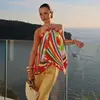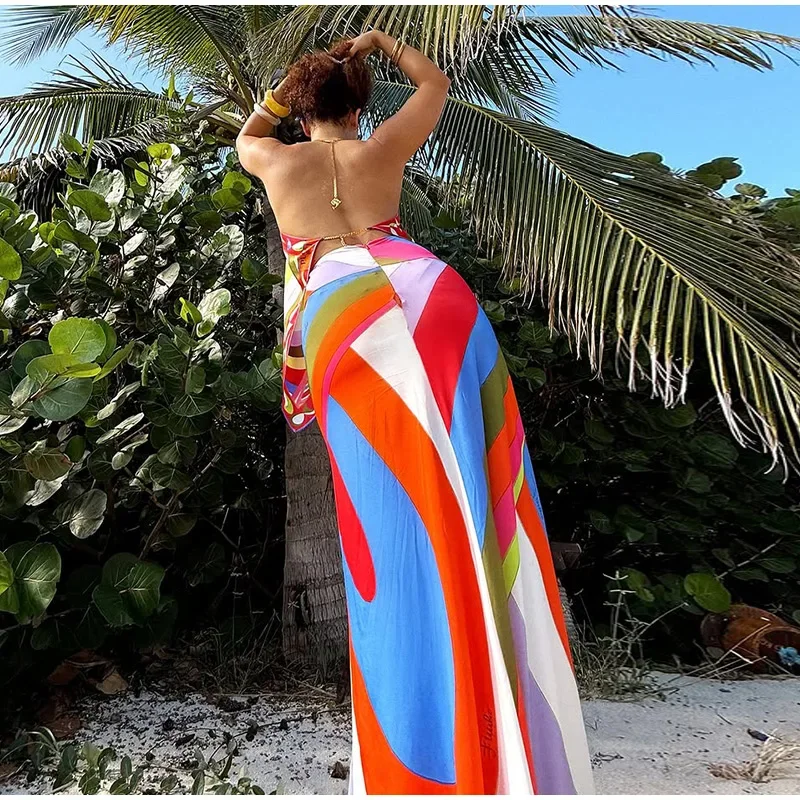 Geometric Print Halter Long Skirt Set Women Sexy Backless Sleeveless Top Straight Skirts 2025 Summer Lady Beach Outfits Street