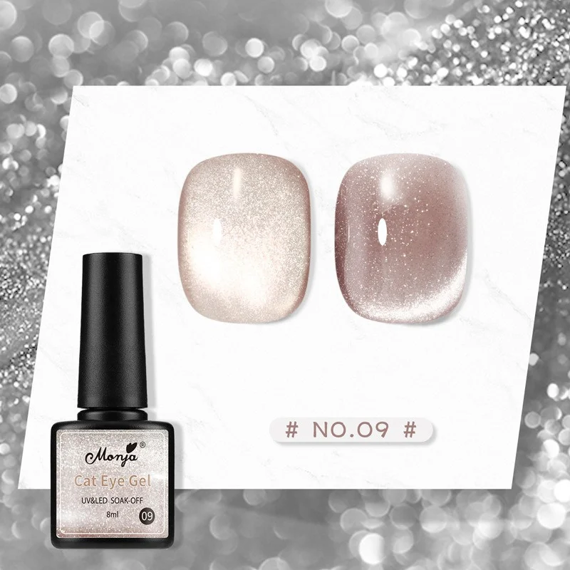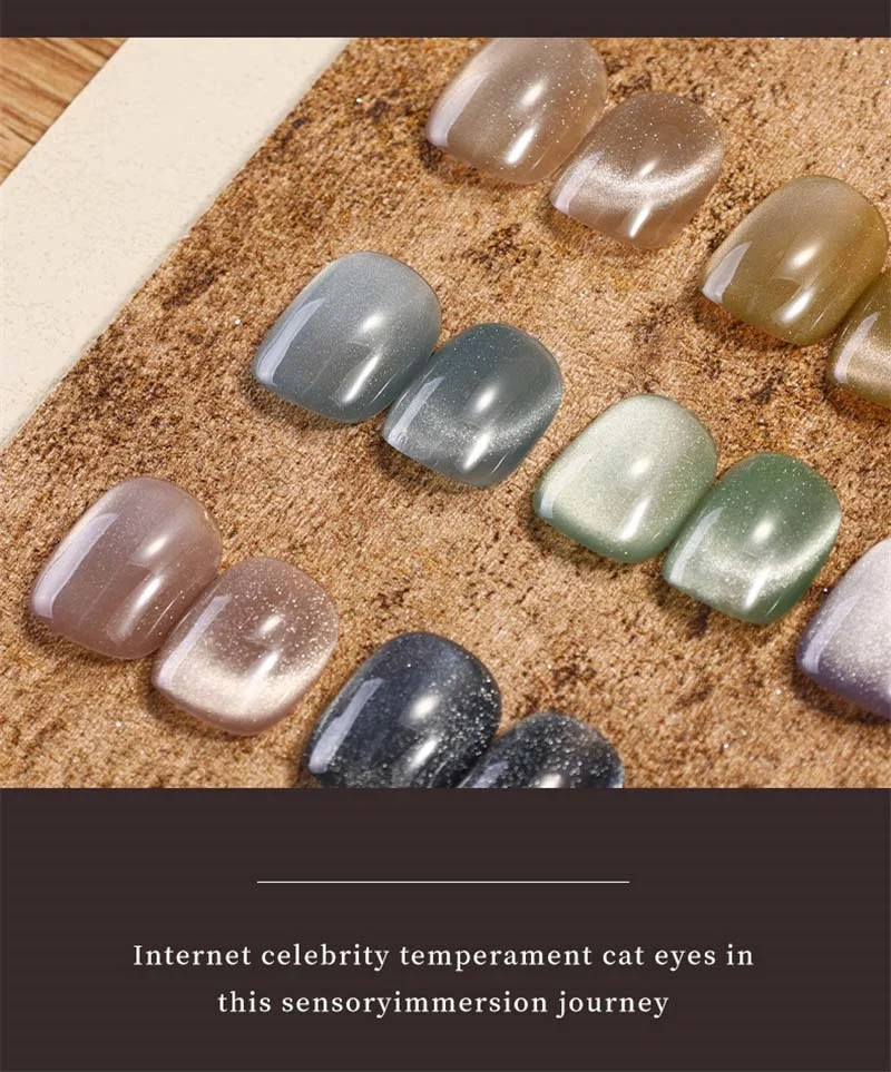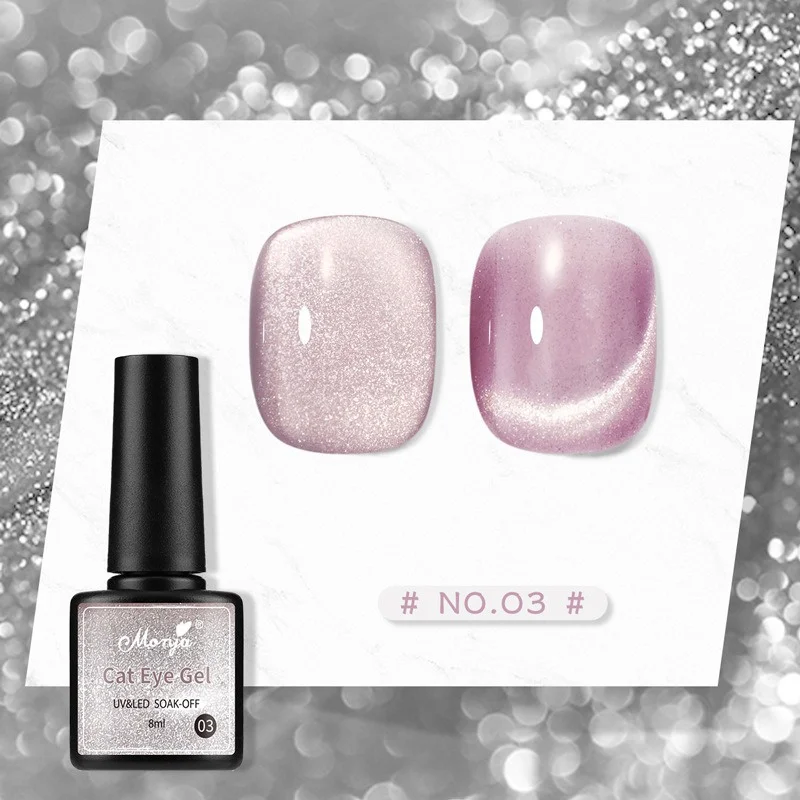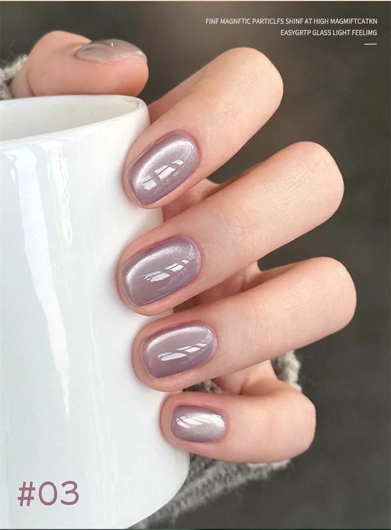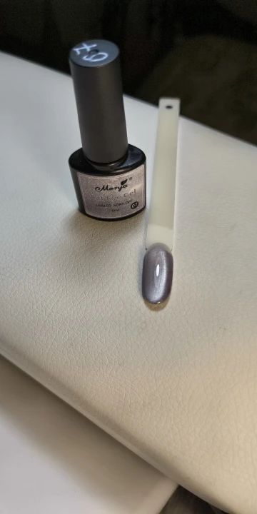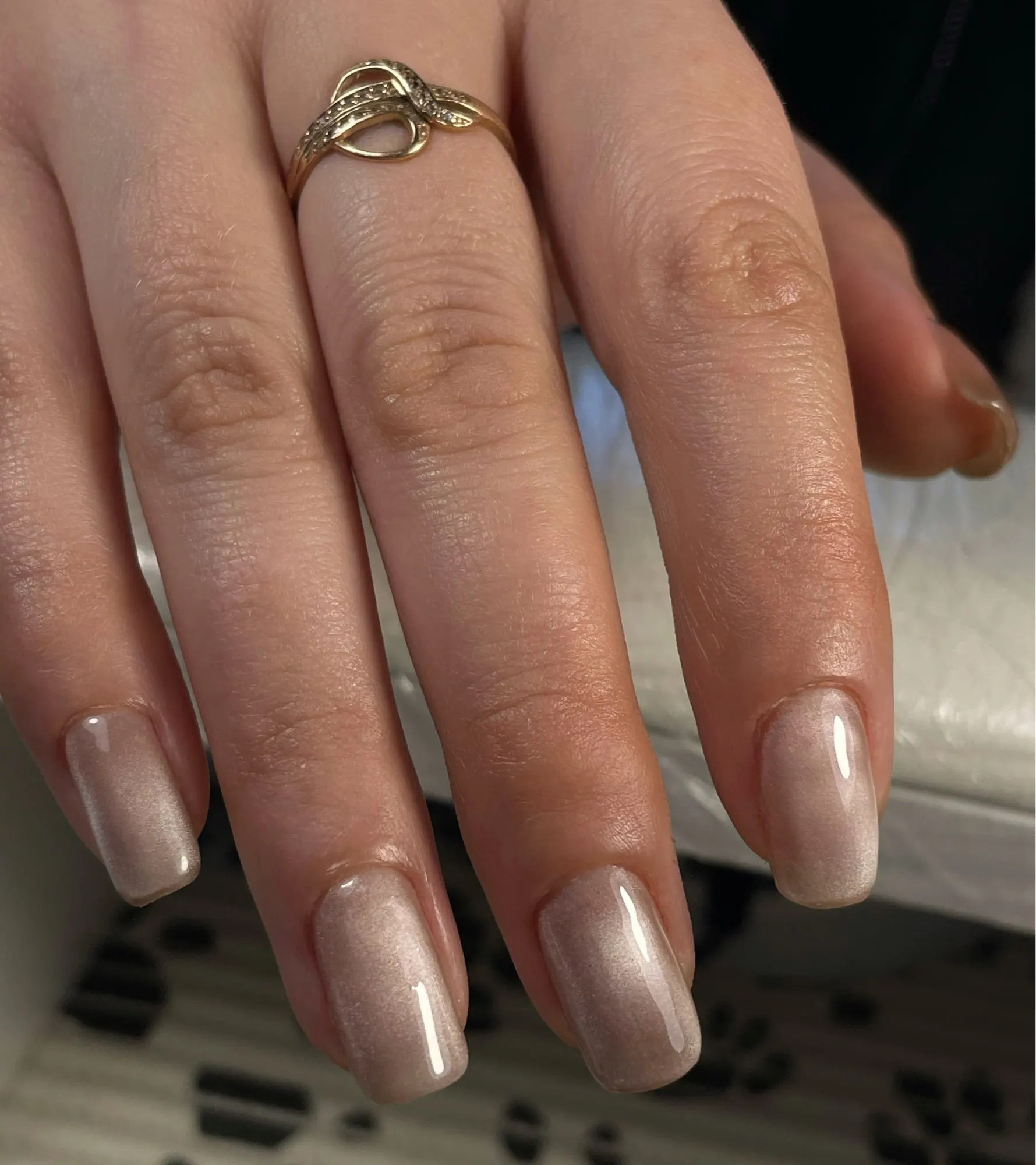 Very small metal parts, really a silk cat, so it is possible to make a Korean manicure, like a cat effect (the photo does not pass, unfortunately). One layer of half-transparent patch with a brown nude shade, really like it!