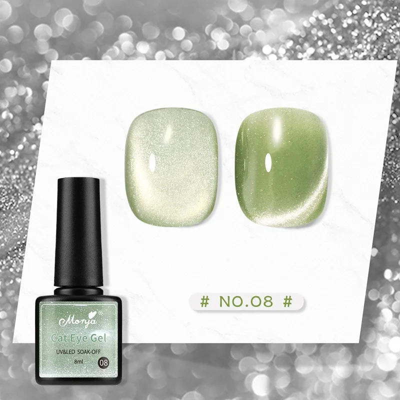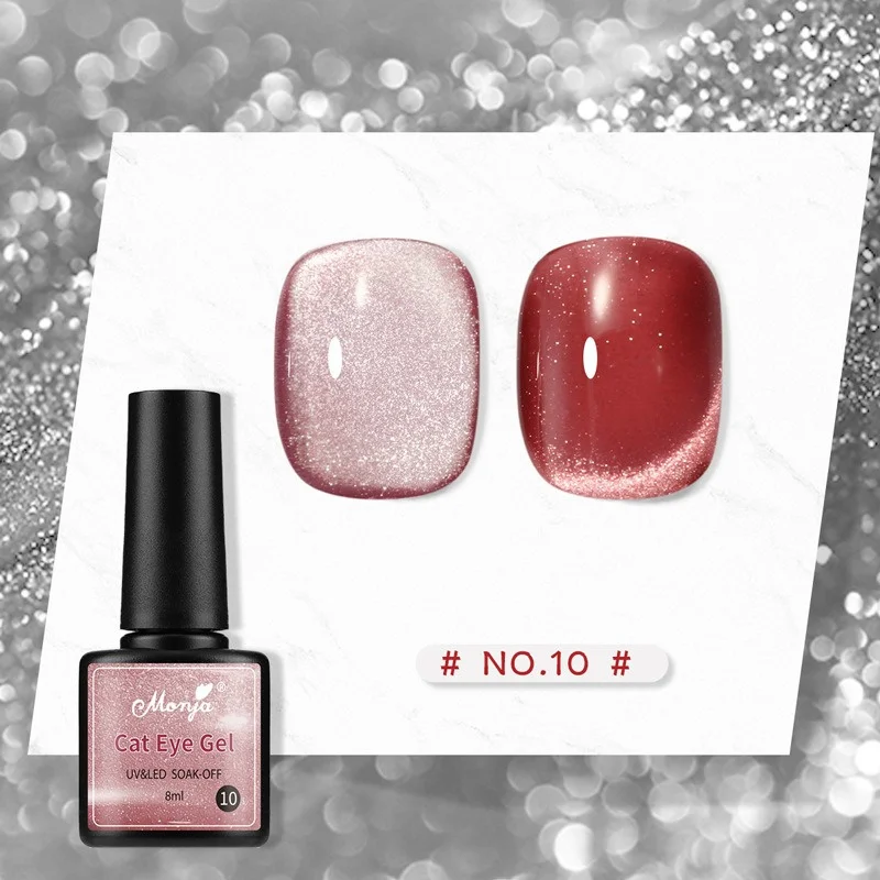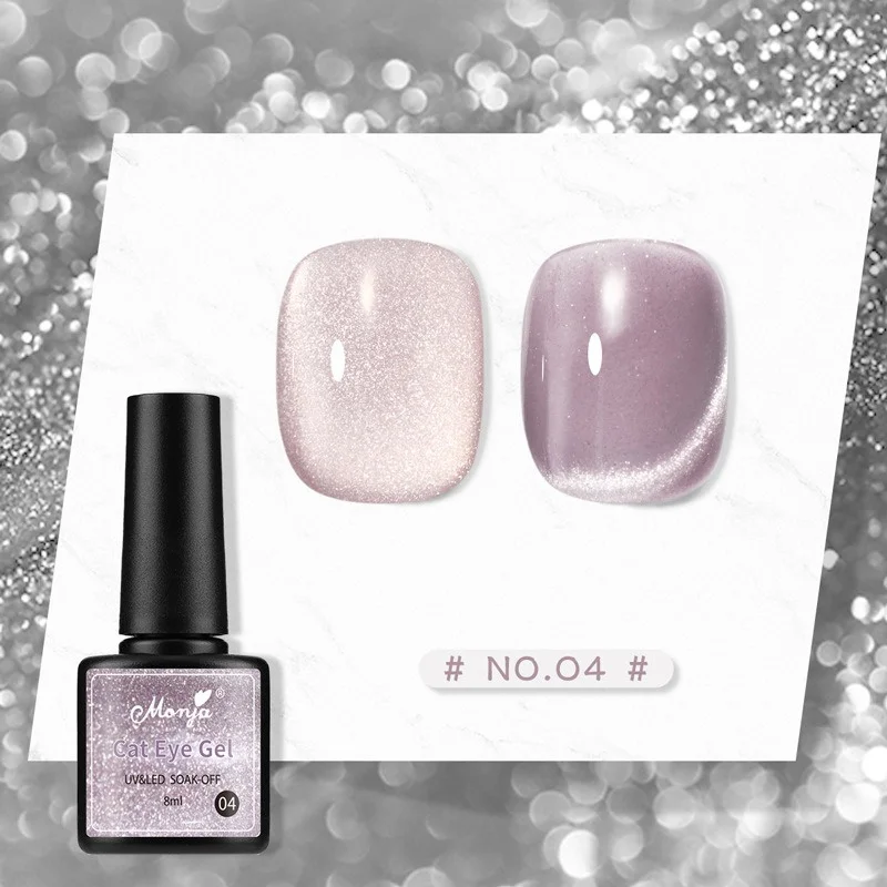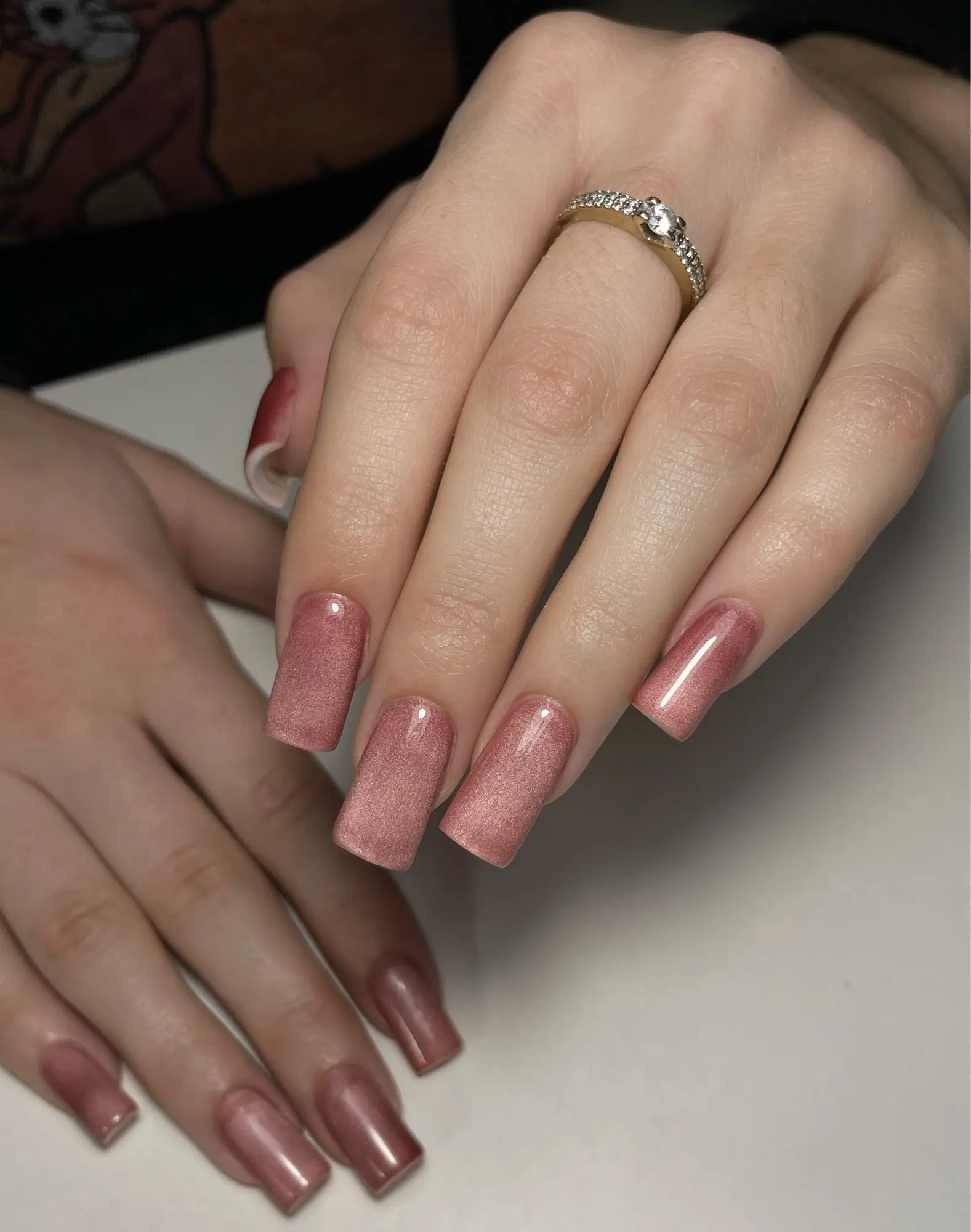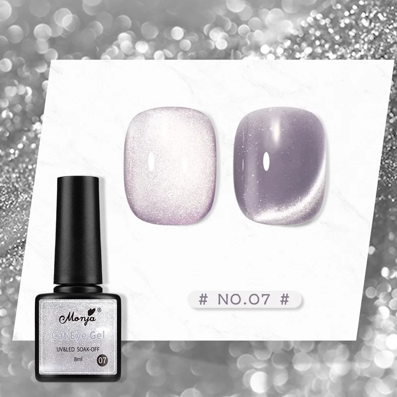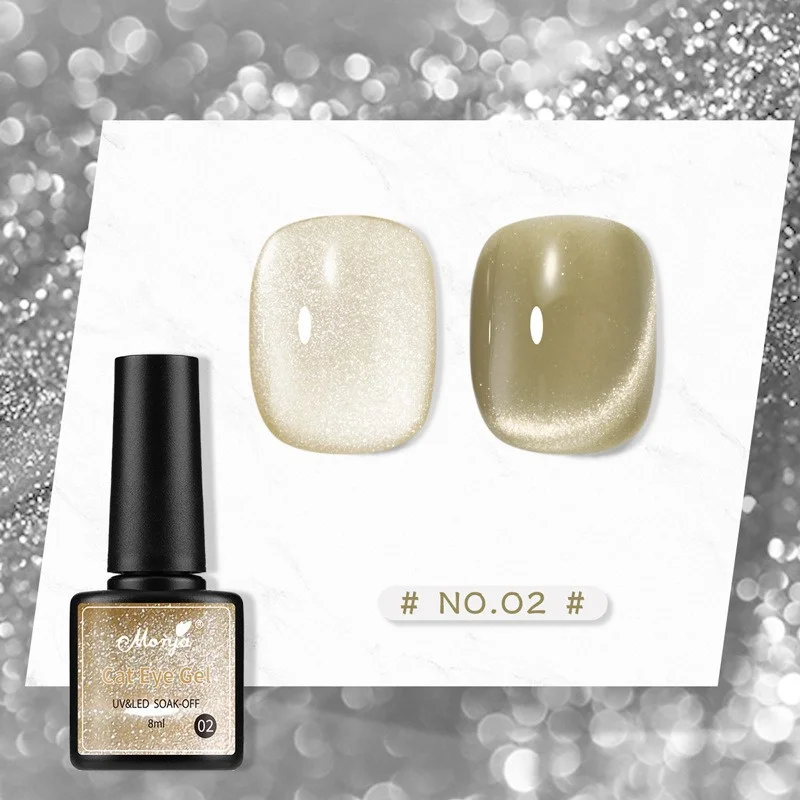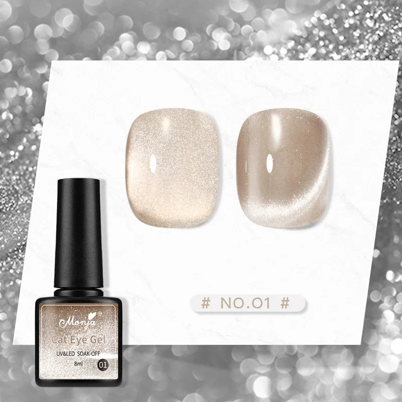 Very small metal parts, really a silk cat, so it is possible to make a Korean manicure, like a cat effect (the photo does not pass, unfortunately). One layer of half-transparent patch with a brown nude shade, really like it!