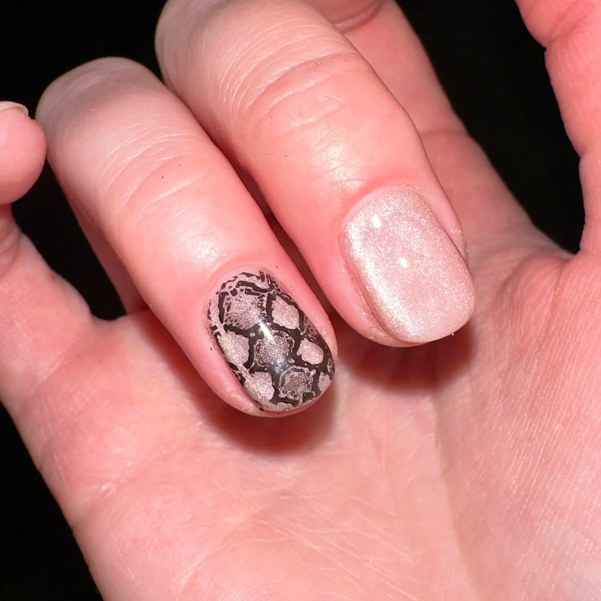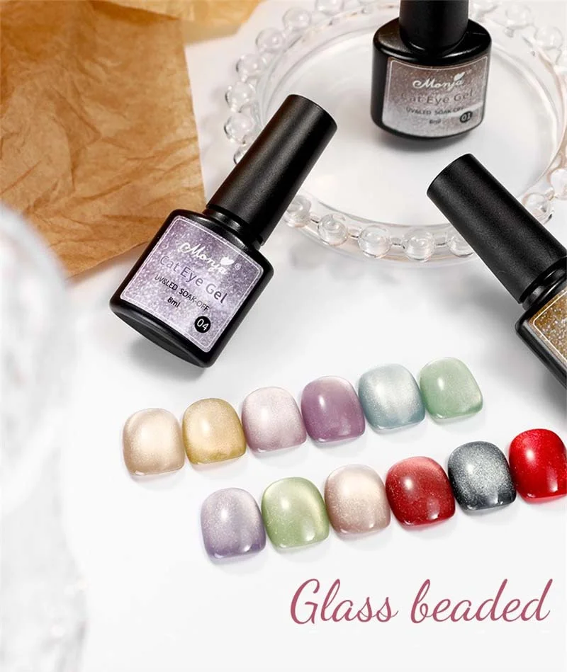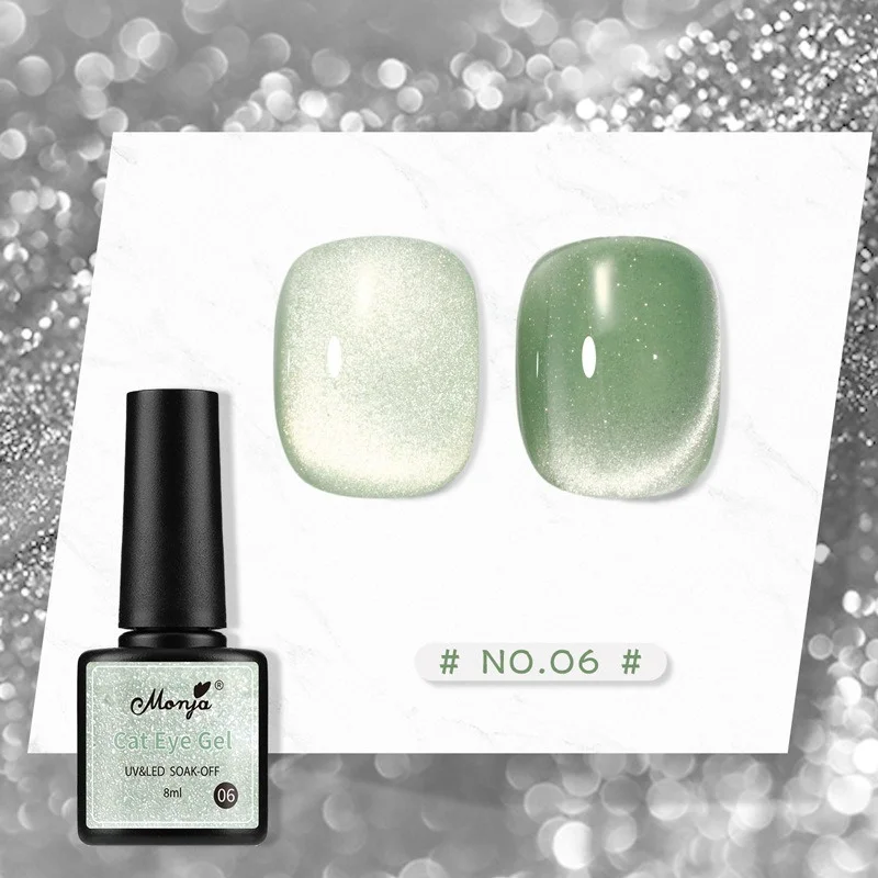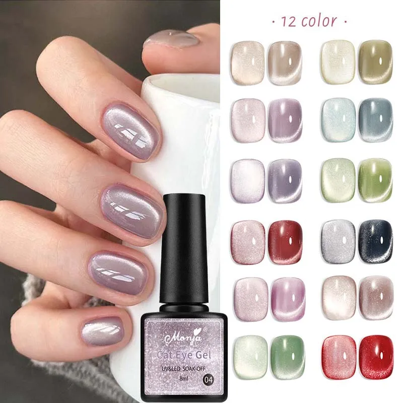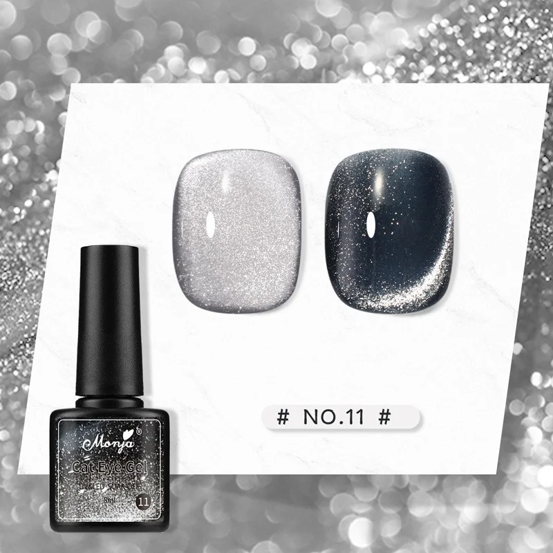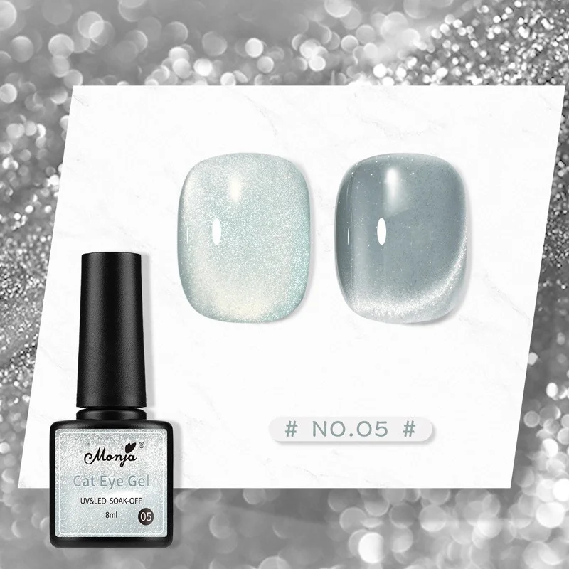 Very small metal parts, really a silk cat, so it is possible to make a Korean manicure, like a cat effect (the photo does not pass, unfortunately). One layer of half-transparent patch with a brown nude shade, really like it!