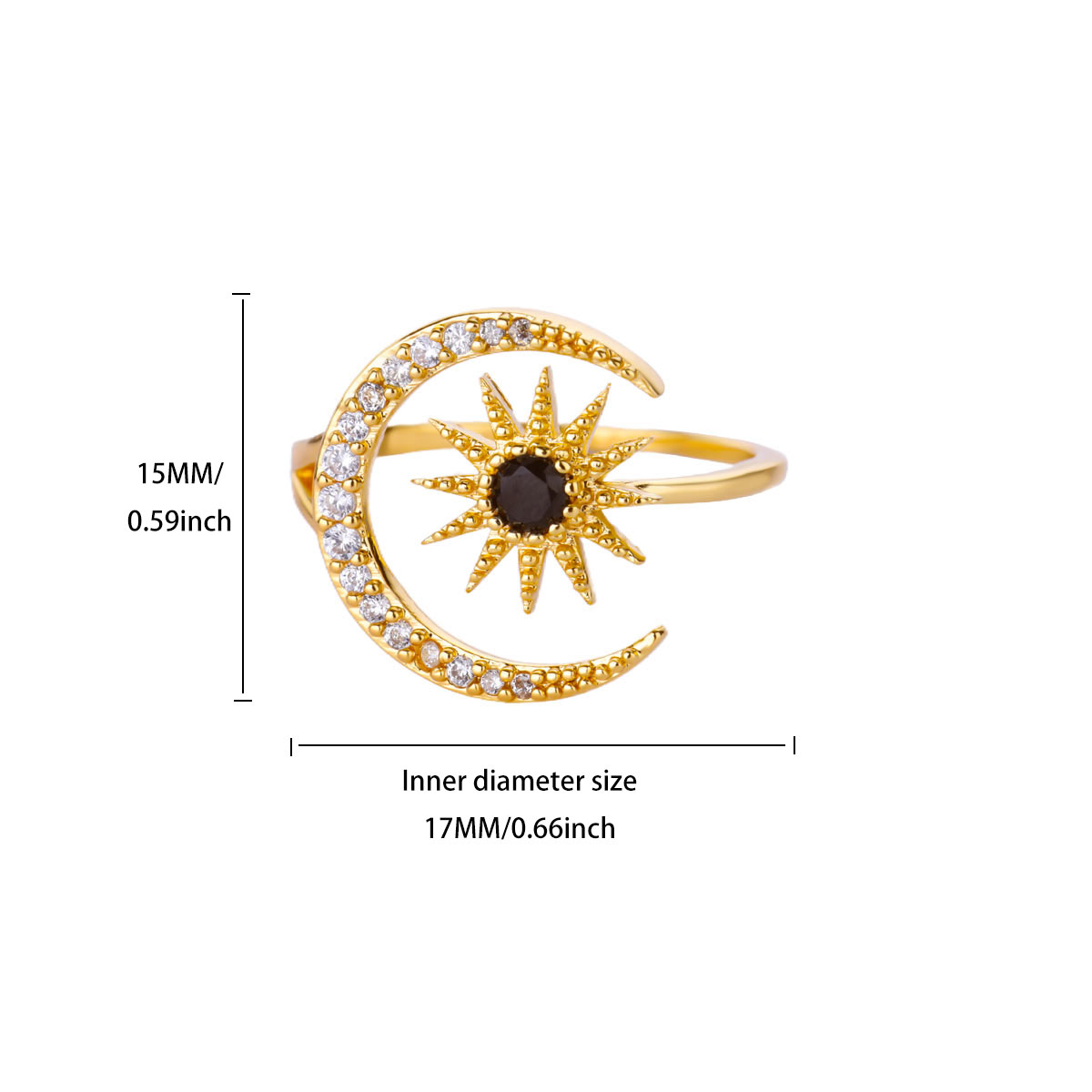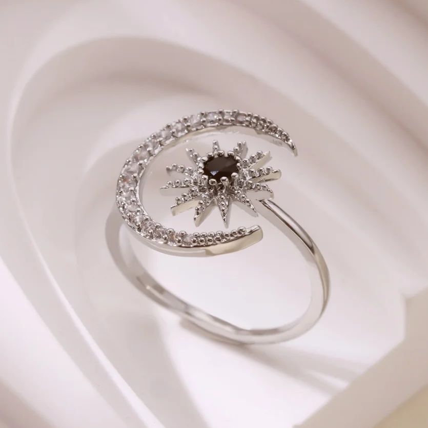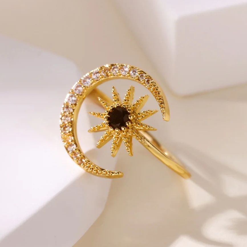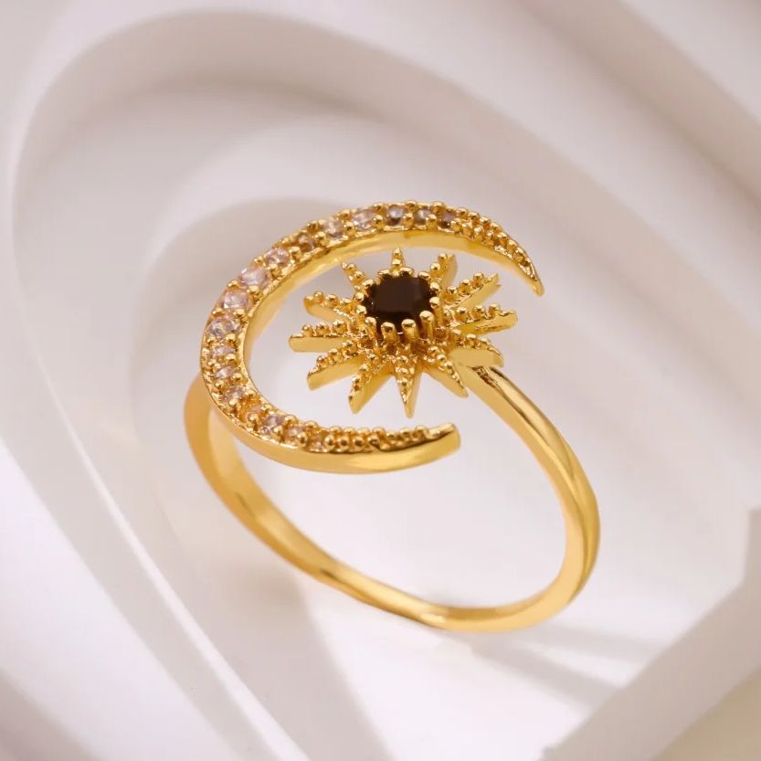Gold Color Stainless Steel Geometric Rings for Women Zircon Star & Moon Open Ring Fashion Aesthetic Jewelry Wedding Gift