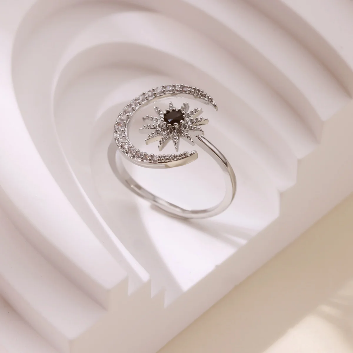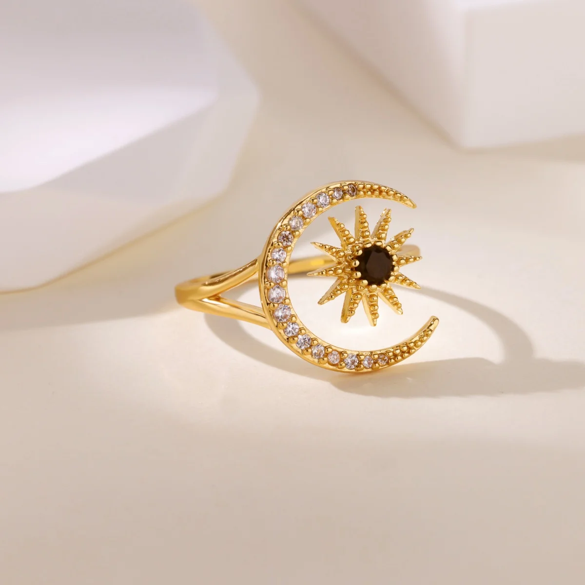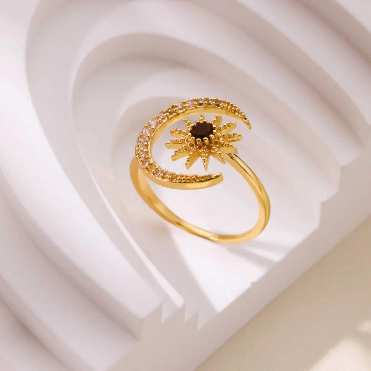 Gold Color Stainless Steel Geometric Rings for Women Zircon Star & Moon Open Ring Fashion Aesthetic Jewelry Wedding Gift