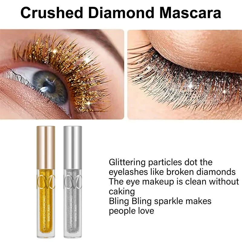 Gold Sliver Glitter Mascara Quick Dry Long Lasting Waterproof Curling Thick Shiny Eyelash Fashional Sexy Diamond Mascara Makeup