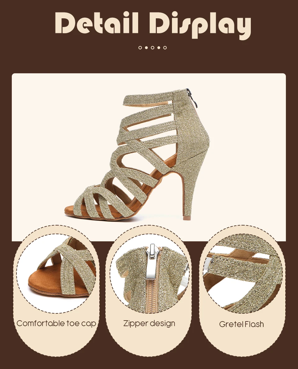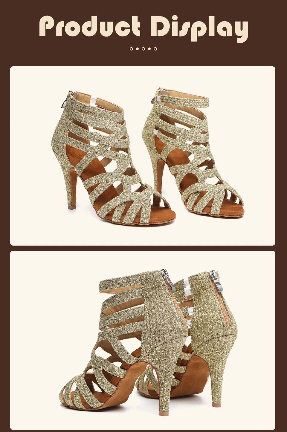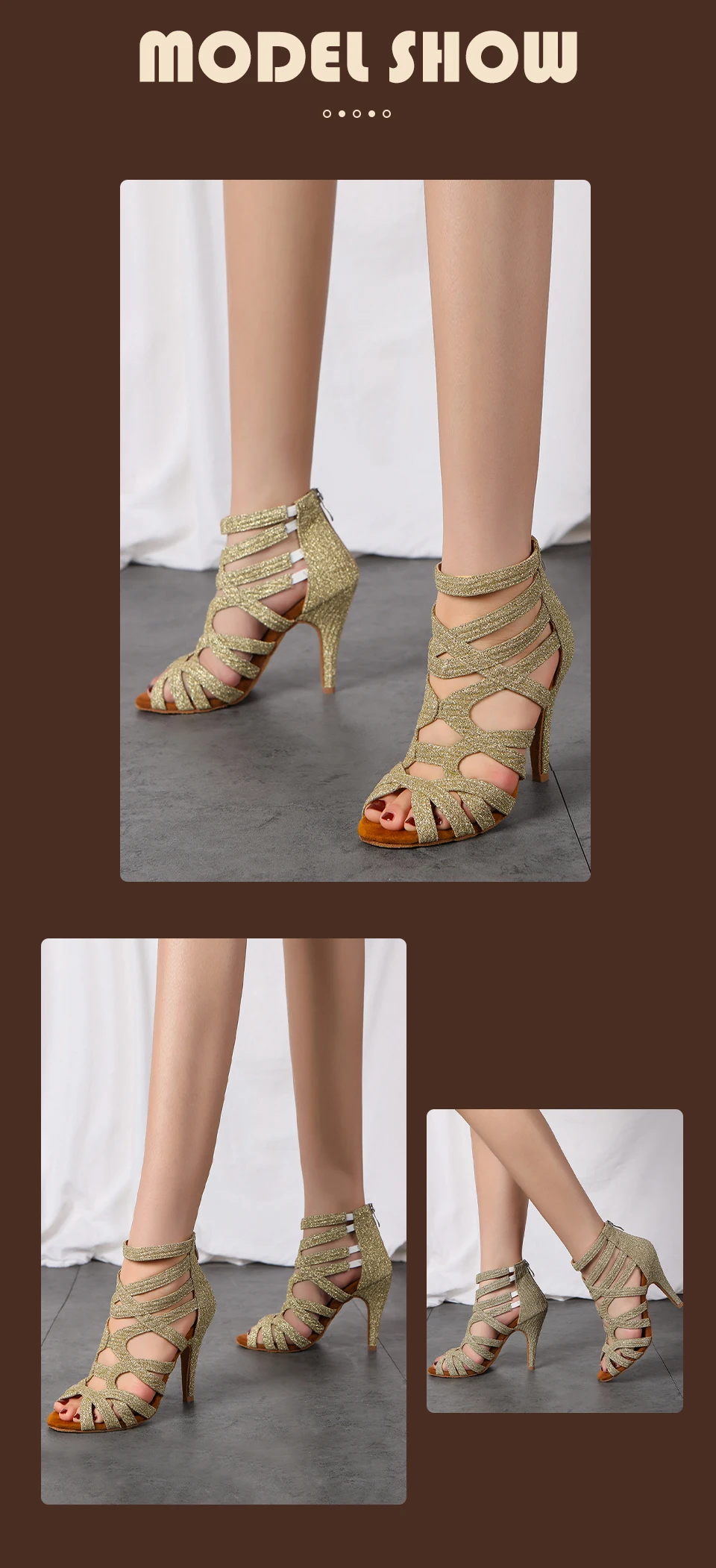 Golden Fashion High-top Personality Fish Mouth Dancing Shoes for Women Salsa Latin Cha Cha Rumba Party Ballroom Dance Boots