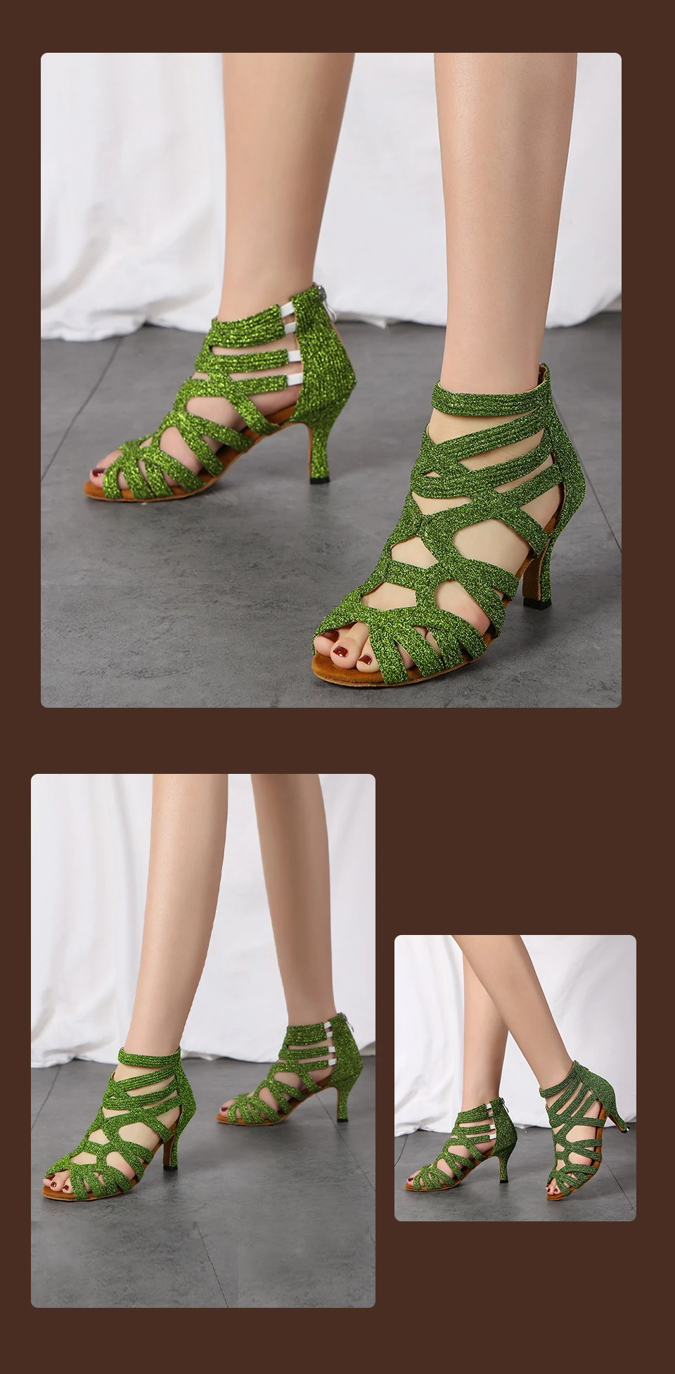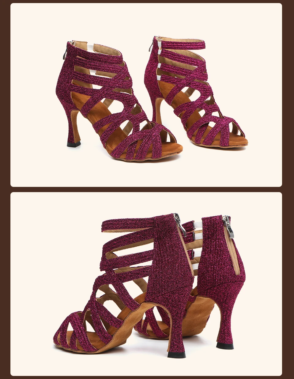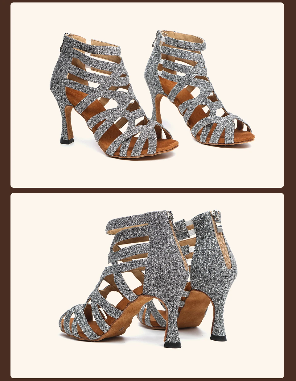 Golden Fashion High-top Personality Fish Mouth Dancing Shoes for Women Salsa Latin Cha Cha Rumba Party Ballroom Dance Boots