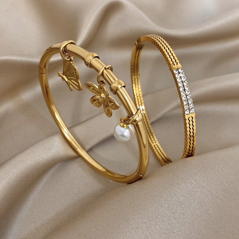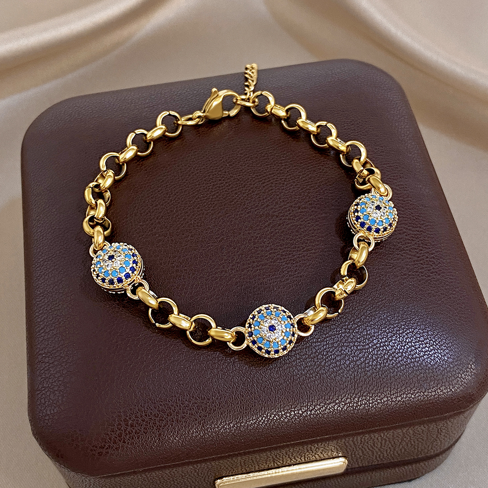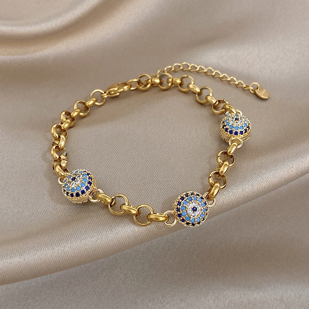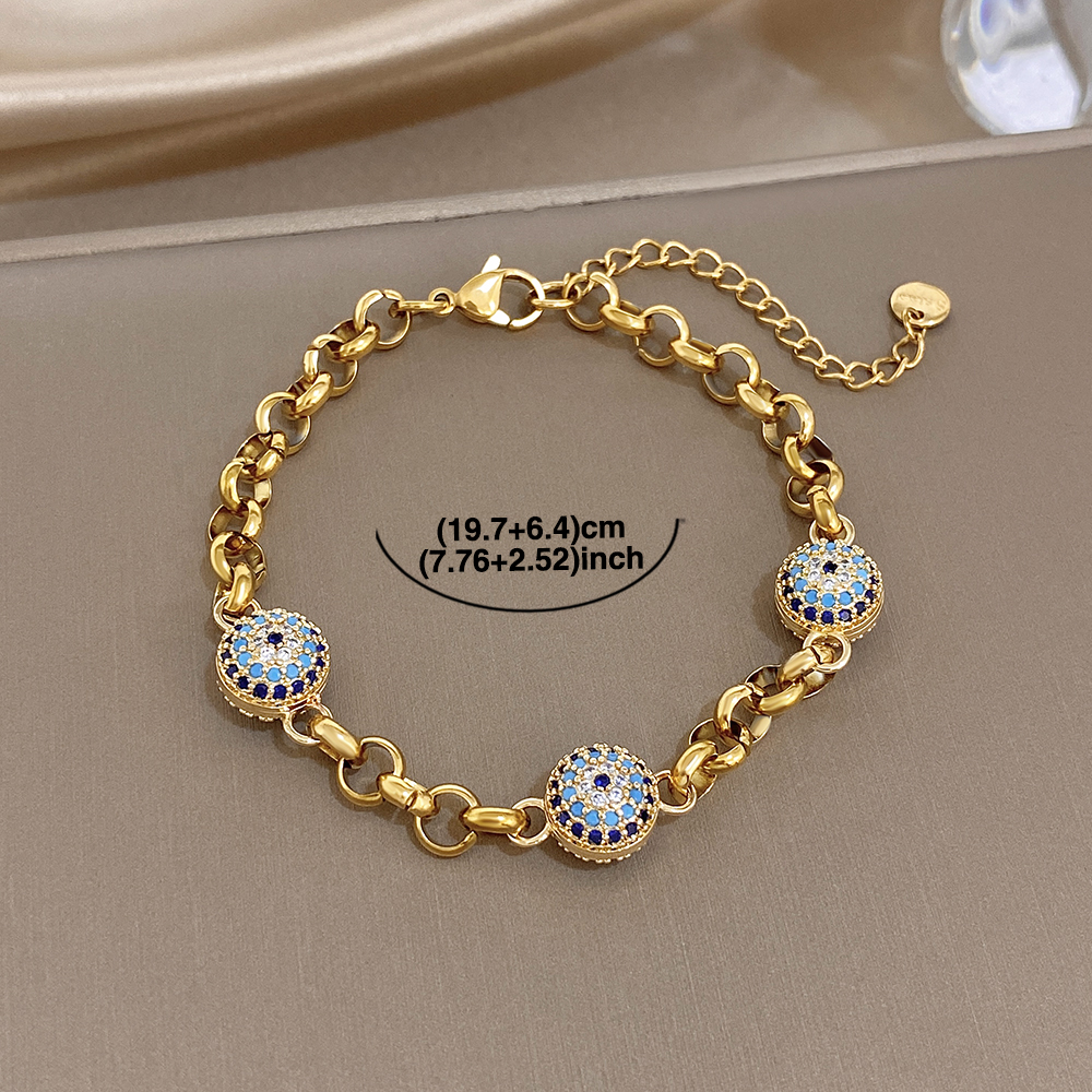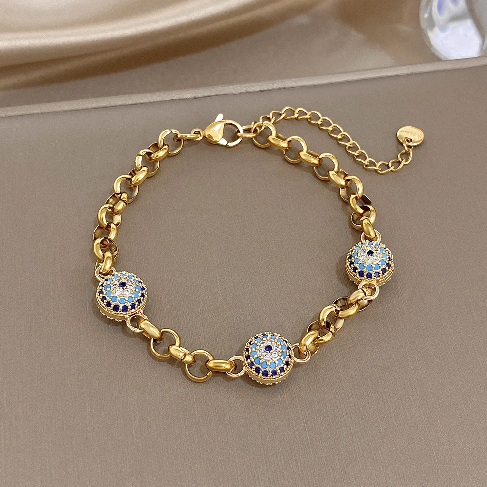Greatera Blue-eyed Colored Rhinestone Inlaid Ball Bracelet For Women New Style 2026 Trendy Metal Stainless Steel Design Bangles