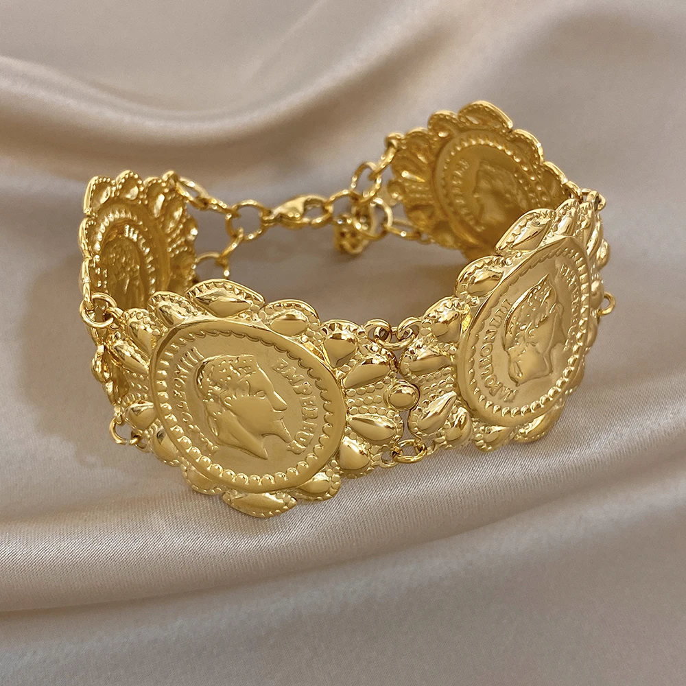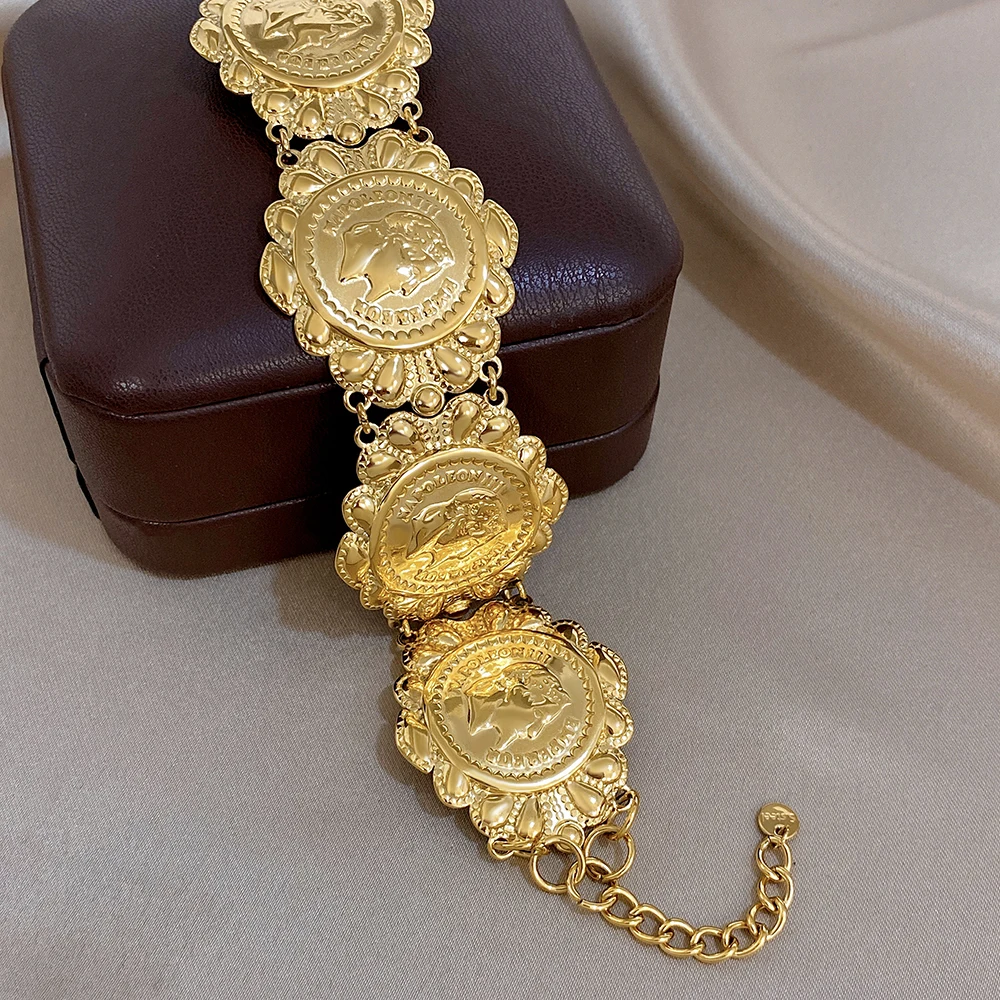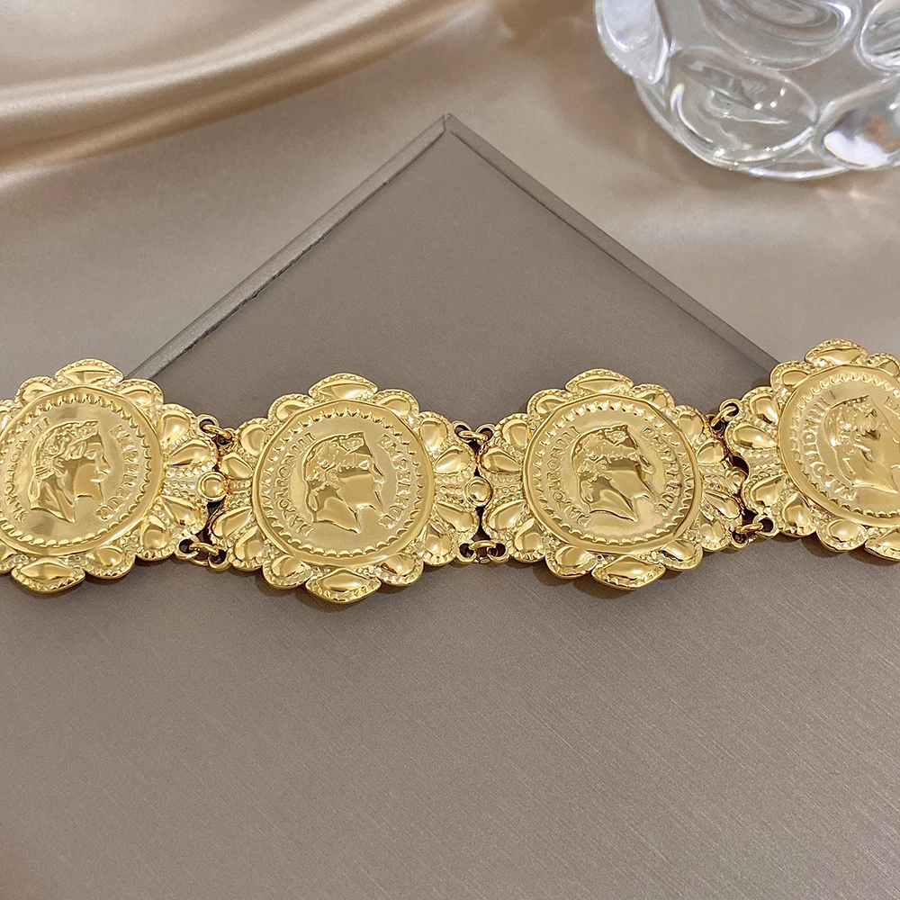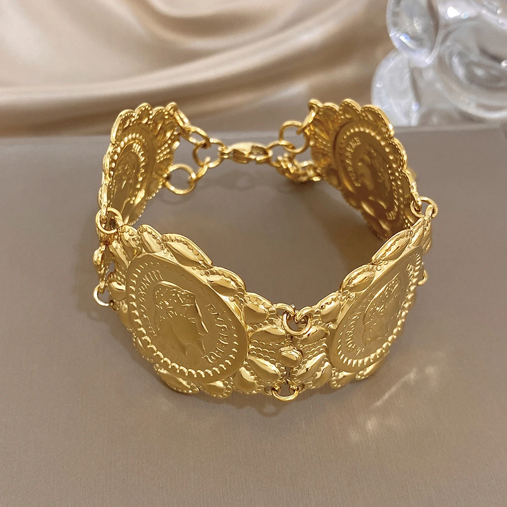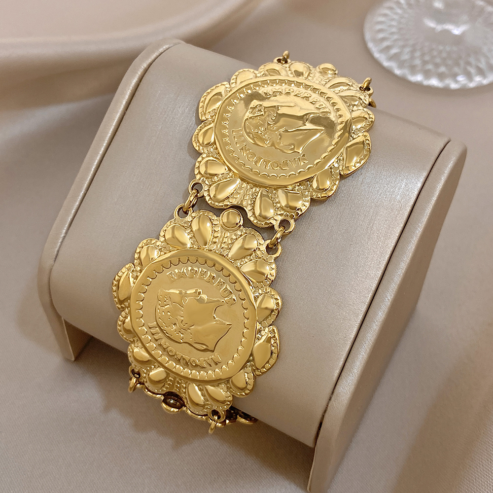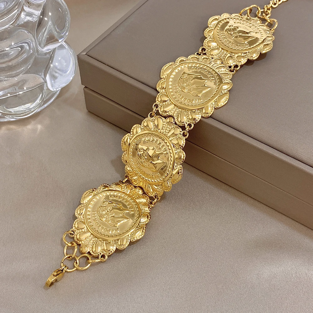 Greatera Classic Carved Human Head Stainless Steel Bangle Gold Color High Quality Popular Versatile Men Women’s Bracelet Gifts