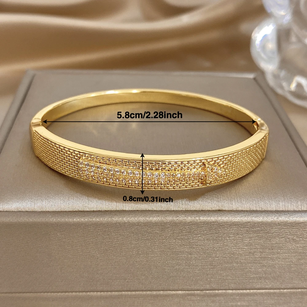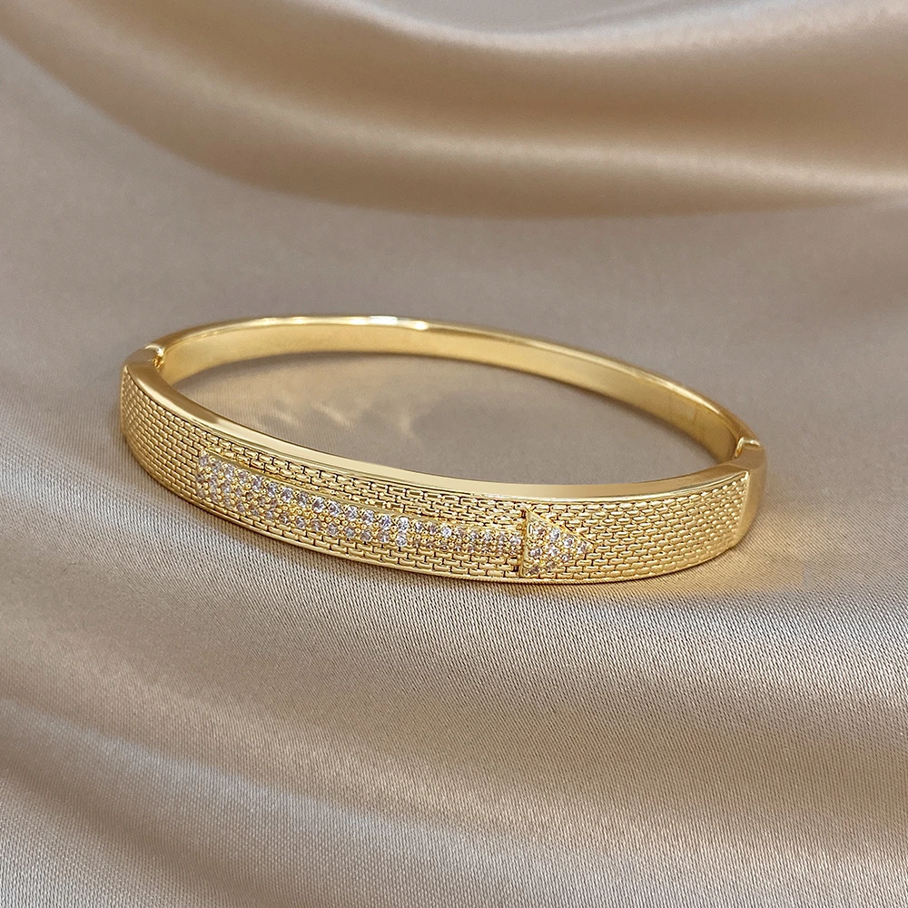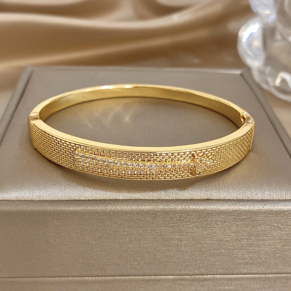 Greatera Copper Bracelet Arrow-shaped Mesh Surface Design Classic Cubic Zircon Filled Temperament Women’s Cuff Bangle Party New