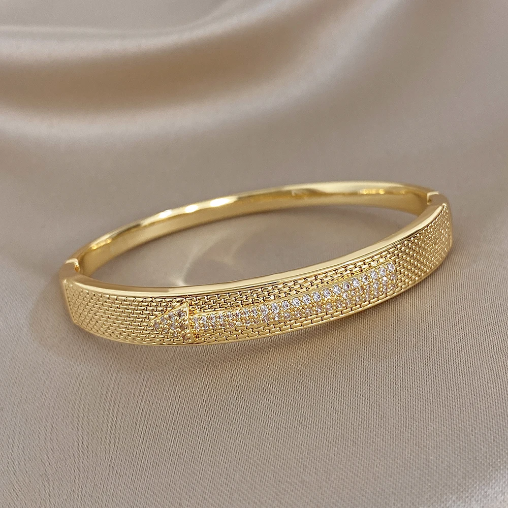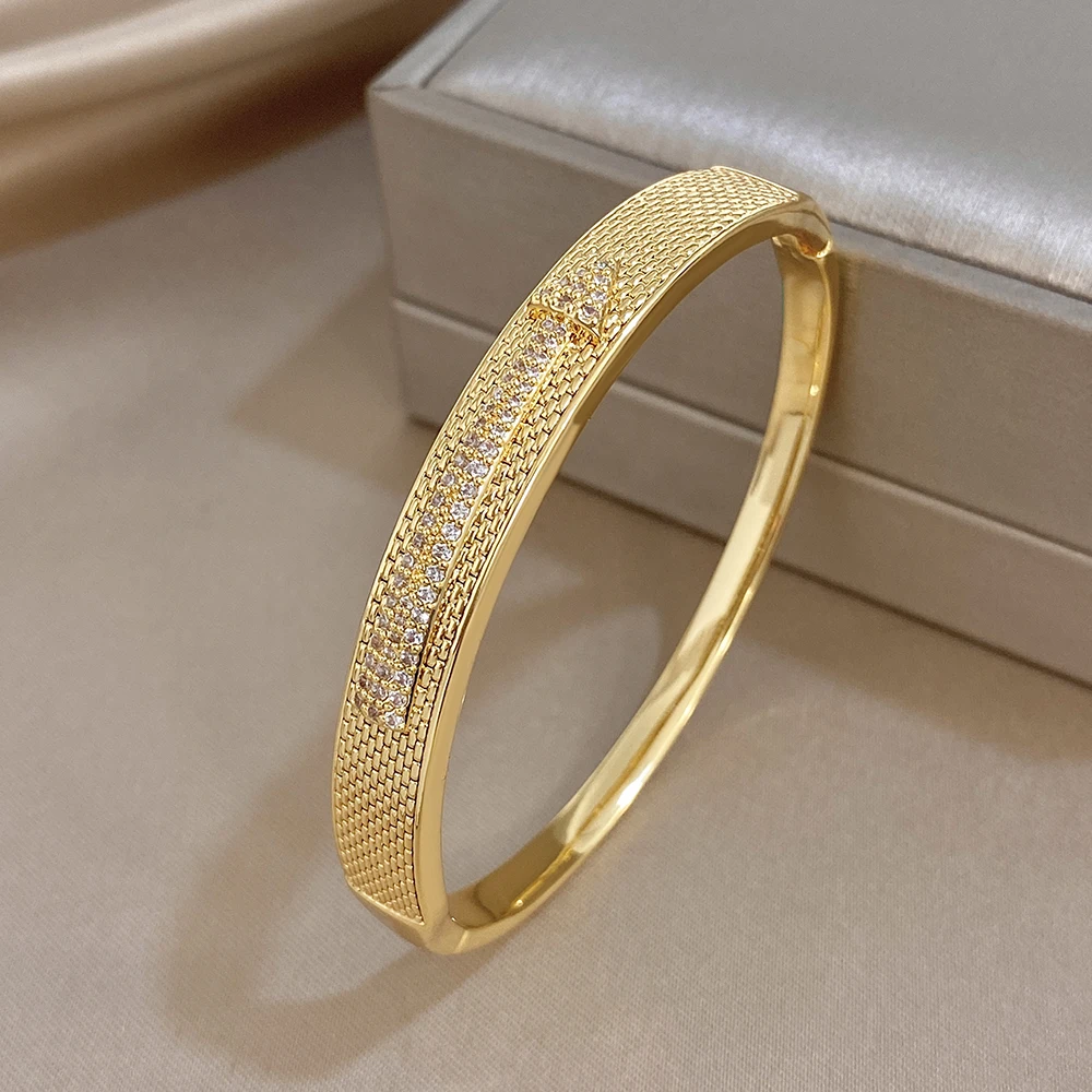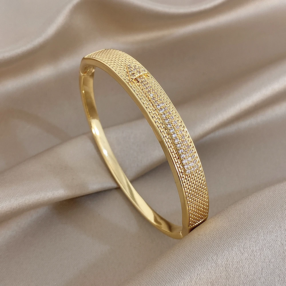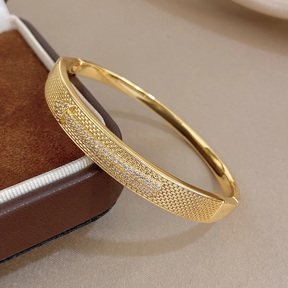 Greatera Copper Bracelet Arrow-shaped Mesh Surface Design Classic Cubic Zircon Filled Temperament Women’s Cuff Bangle Party New
