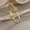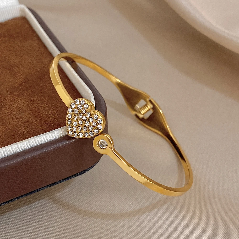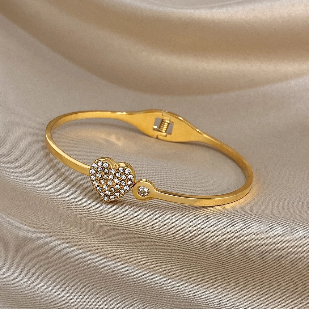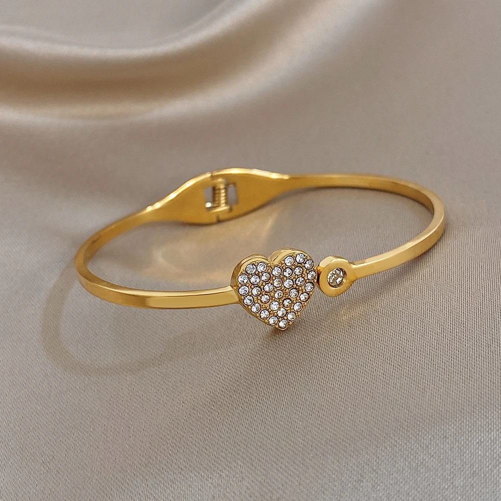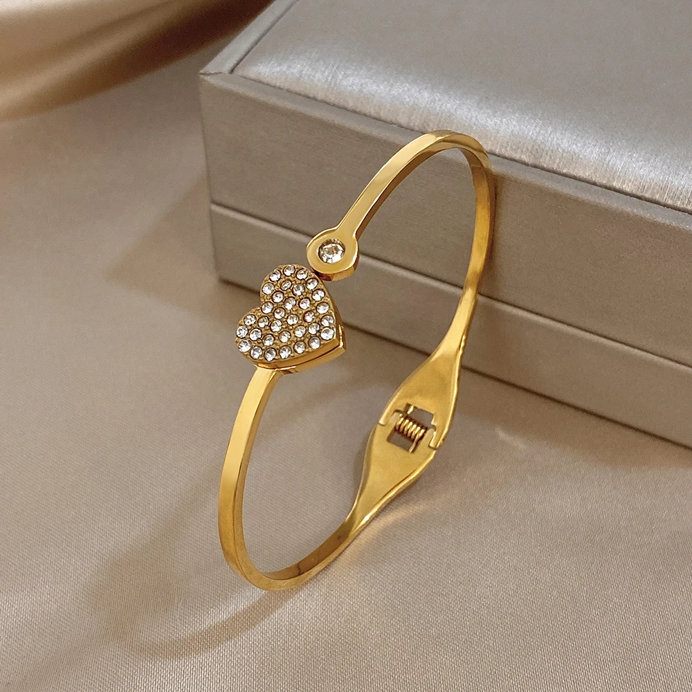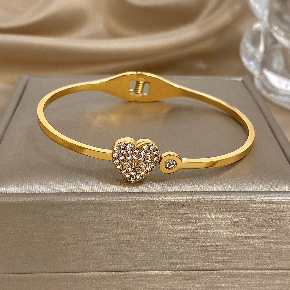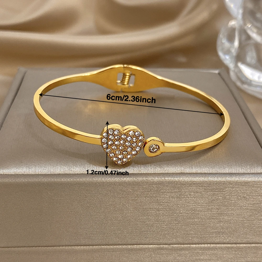 Greatera Delicate Bracelet Full Rhinestone Inlaid Hearts Shape Fine Stainless Steel Bangle Charm Plated Gold Wedding Gifts Party