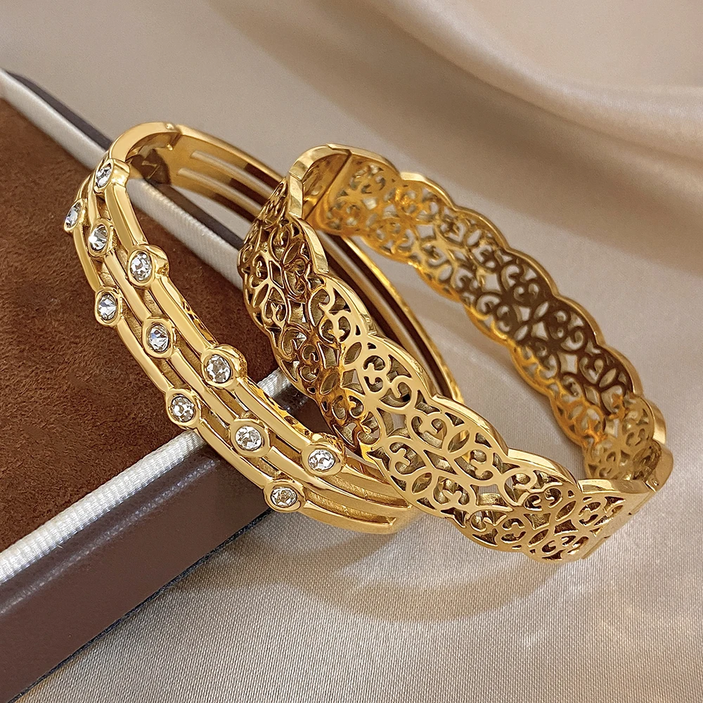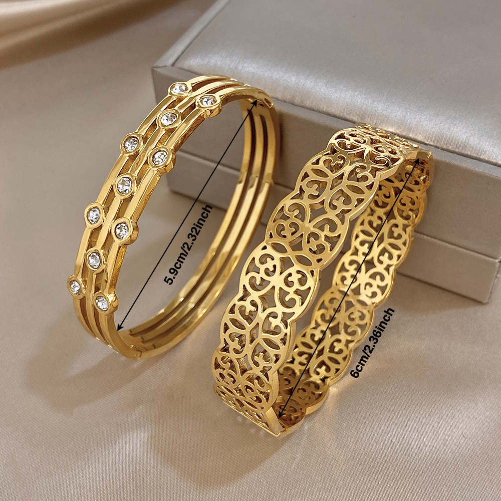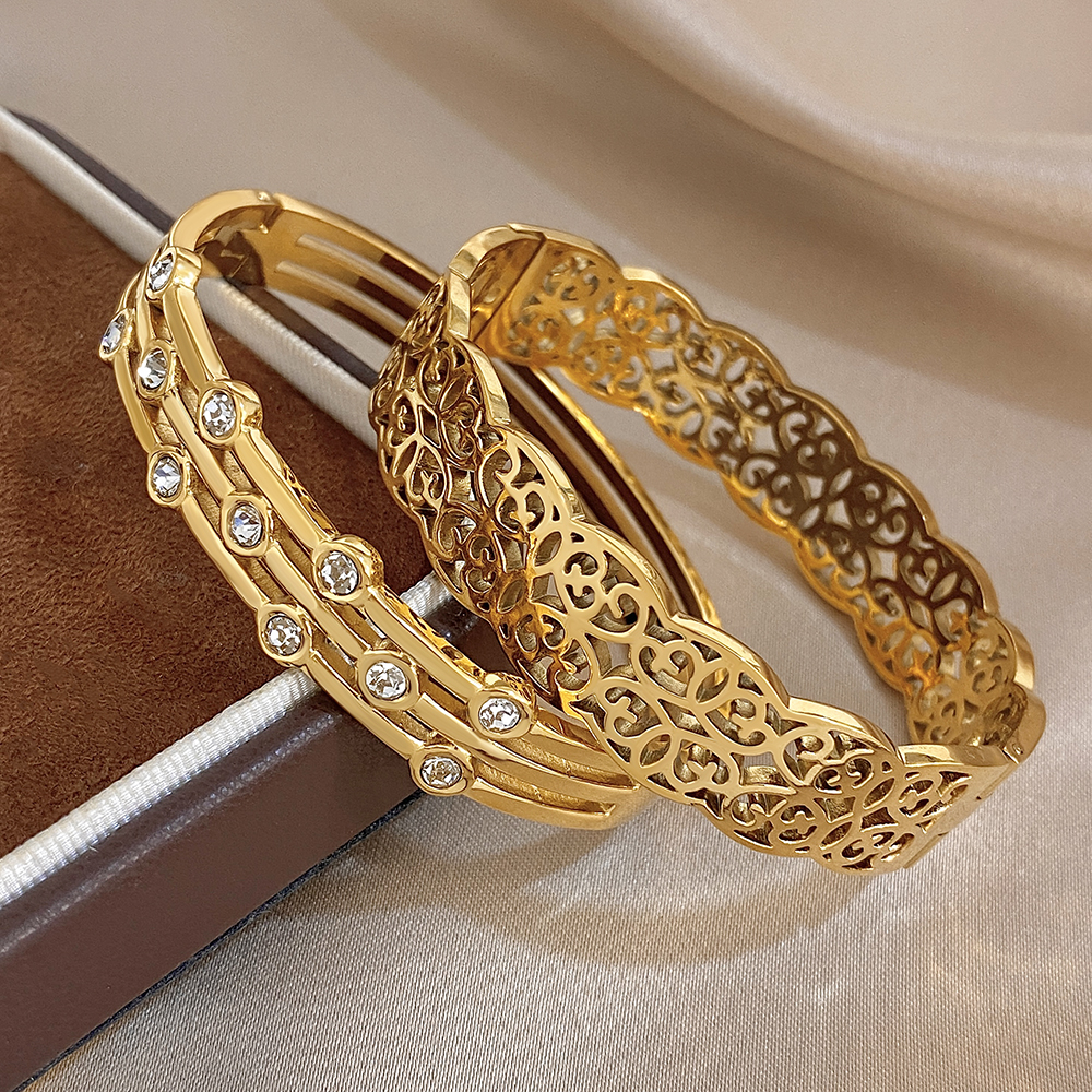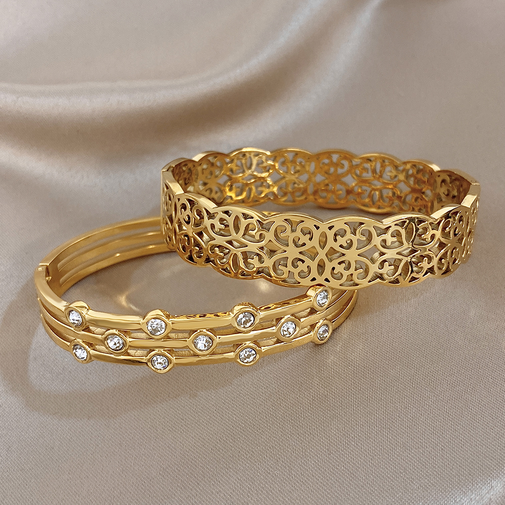 Greatera Double-track Chain Point Rhinestone Bracelet Retro Cursive Texture Hollowed-out Cuff Bangles Women Men New Style 2026